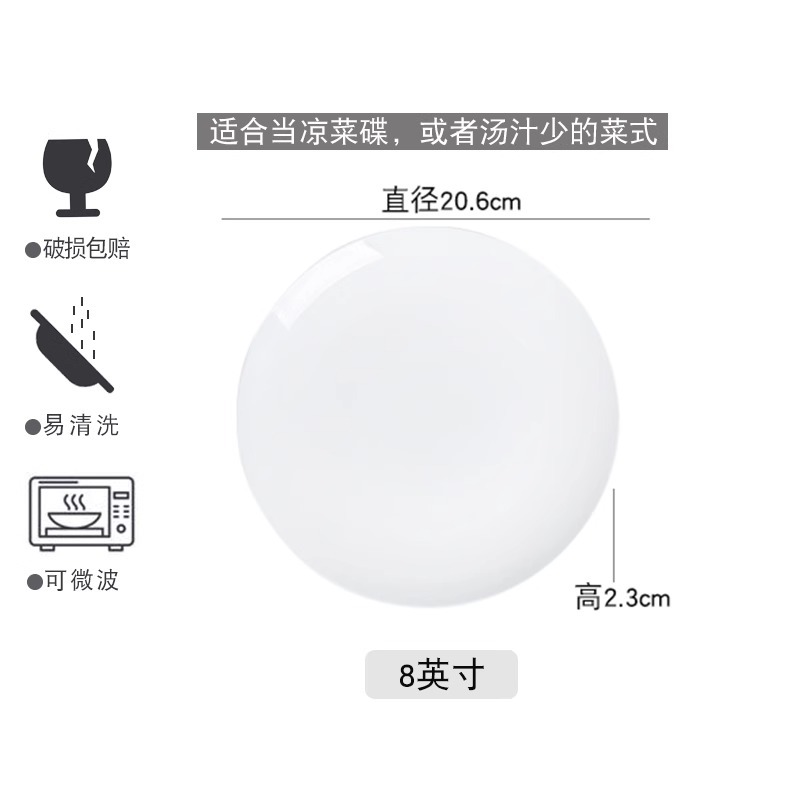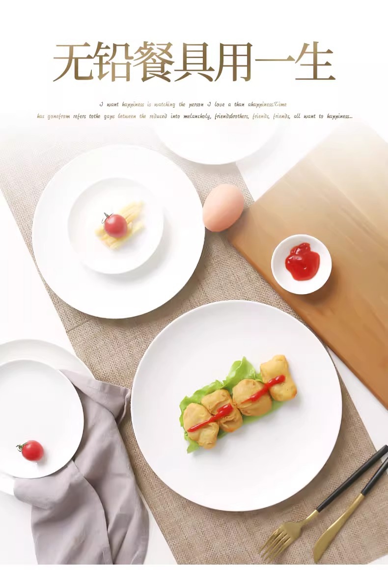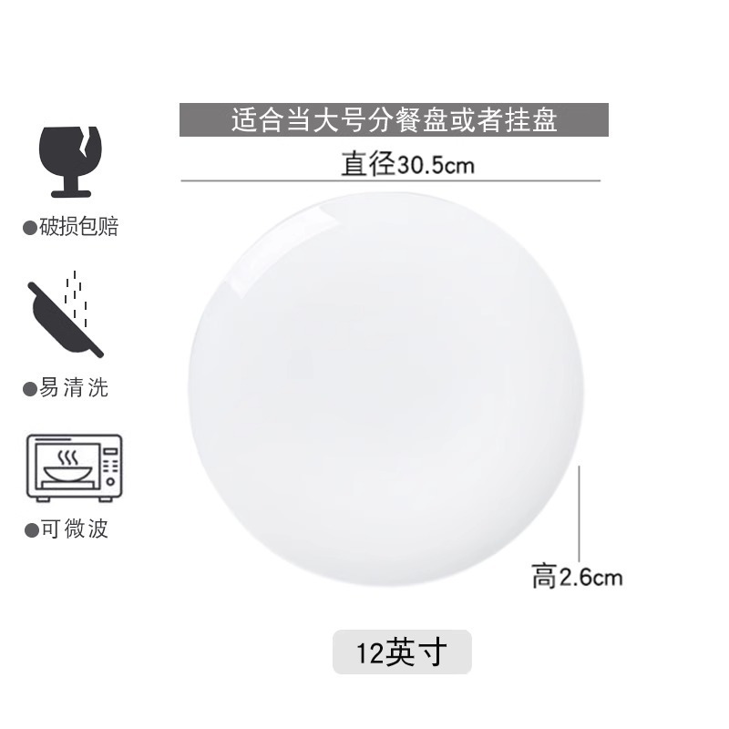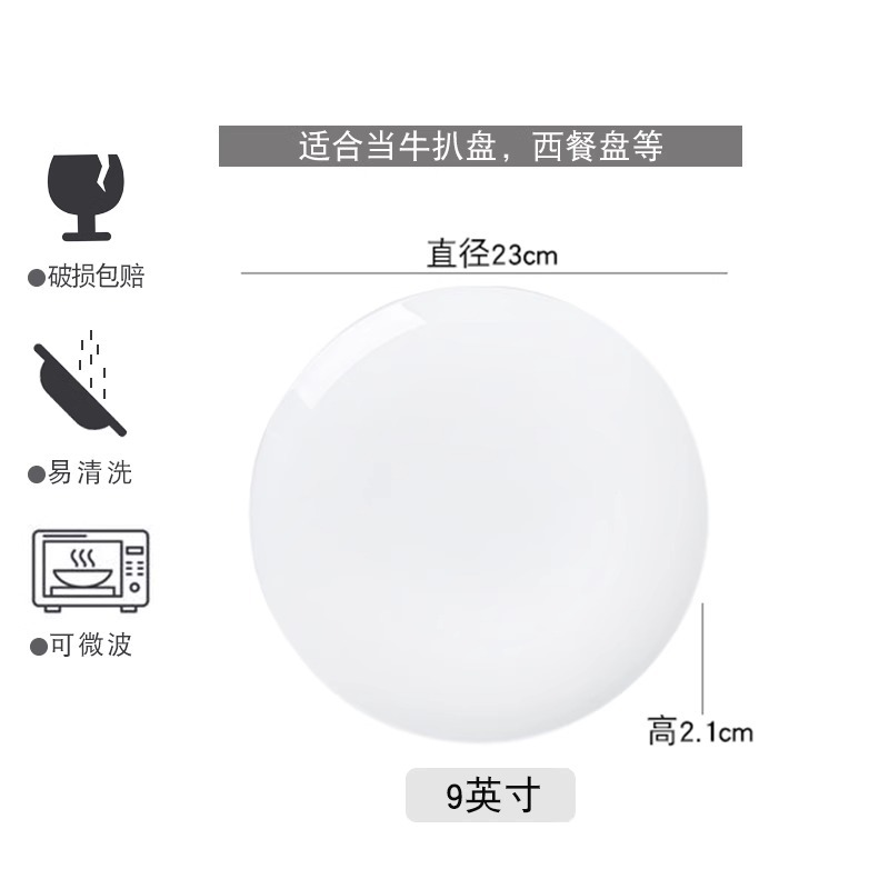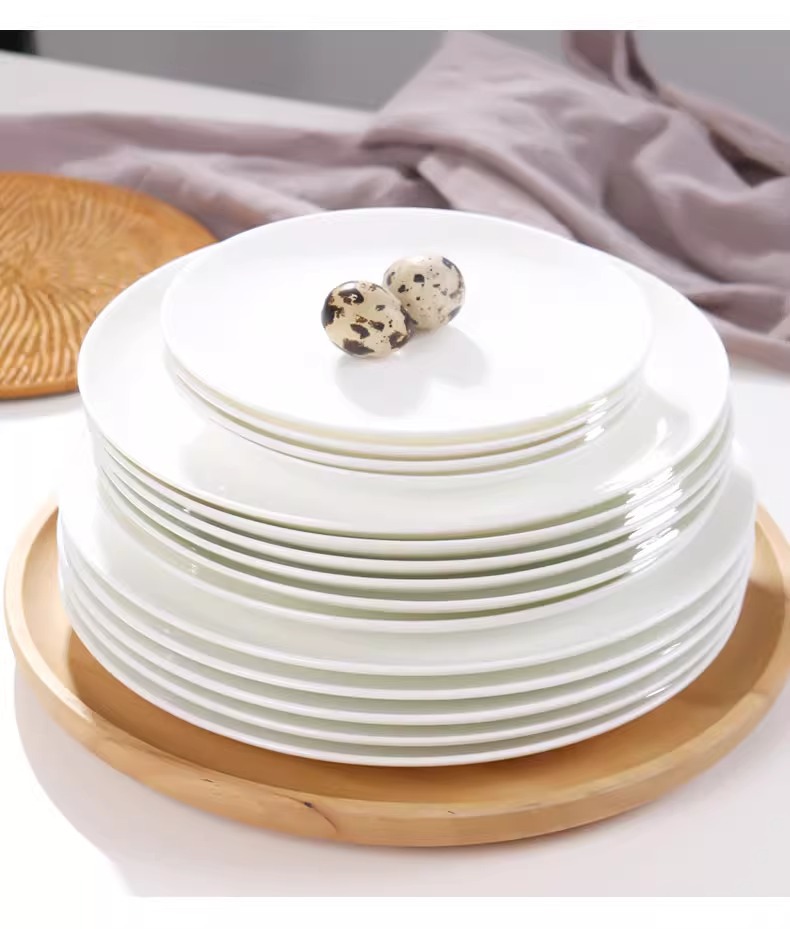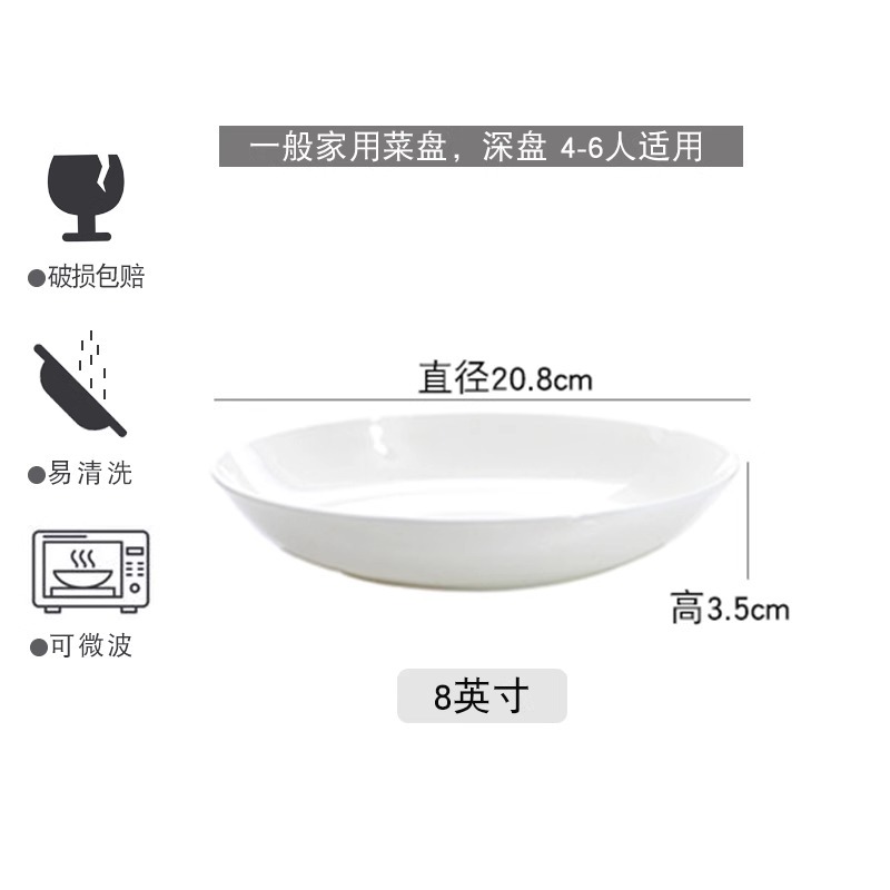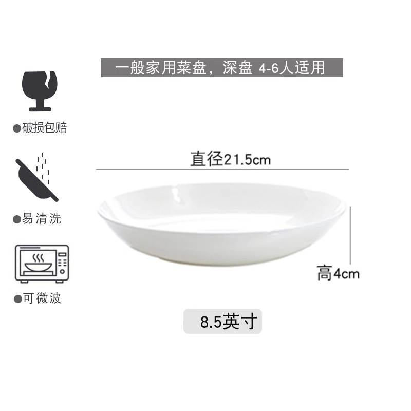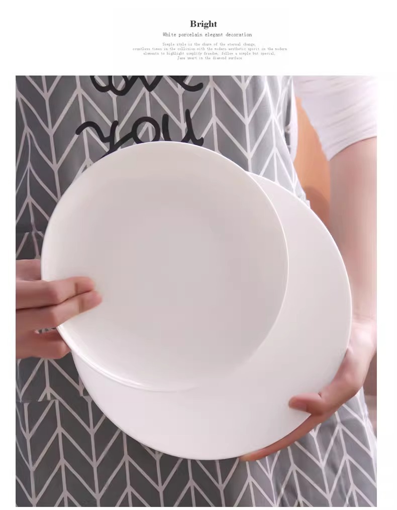 Jingdezhen 순수한 흰색 뼈 접시 중국 접시 가정용 둥근 달 디스크 창조적 인 웨스턴 플레이트 뼈 플레이트 호텔 세라믹 플레이트