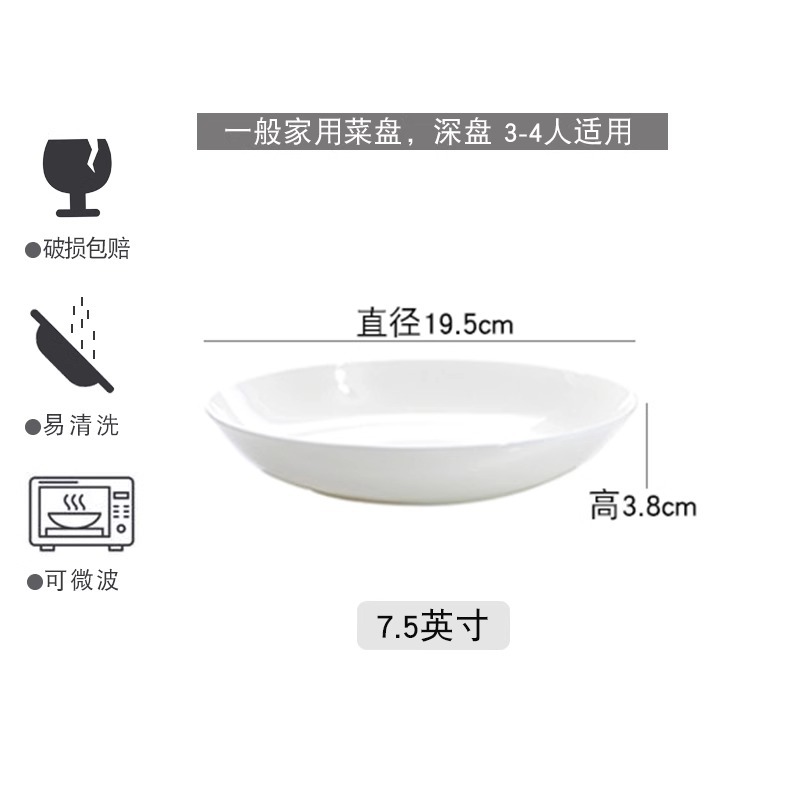 Jingdezhen 순수한 흰색 뼈 접시 중국 접시 가정용 둥근 달 디스크 창조적 인 웨스턴 플레이트 뼈 플레이트 호텔 세라믹 플레이트스토어 가기