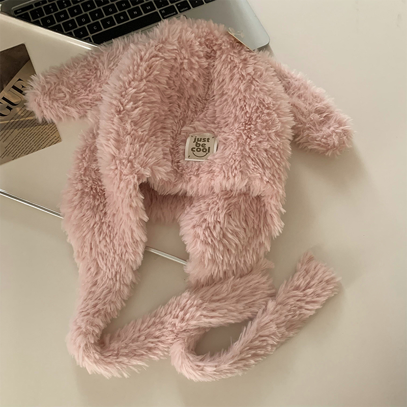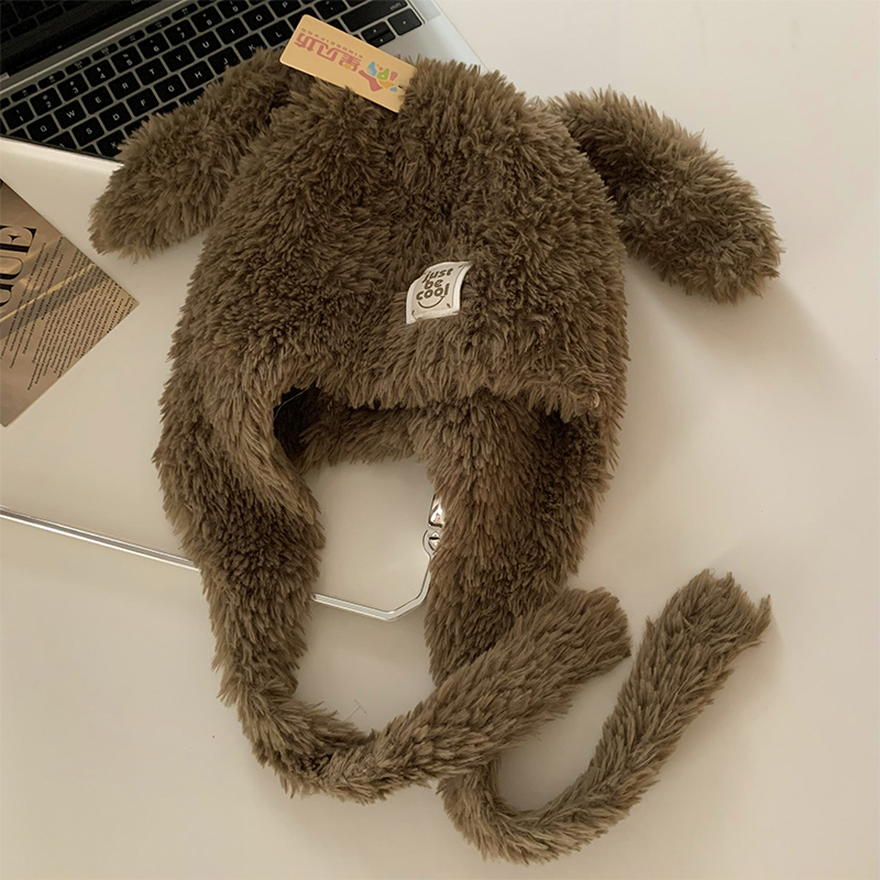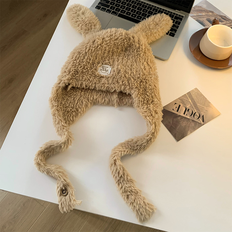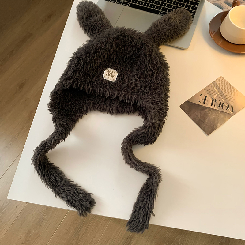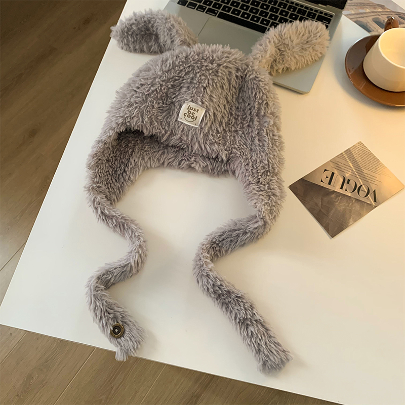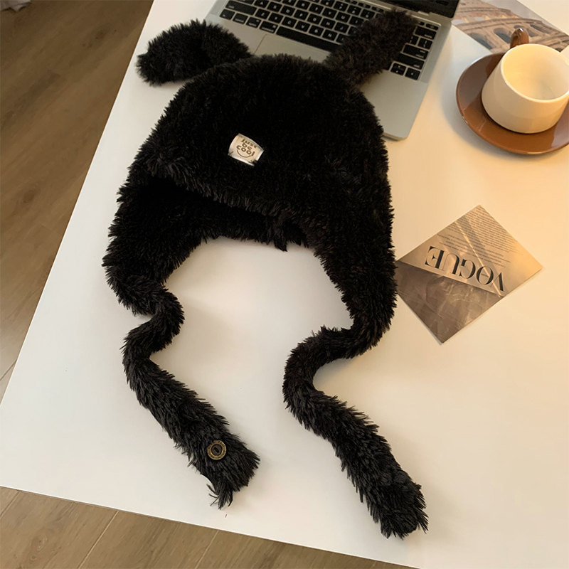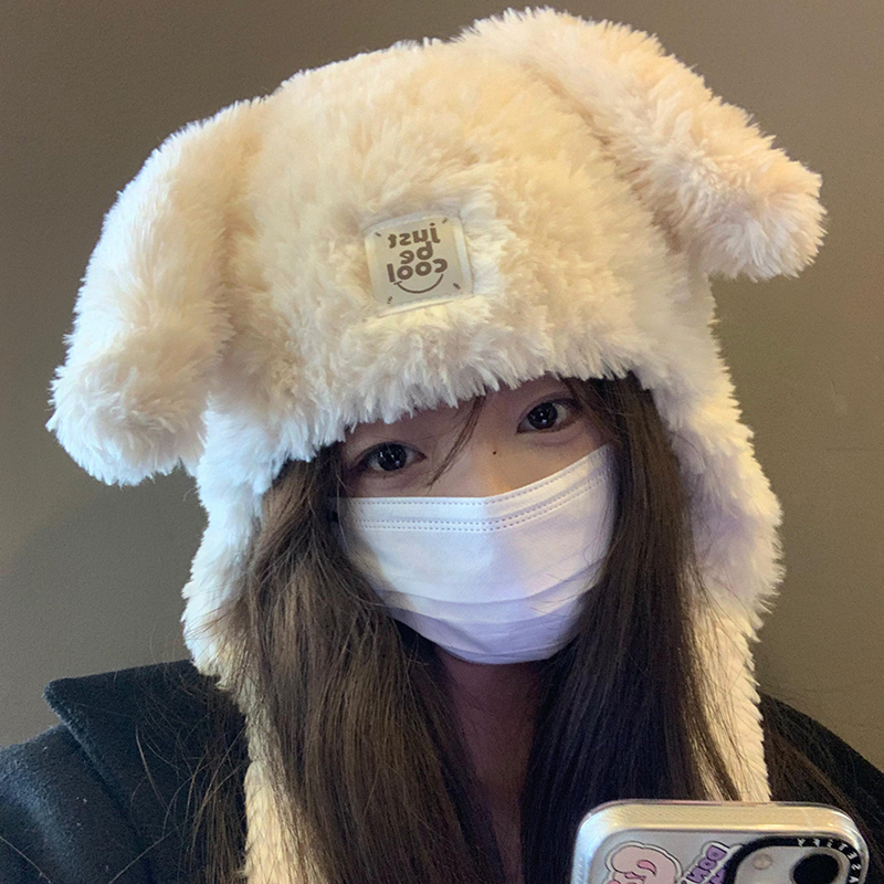 강아지 모자 여성 가을과 겨울 한국 스타일 귀여운 얼굴 모양의 작은 두꺼운 따뜻한 봉제 모자 큰 머리 둘레 귀 보호 레이 펑 모자