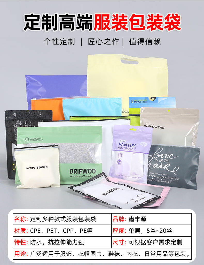 맞춤형 의류 반투명 지퍼백, 속옷 및 팬티용 투명 반투명 지퍼백, 양말 포장 지퍼백
