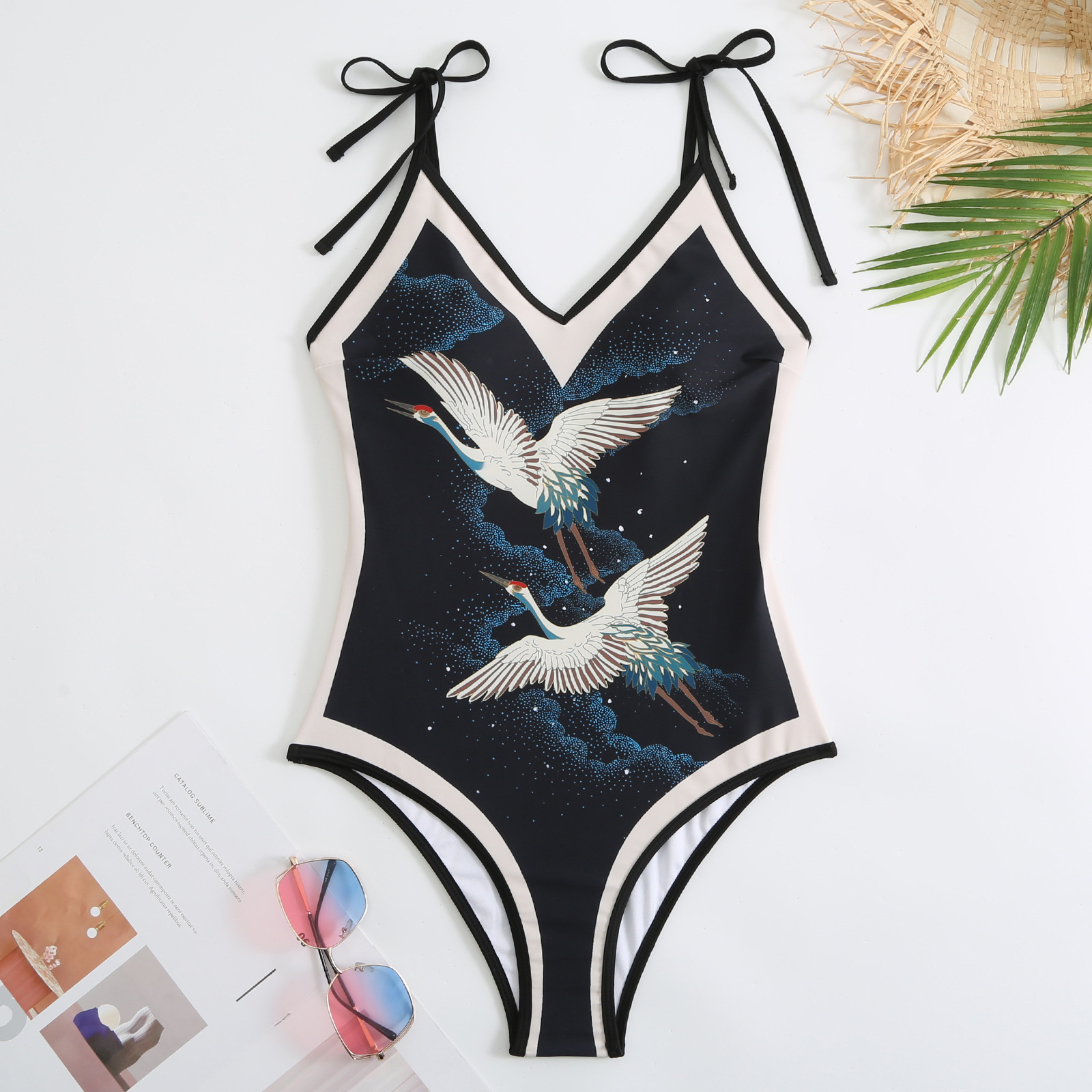2024 유럽과 미국의 새로운 원피스 수영복 여성의 타이트한 슬리밍 레트로 대외 무역 레이스 업 수영복 세트 쉬폰 원피스스토어 가기