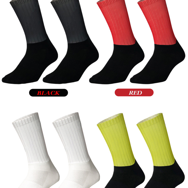 새로운 AERO 사이클링 양말, 프로 팀 자전거 스포츠 러닝용 고탄성 실리콘 미끄럼 방지 남녀 공용 중간 길이 양말