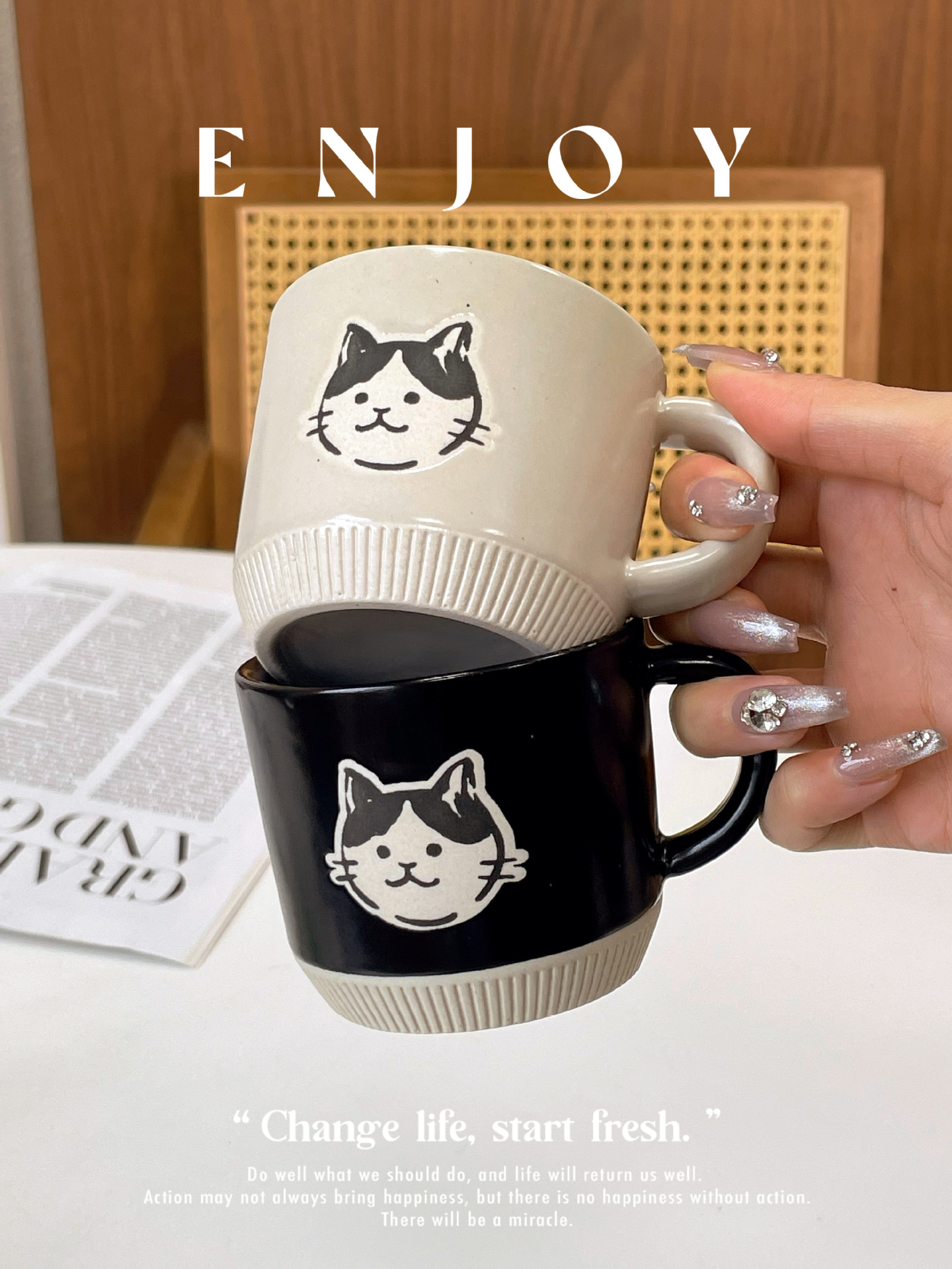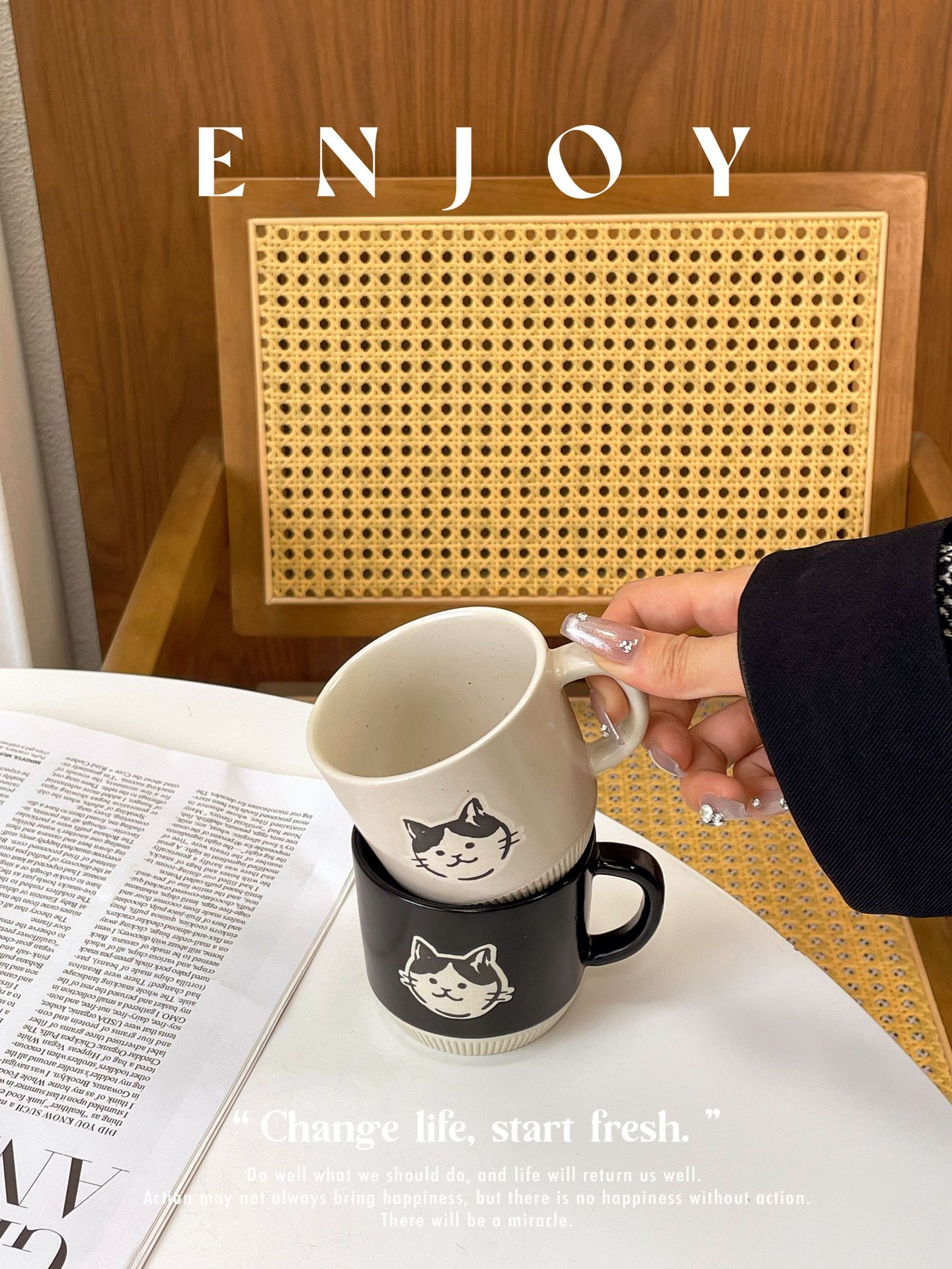 일본 귀여운 고양이 커피 컵 세라믹 새끼 고양이 머그잔 고양이 고양이 모양 디자인 감각 작은 높은 모양의 물 컵