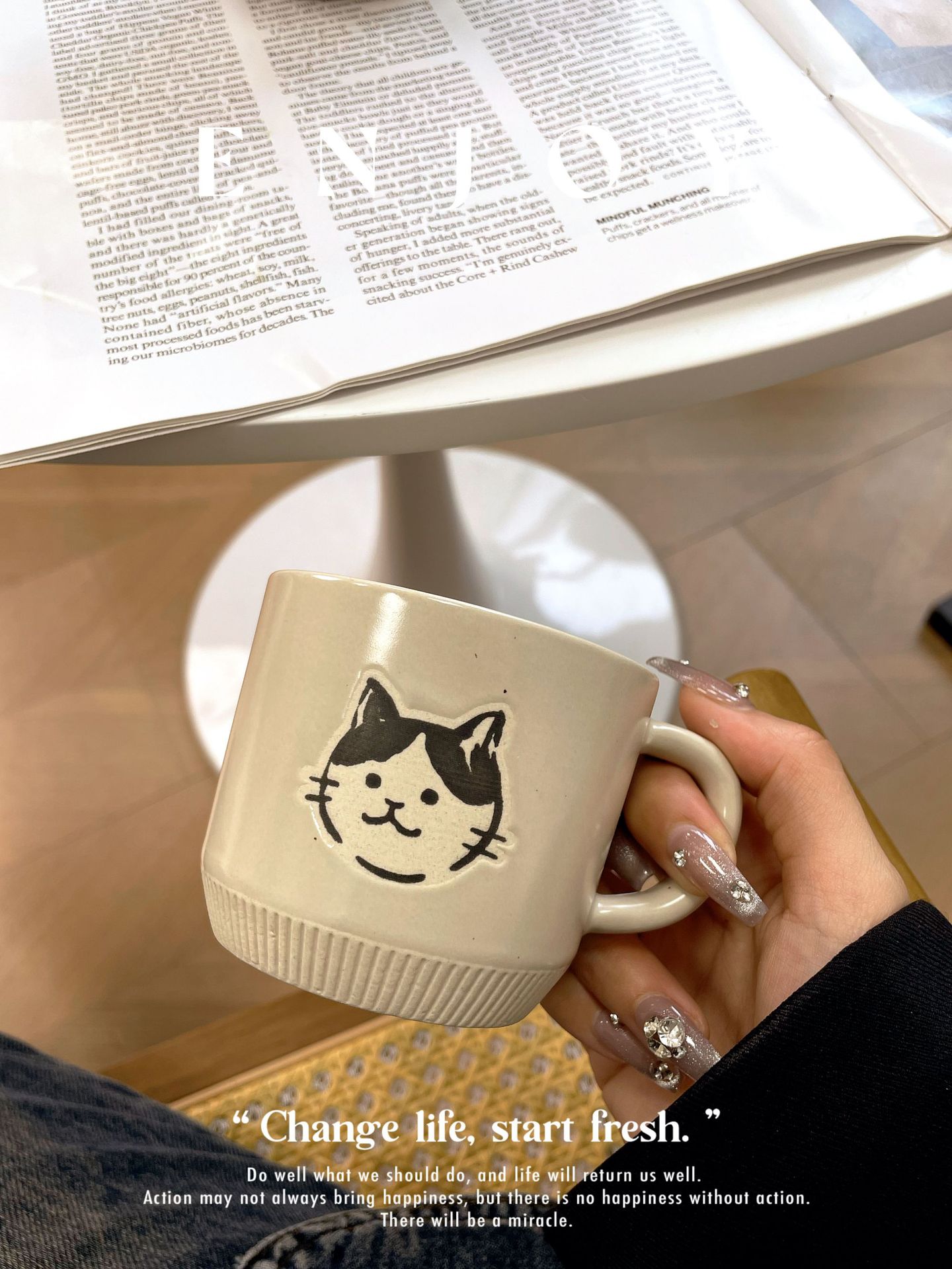 일본 귀여운 고양이 커피 컵 세라믹 새끼 고양이 머그잔 고양이 고양이 모양 디자인 감각 작은 높은 모양의 물 컵스토어 가기