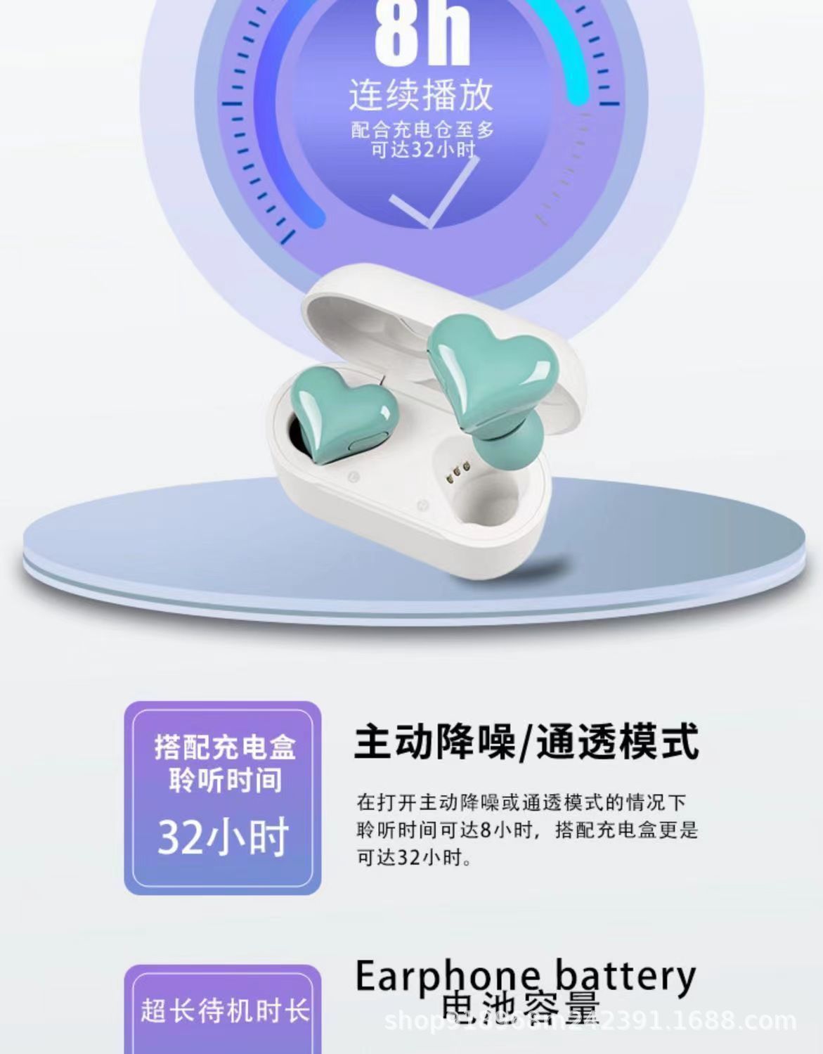 일본 폭발 가슴 하트 모양의 사랑 인 이어 무선 블루투스 대형 전력 소음 감소 헤드셋 여성 선물