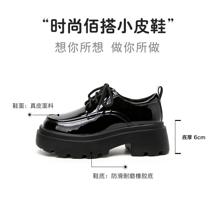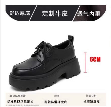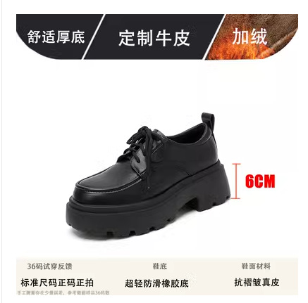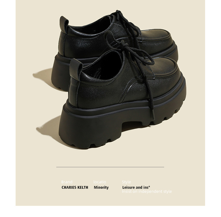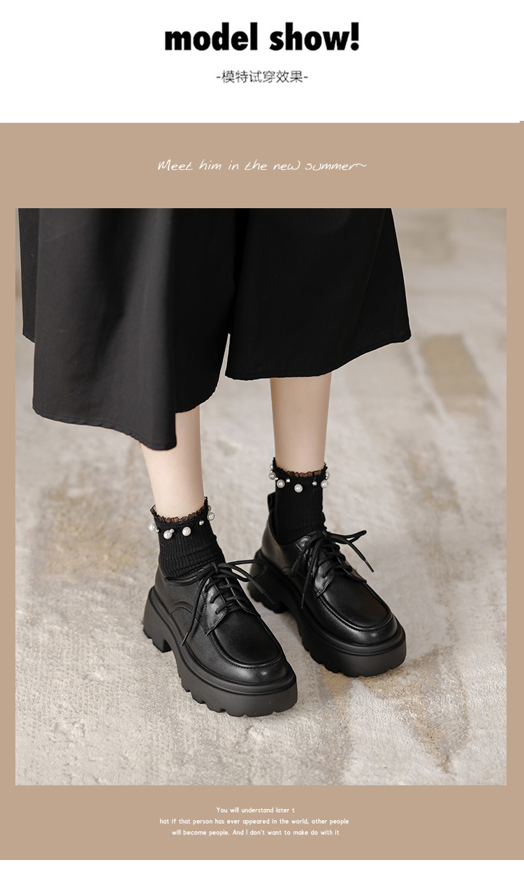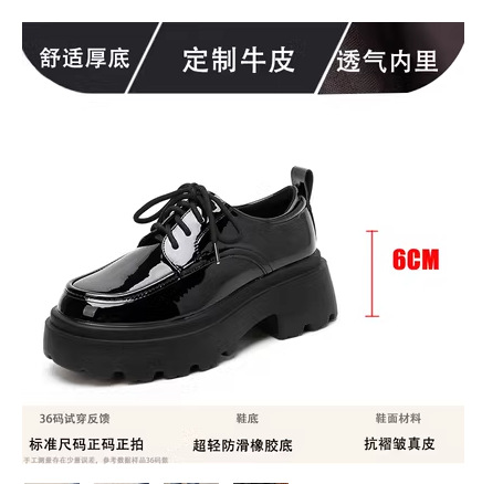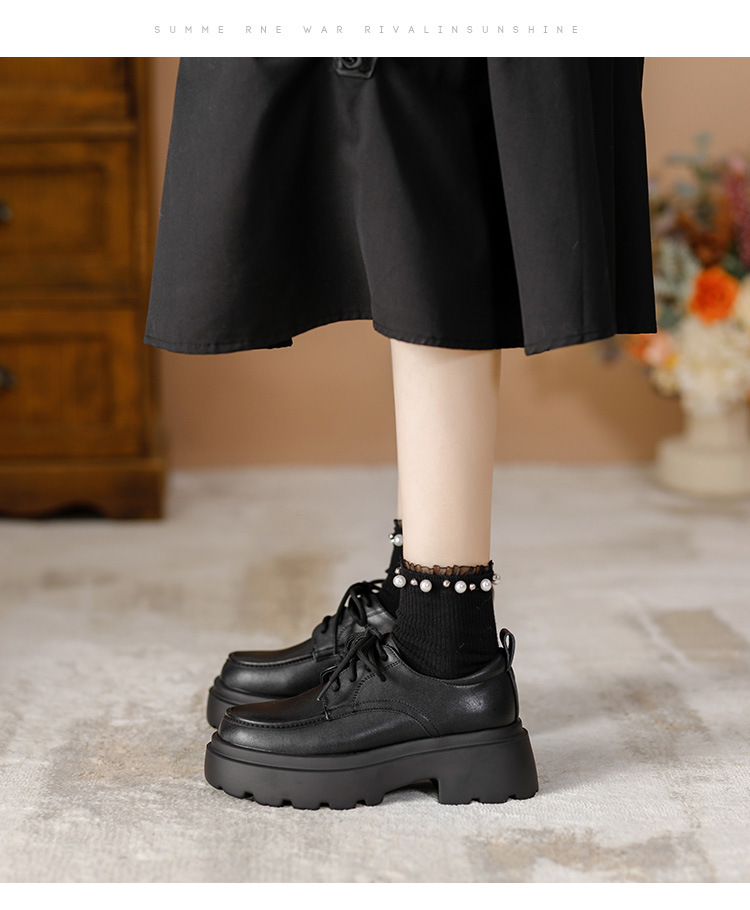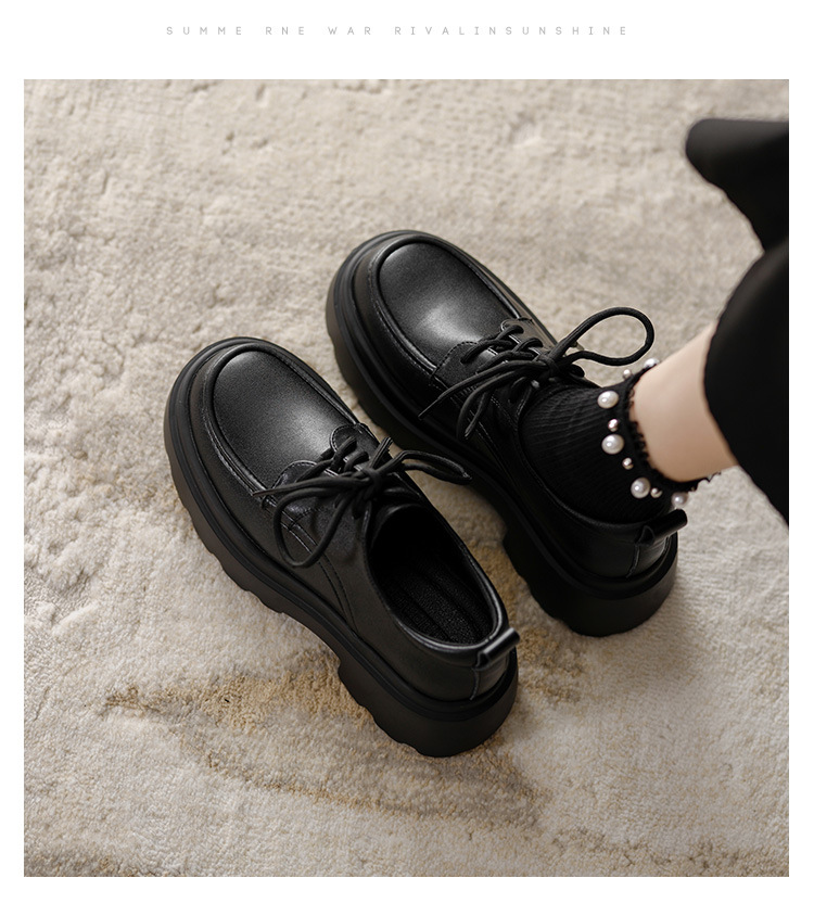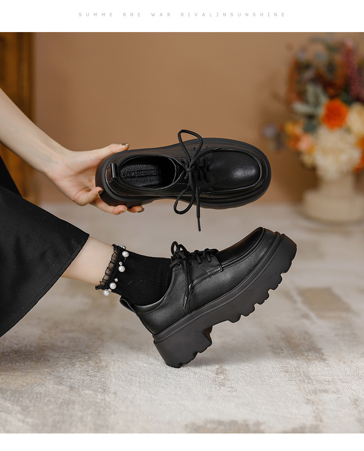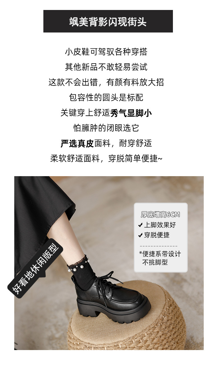라운드 토 단화 키높이 레이스업 로퍼 플랫폼 슈즈 두꺼운 밑창 가죽 신발 여성용 영국 스타일 가을 겨울 2025 신상 블랙스토어 가기