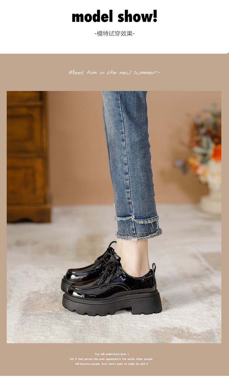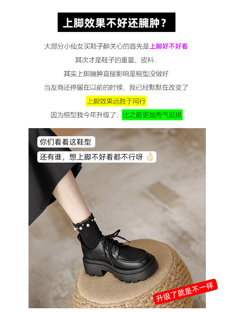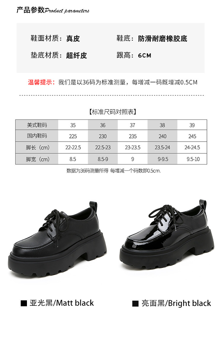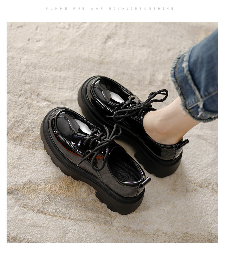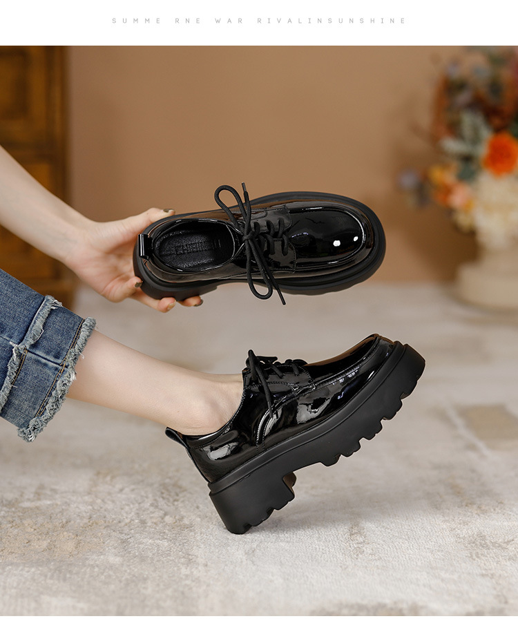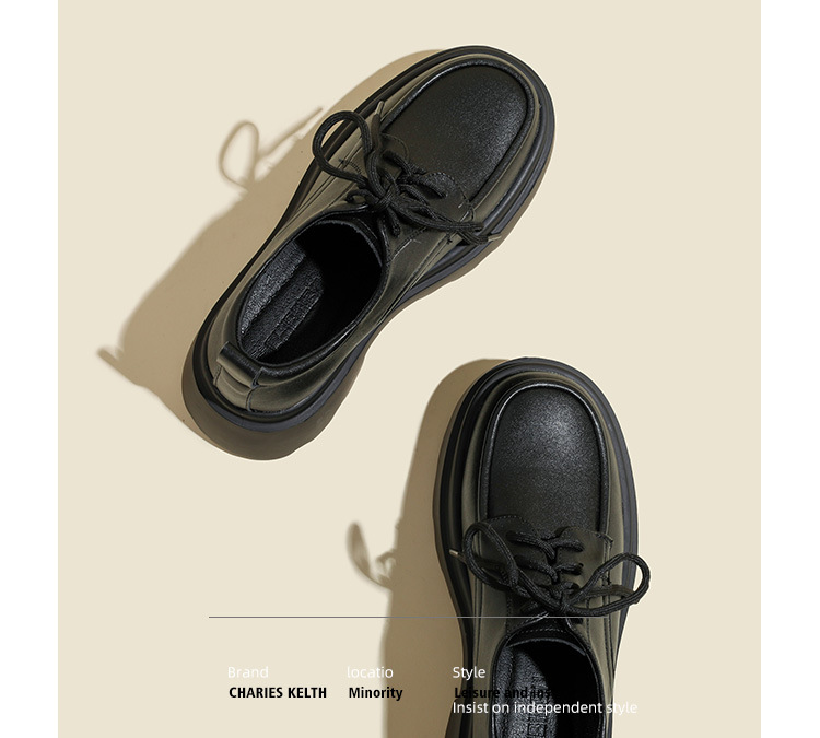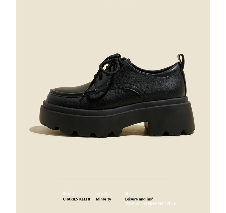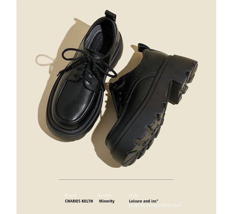 라운드 토 단화 키높이 레이스업 로퍼 플랫폼 슈즈 두꺼운 밑창 가죽 신발 여성용 영국 스타일 가을 겨울 2025 신상 블랙스토어 가기