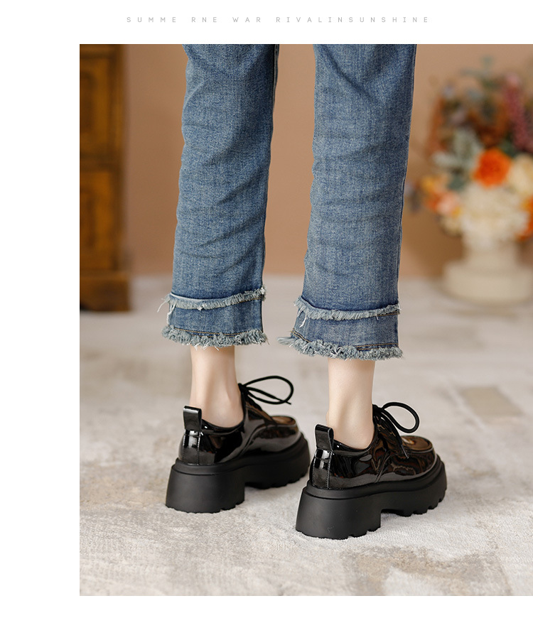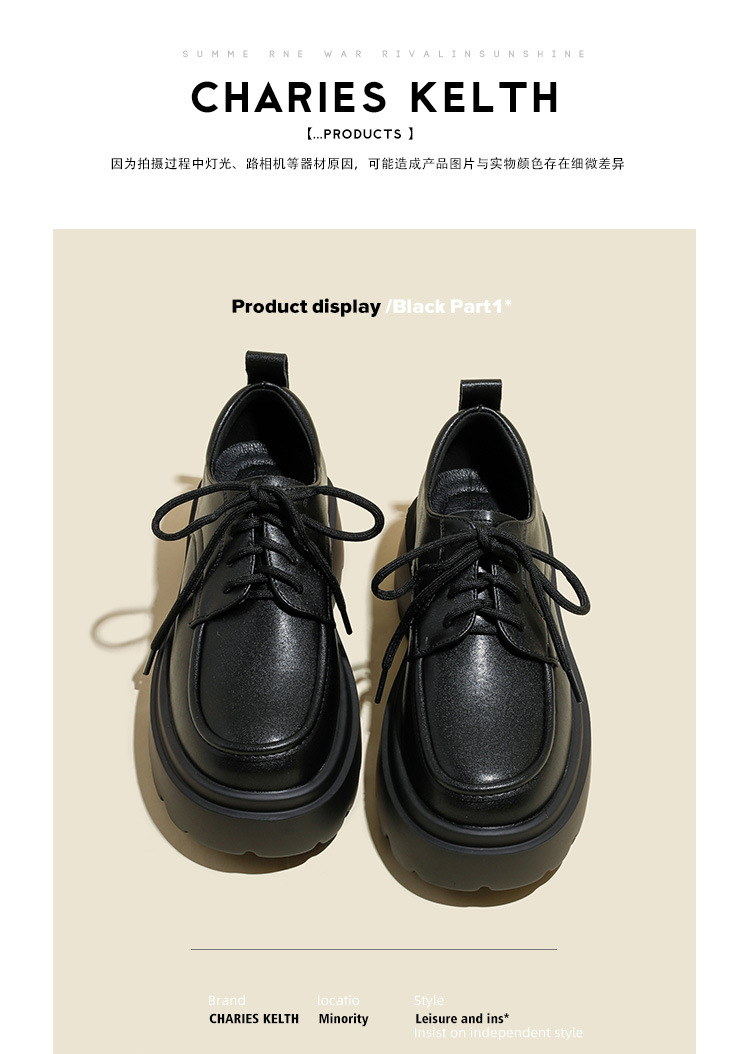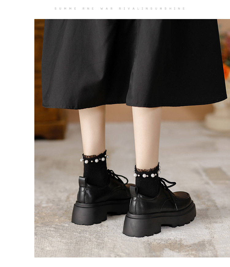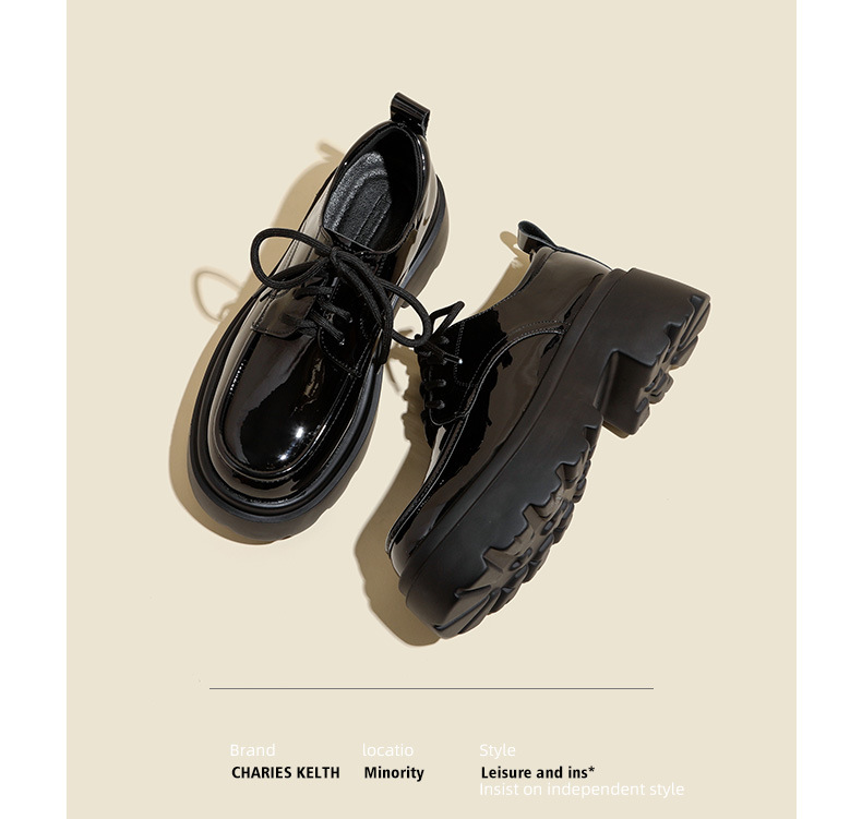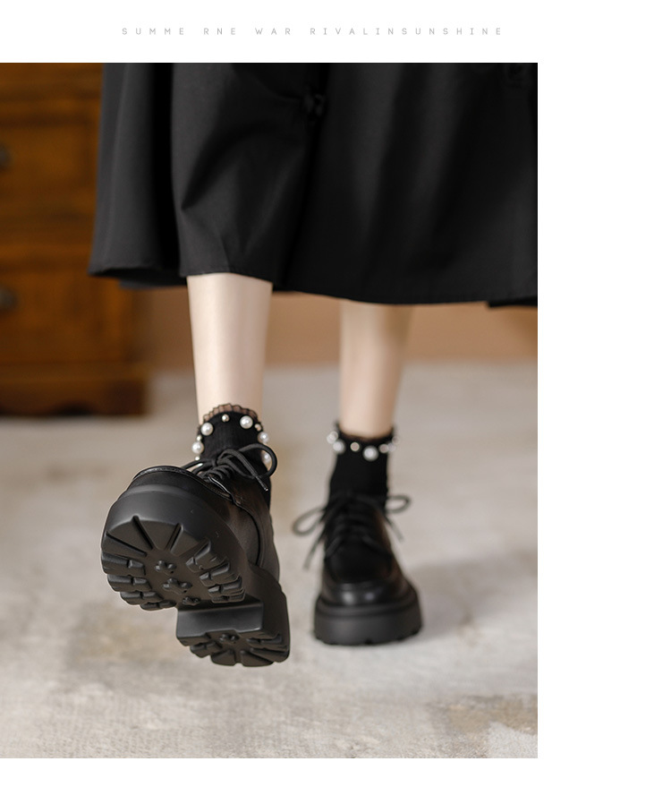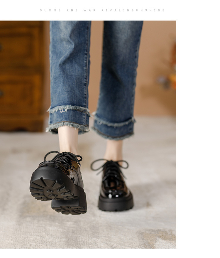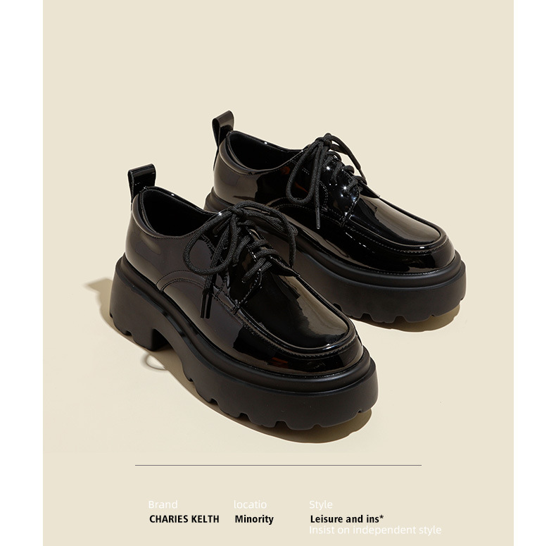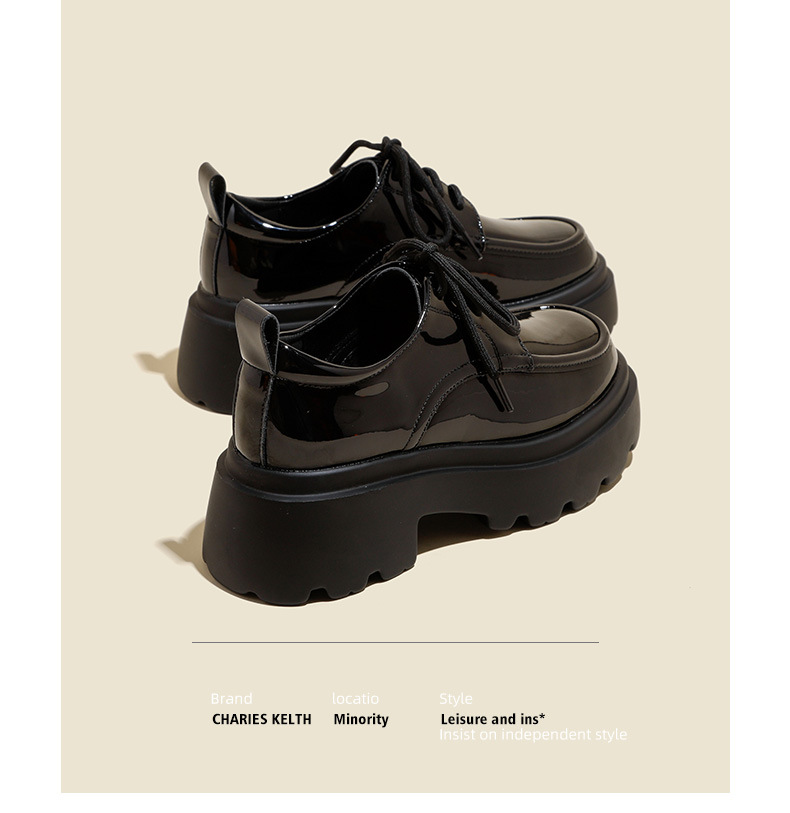라운드 토 단화 키높이 레이스업 로퍼 플랫폼 슈즈 두꺼운 밑창 가죽 신발 여성용 영국 스타일 가을 겨울 2025 신상 블랙스토어 가기