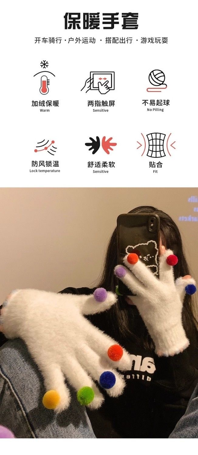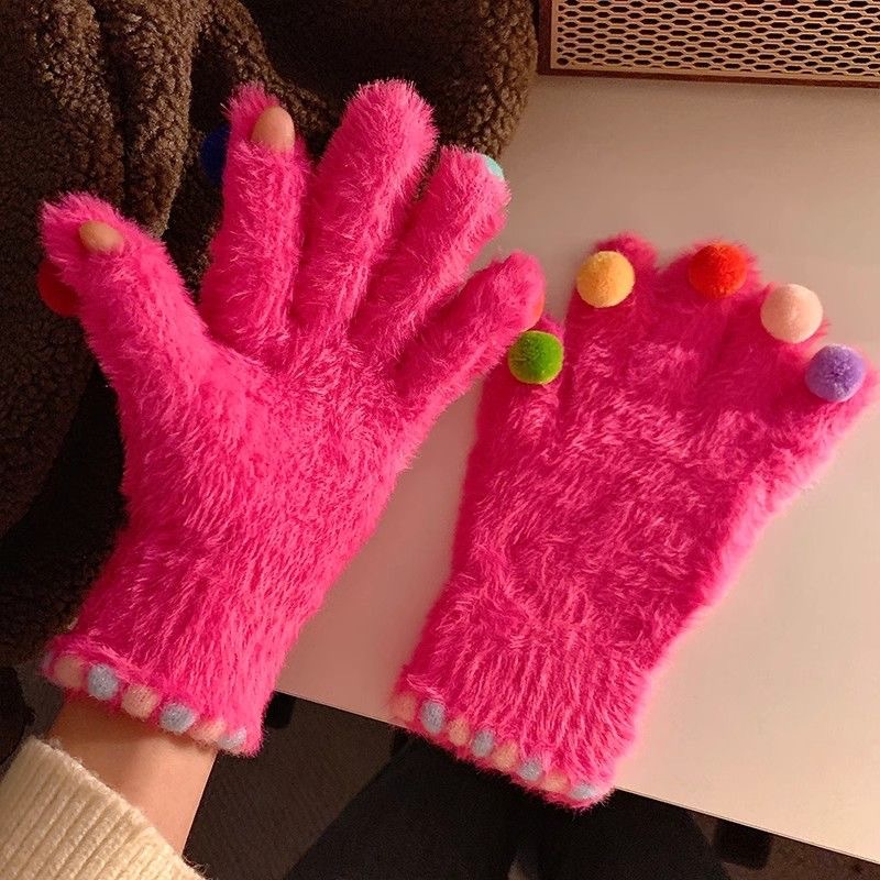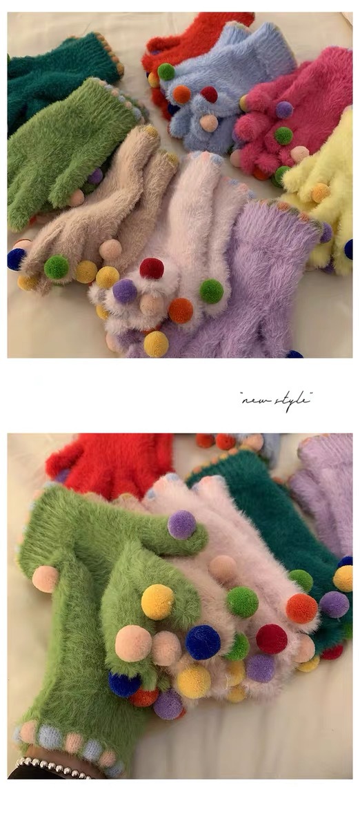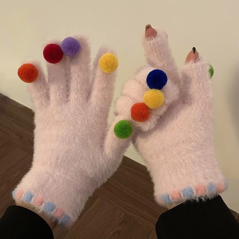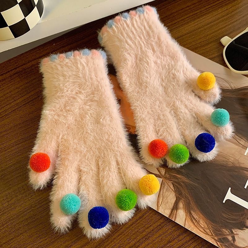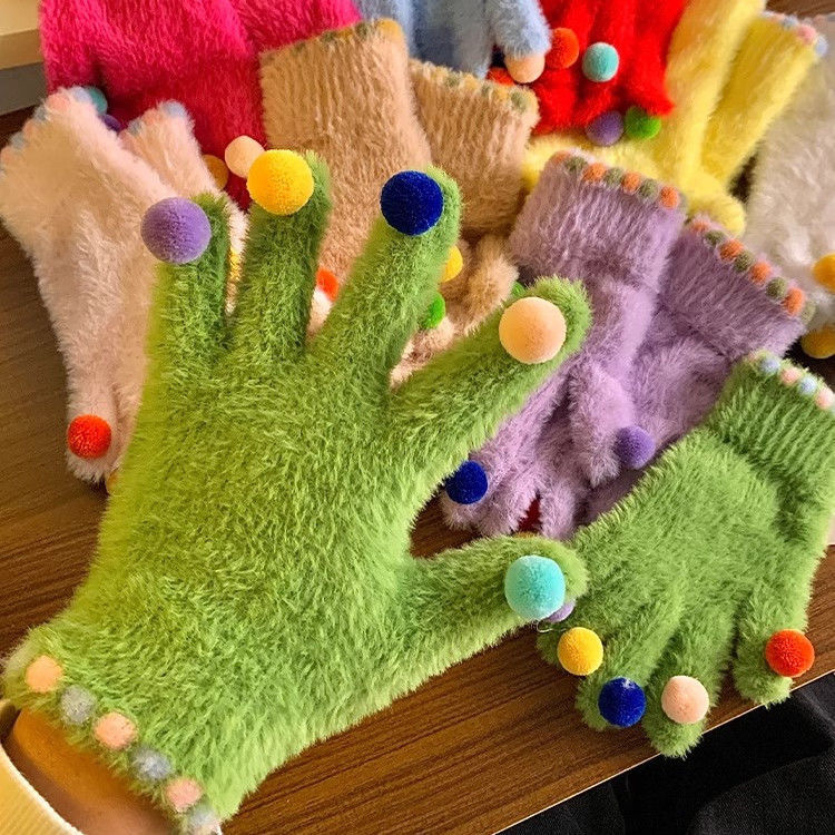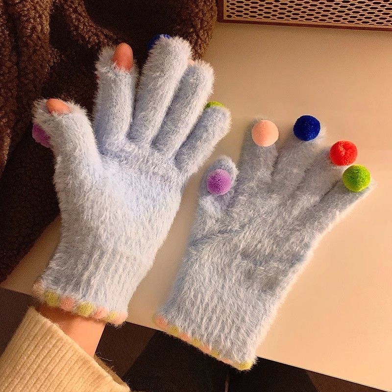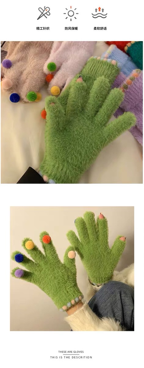 겨울 장갑 여성 Ins 캔디 컬러 밍크 헤어 터치 스크린 장갑 커플 학생들이 휴대 전화로 놀기 위해 타고