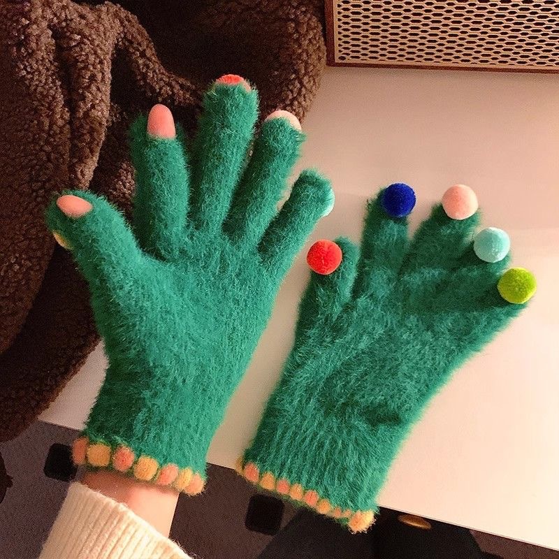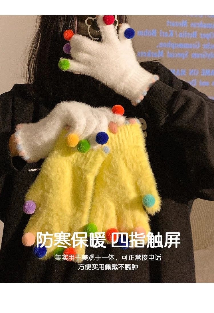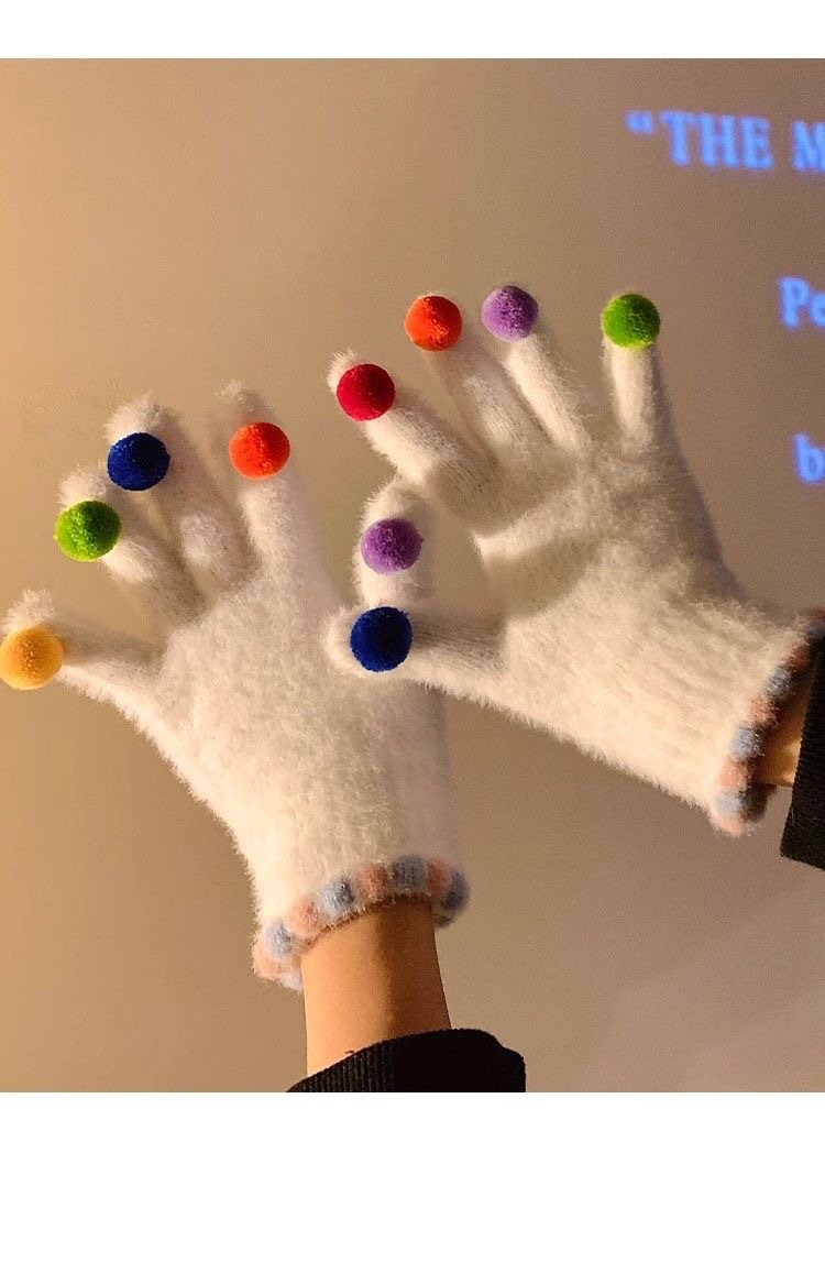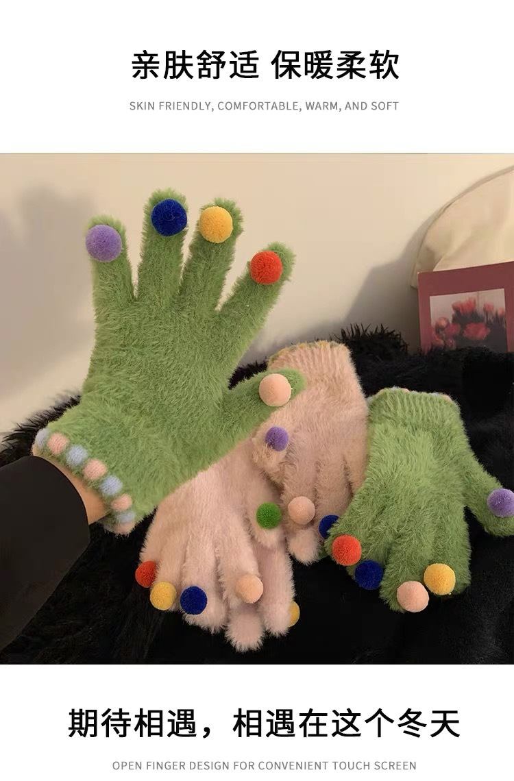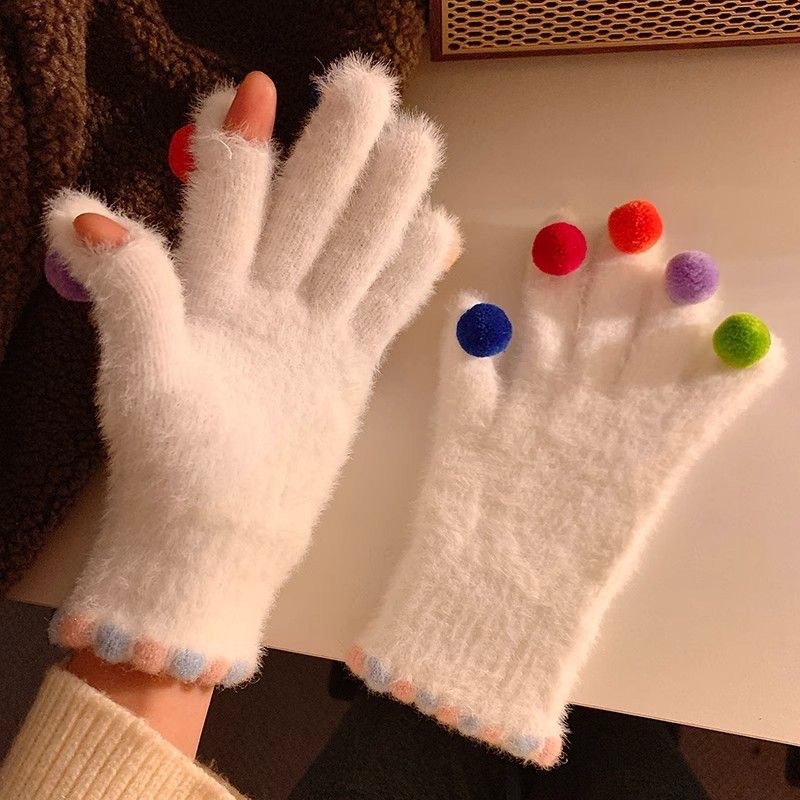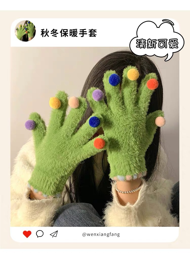 겨울 장갑 여성 Ins 캔디 컬러 밍크 헤어 터치 스크린 장갑 커플 학생들이 휴대 전화로 놀기 위해 타고