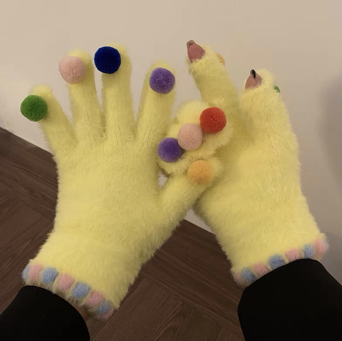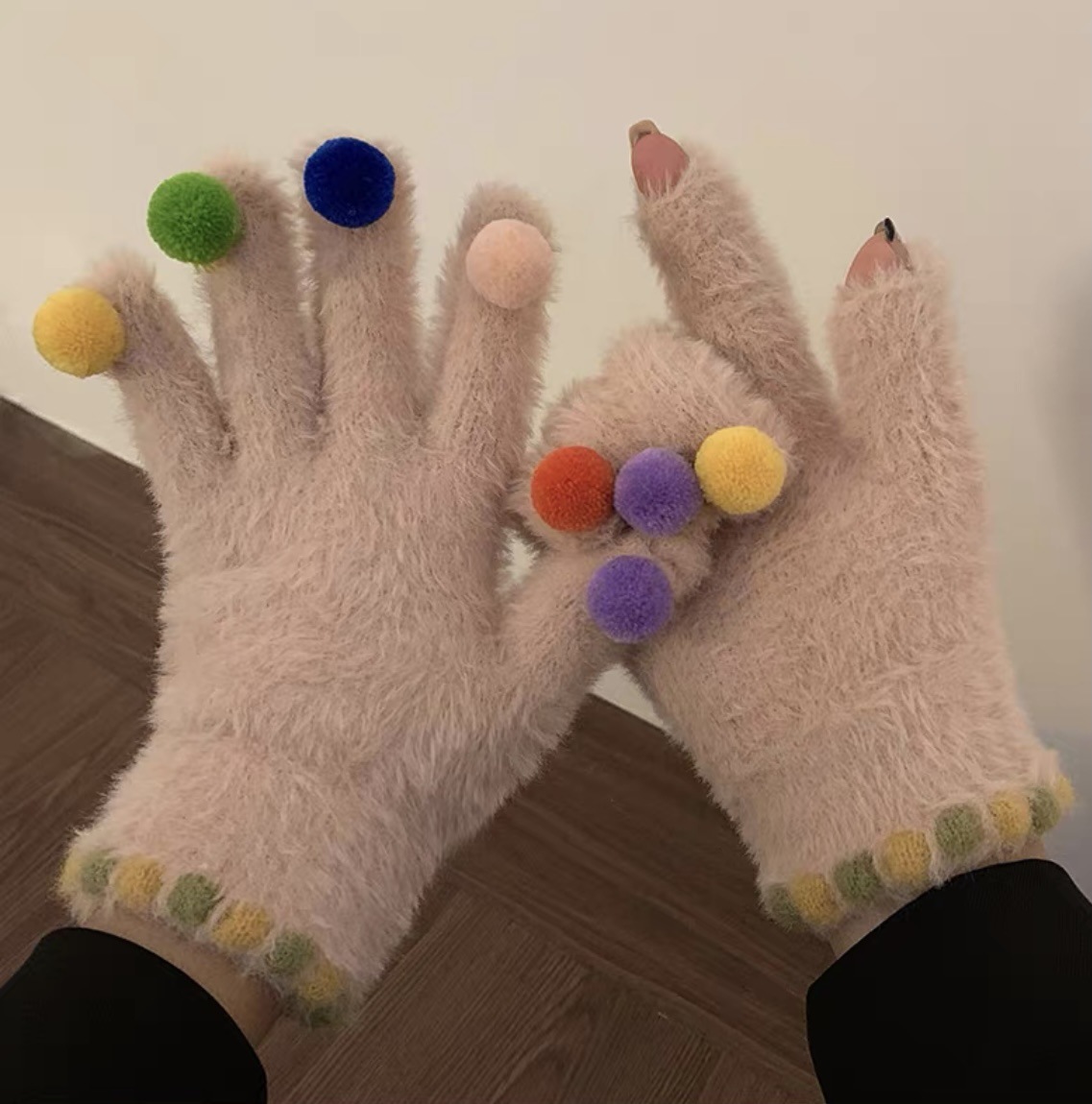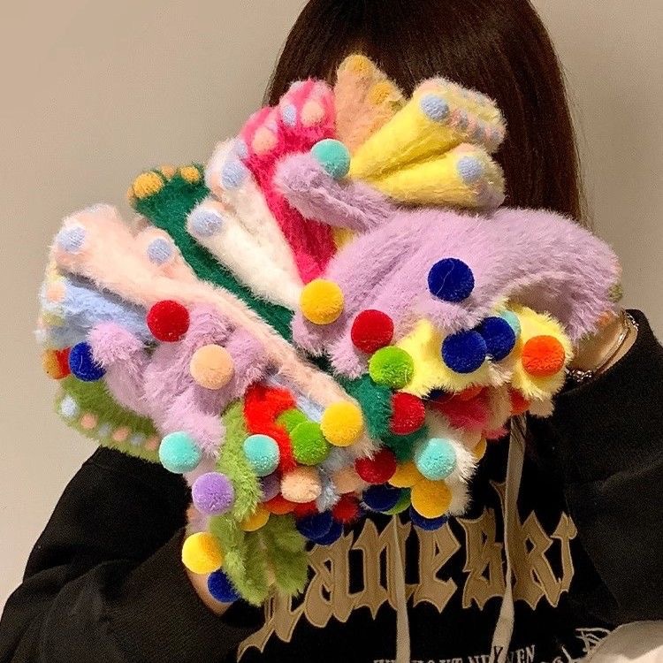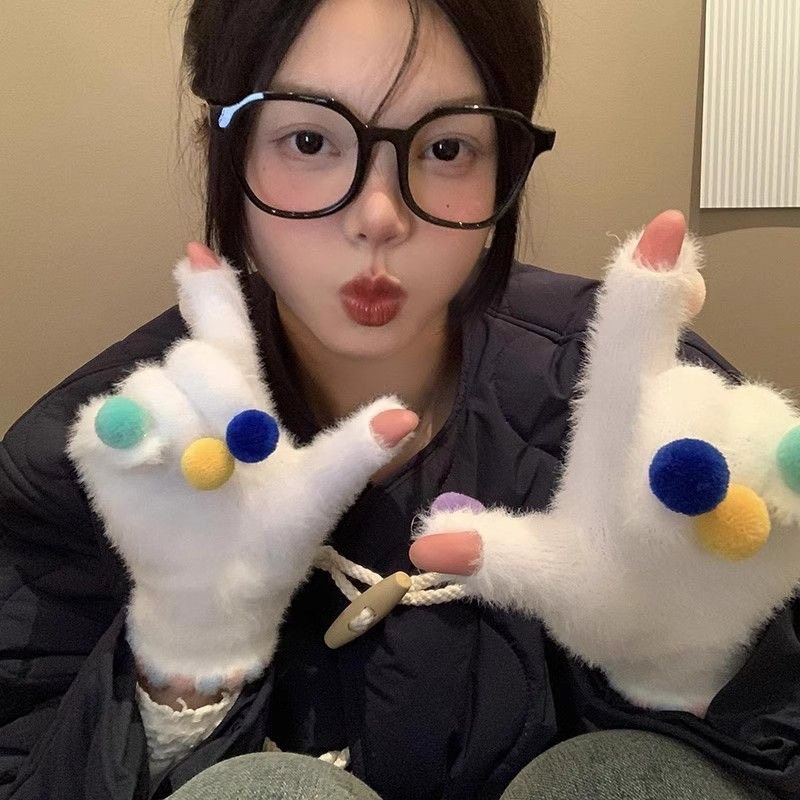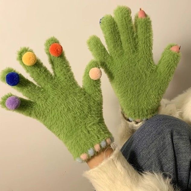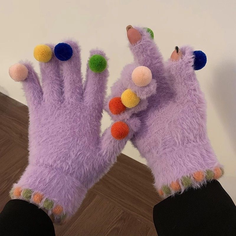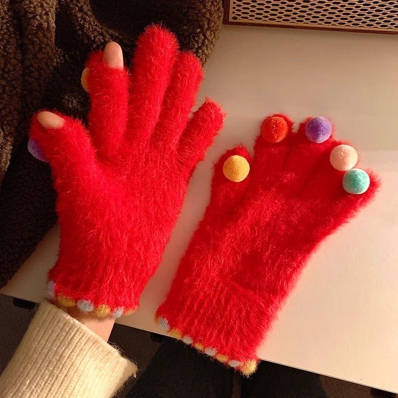 겨울 장갑 여성 Ins 캔디 컬러 밍크 헤어 터치 스크린 장갑 커플 학생들이 휴대 전화로 놀기 위해 타고