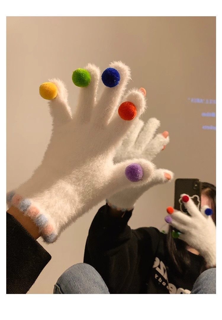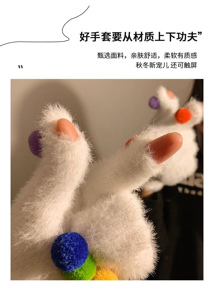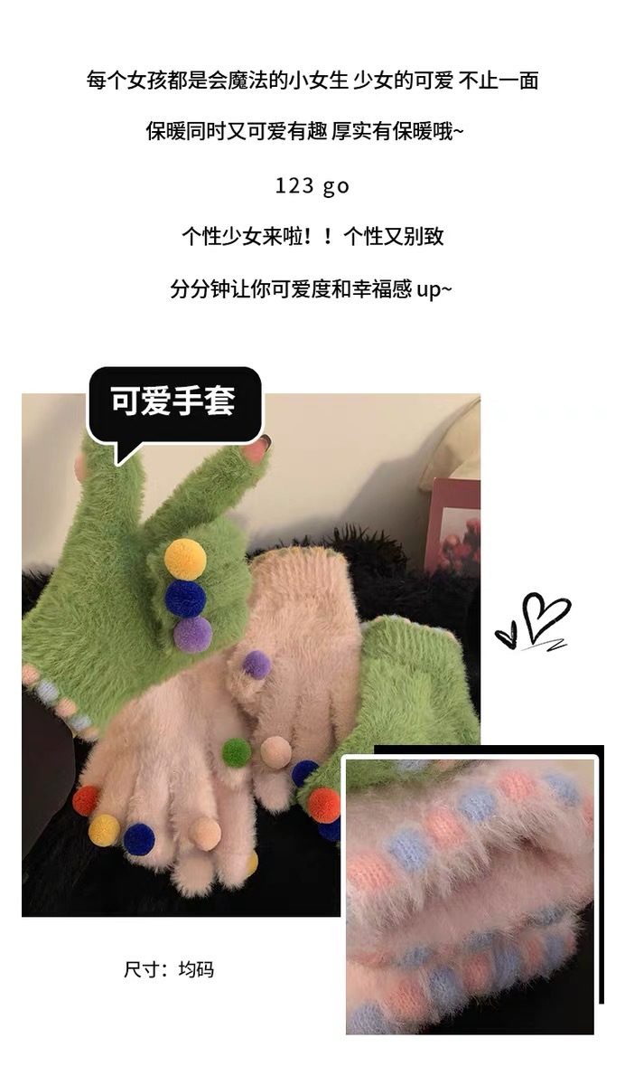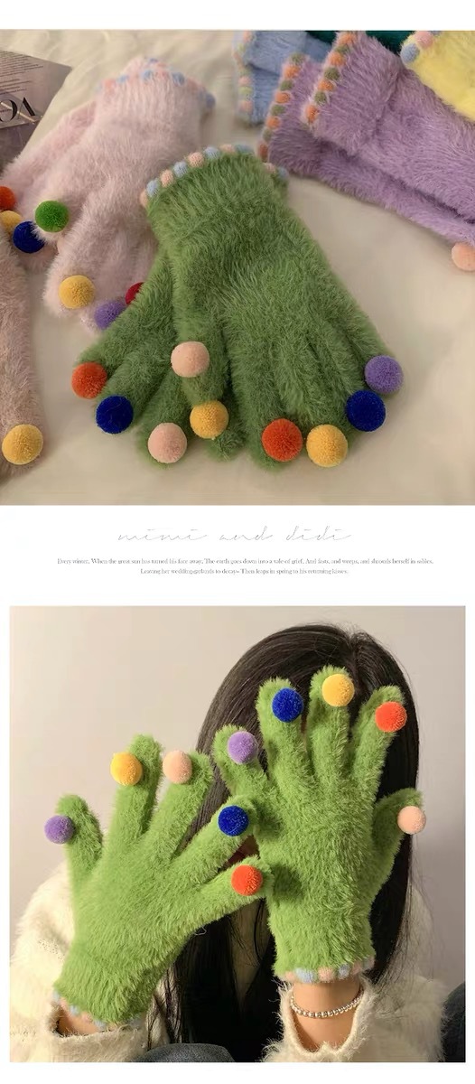 겨울 장갑 여성 Ins 캔디 컬러 밍크 헤어 터치 스크린 장갑 커플 학생들이 휴대 전화로 놀기 위해 타고스토어 가기