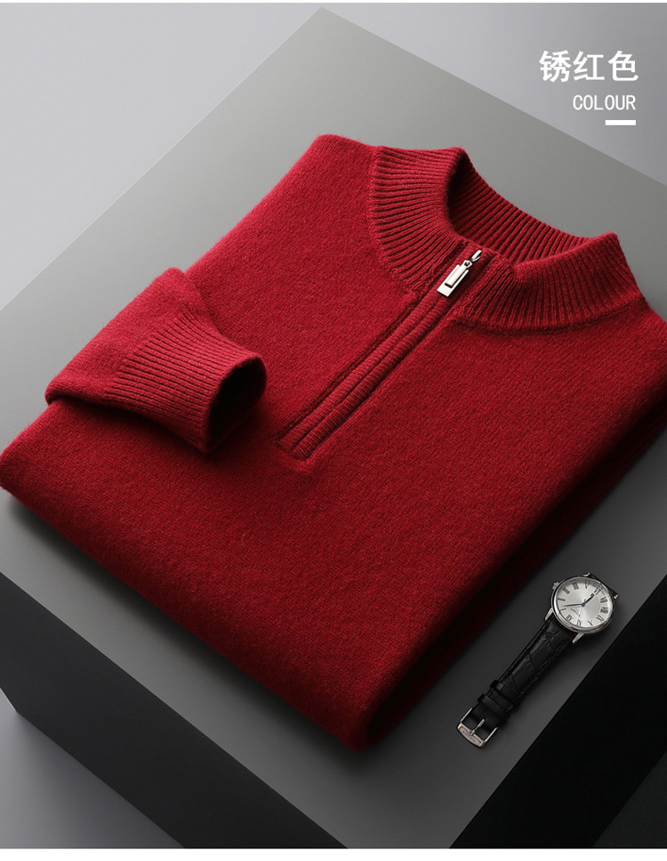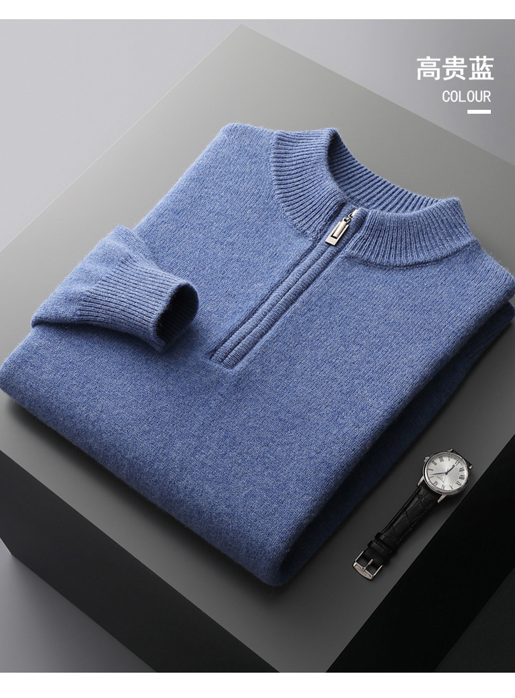 울 가을과 겨울 새로운 하프 지퍼 하프 터틀넥 스웨터 23 년 남성 비즈니스 캐주얼 올 매칭 탑