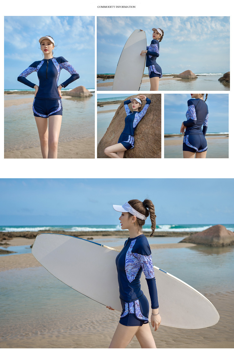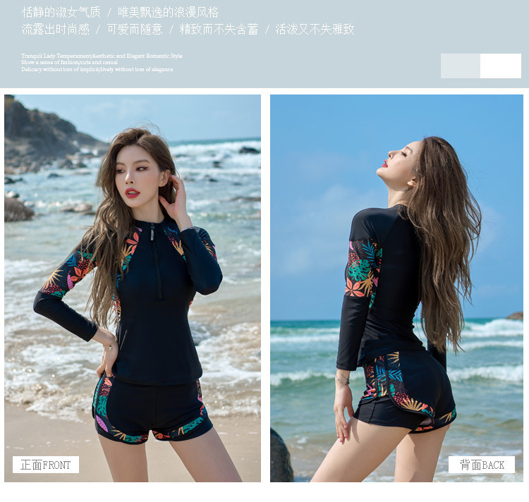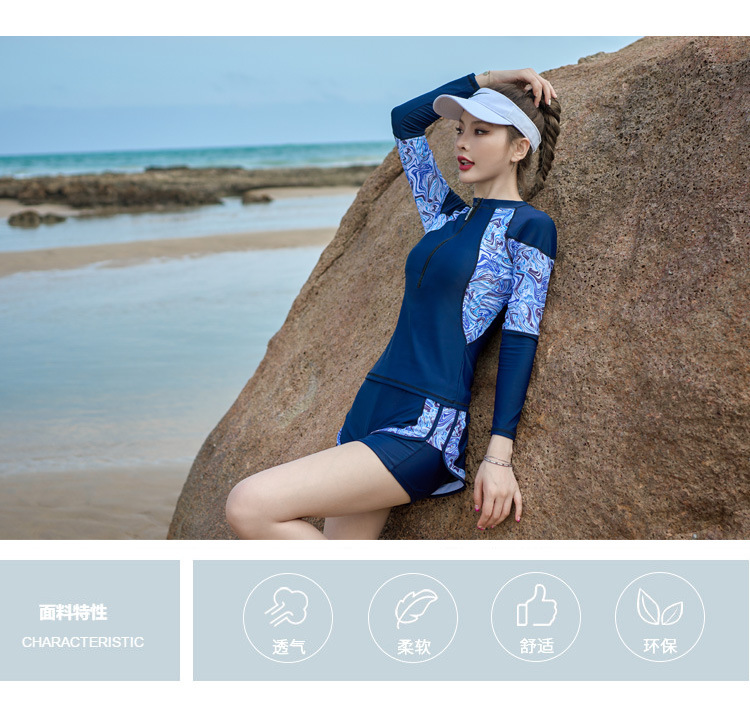 새로운 스포츠 분할 긴팔 복서 슬림 배꼽 커버 지방 플러스 사이즈 투피스 수영복 여성 온천스토어 가기