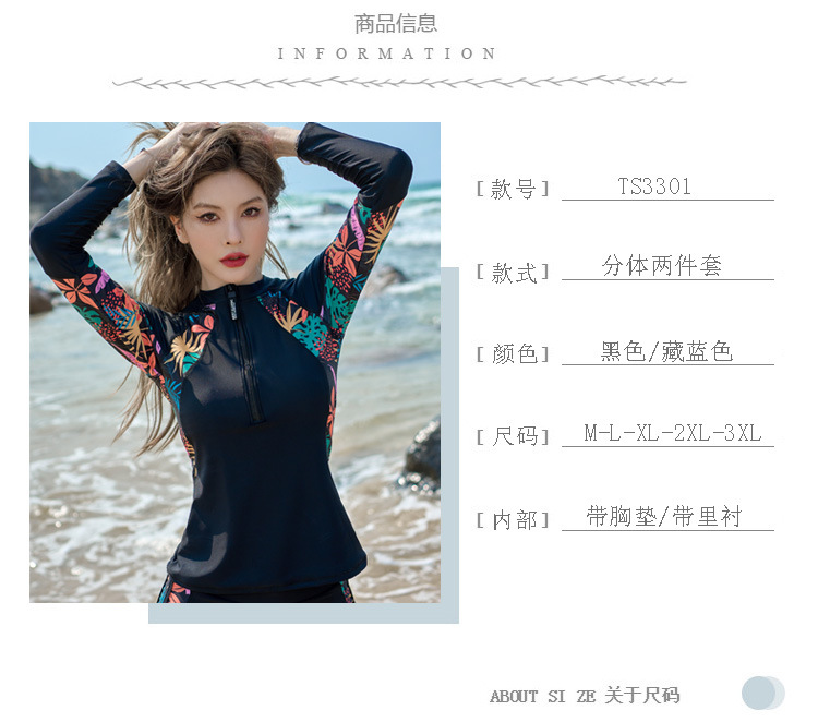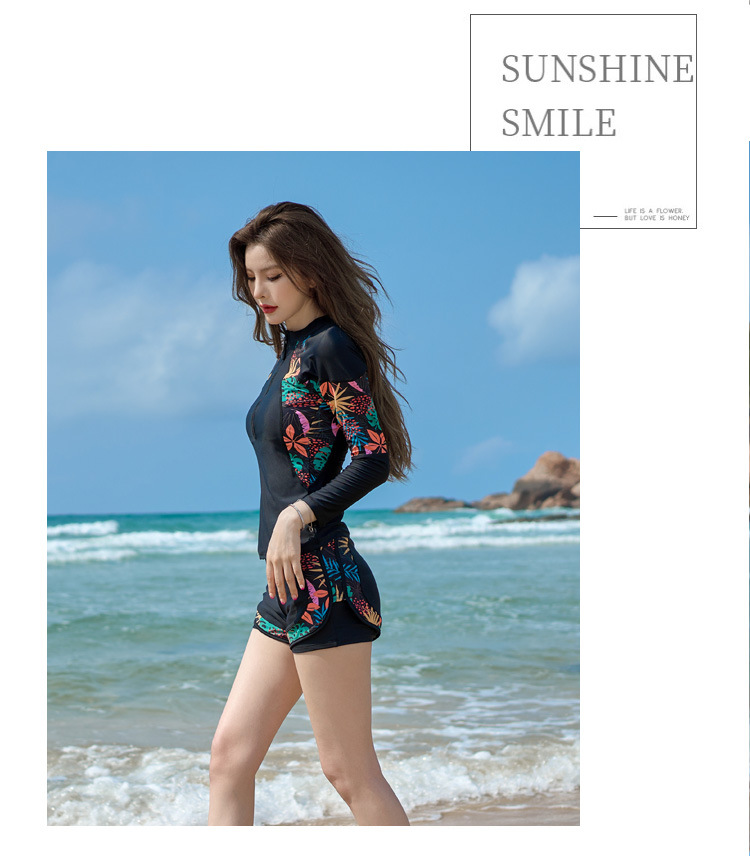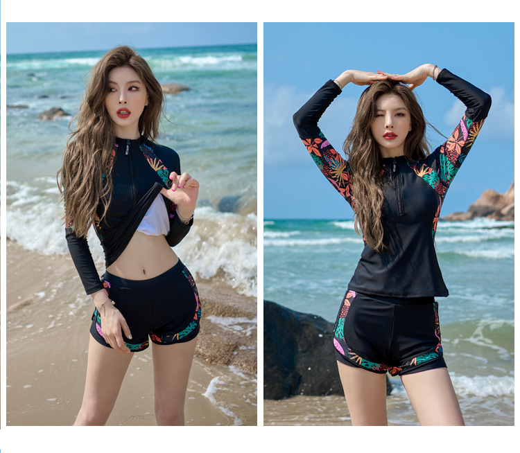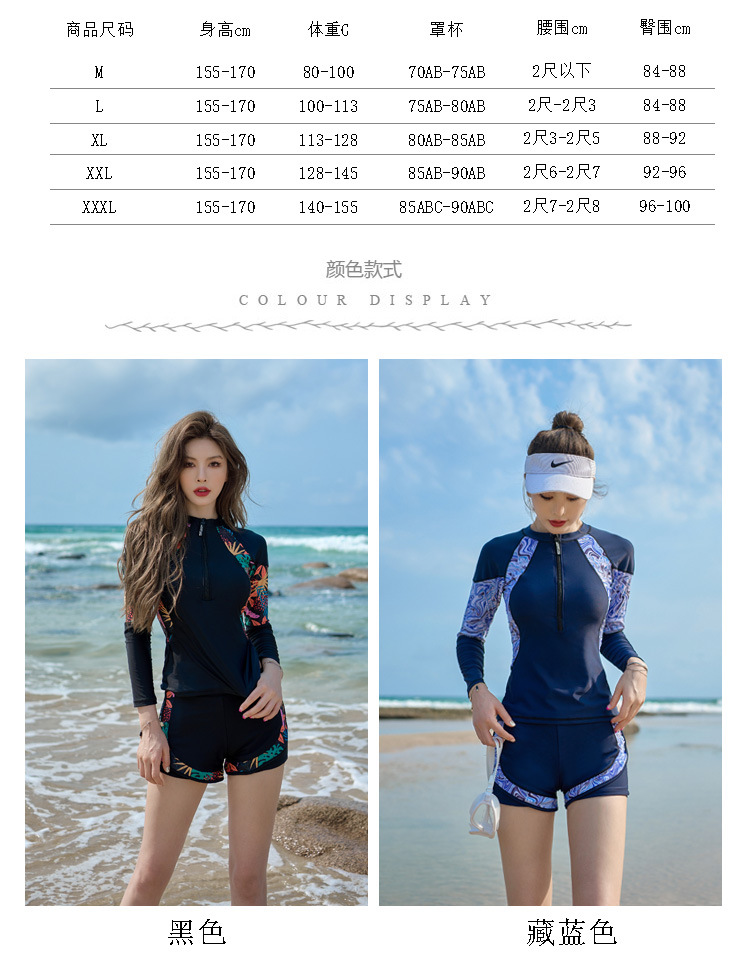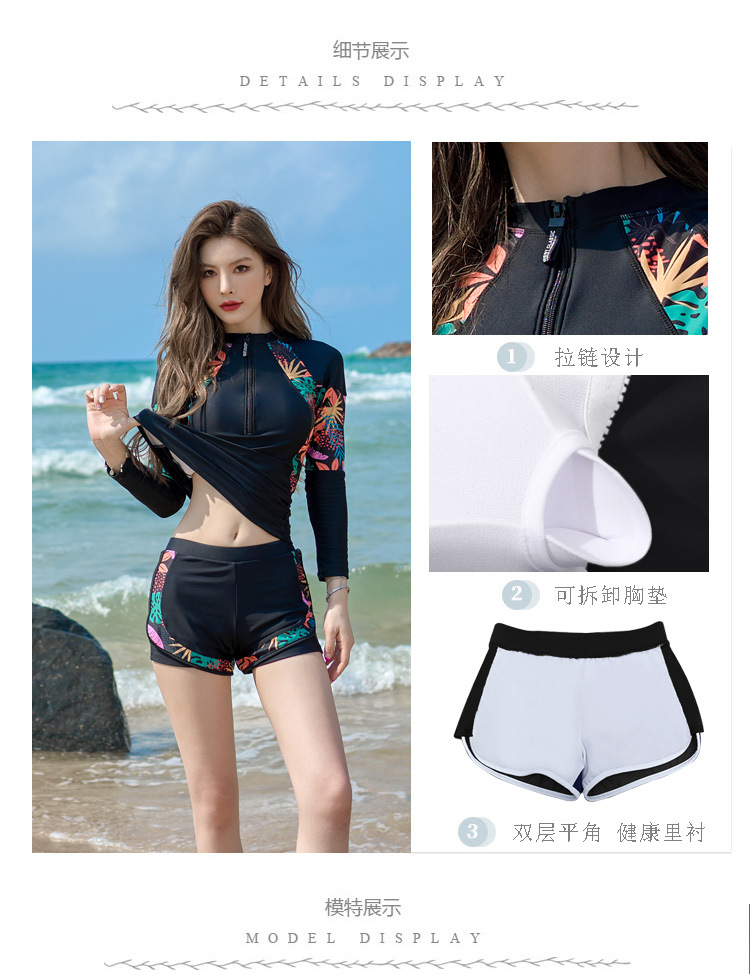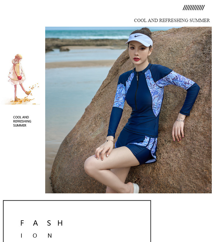 새로운 스포츠 분할 긴팔 복서 슬림 배꼽 커버 지방 플러스 사이즈 투피스 수영복 여성 온천