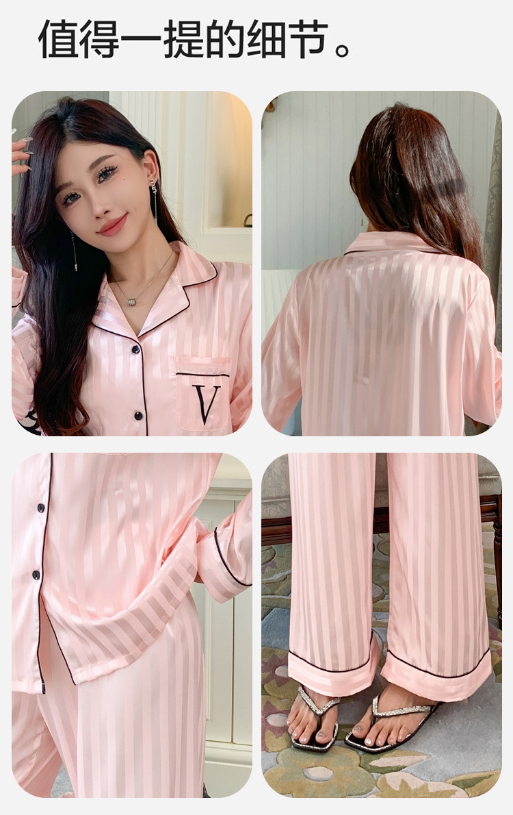 봄과 가을 청소년 한국식 여성 아이스 실크 얇은 잠옷 긴팔 바지 실크 홈웨어 세트 뉴 2024스토어 가기