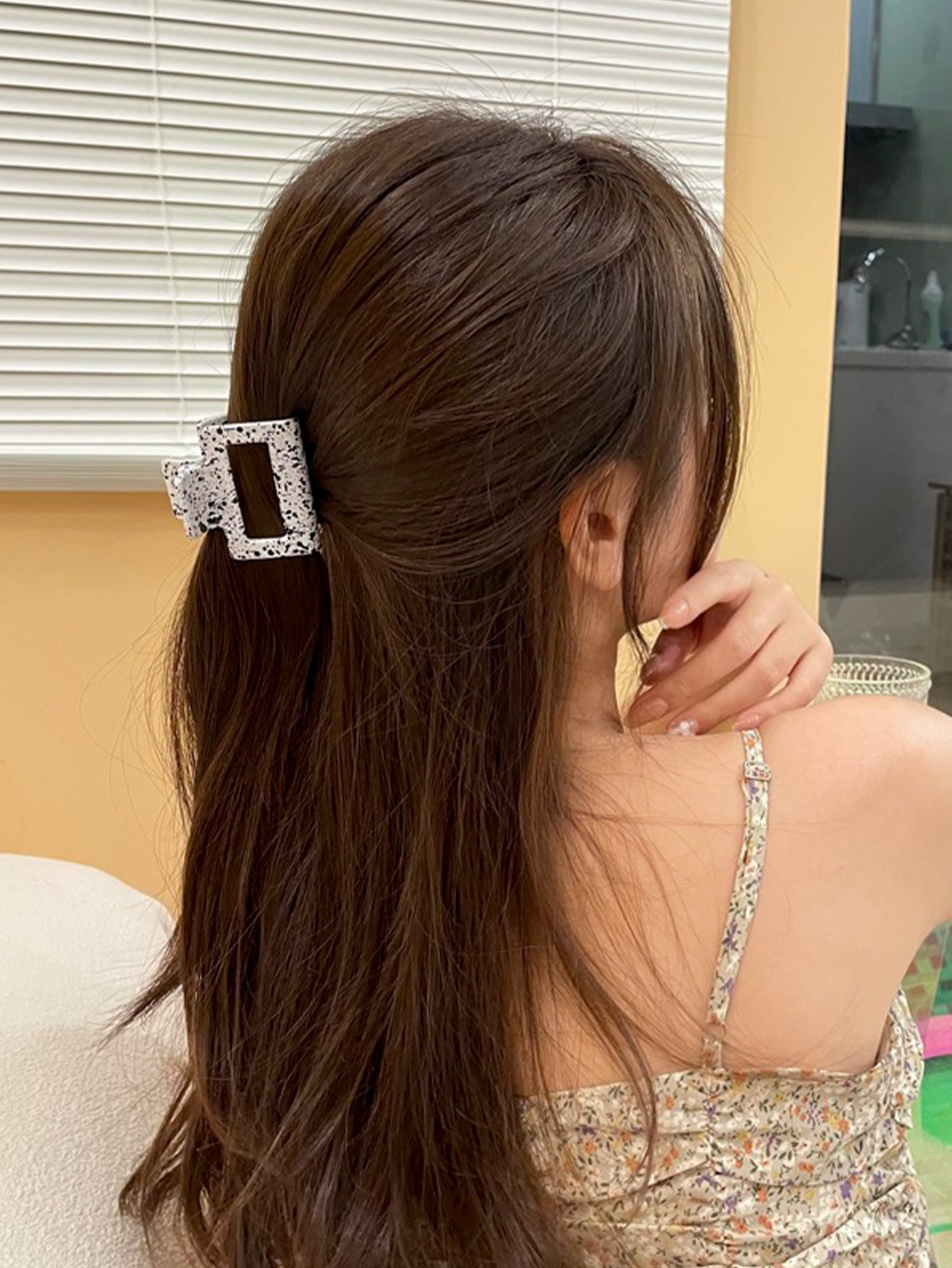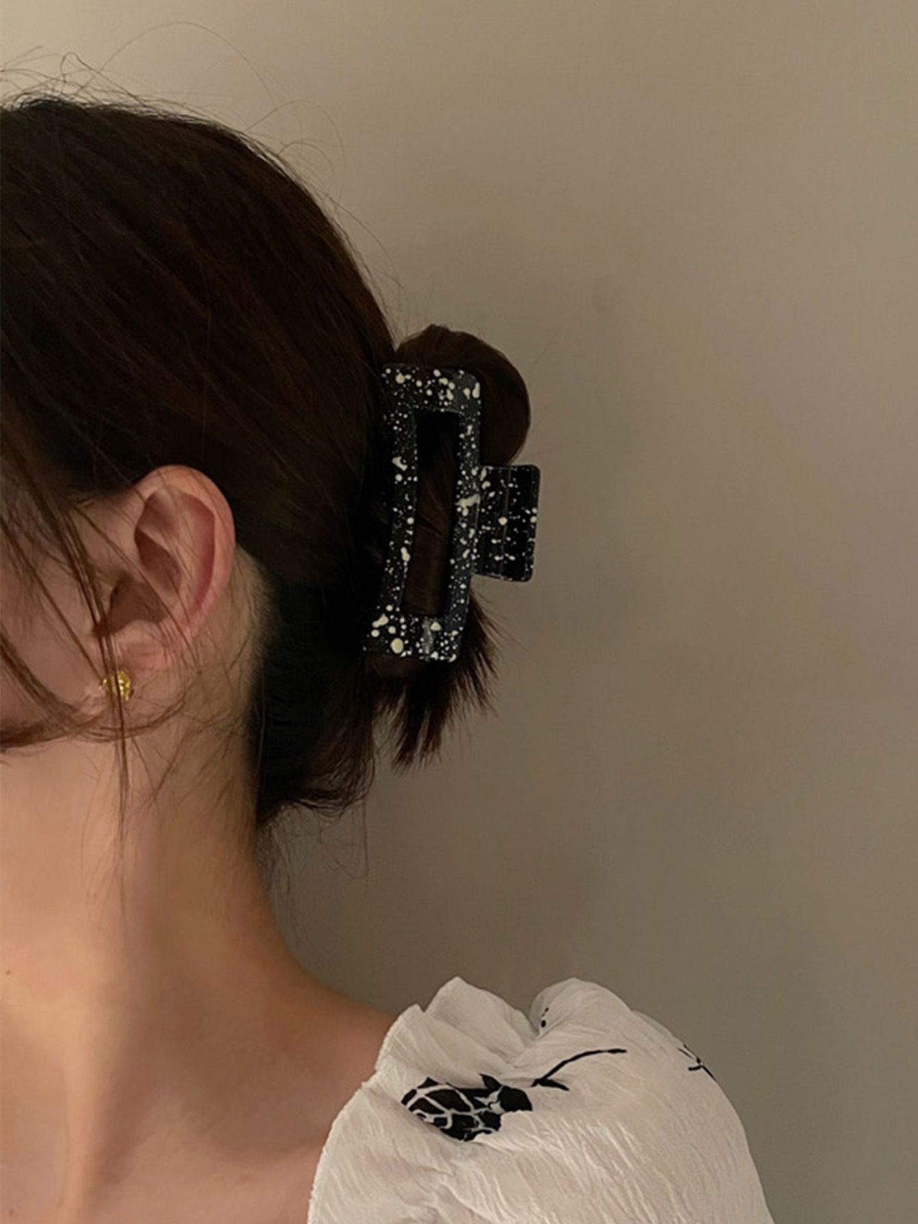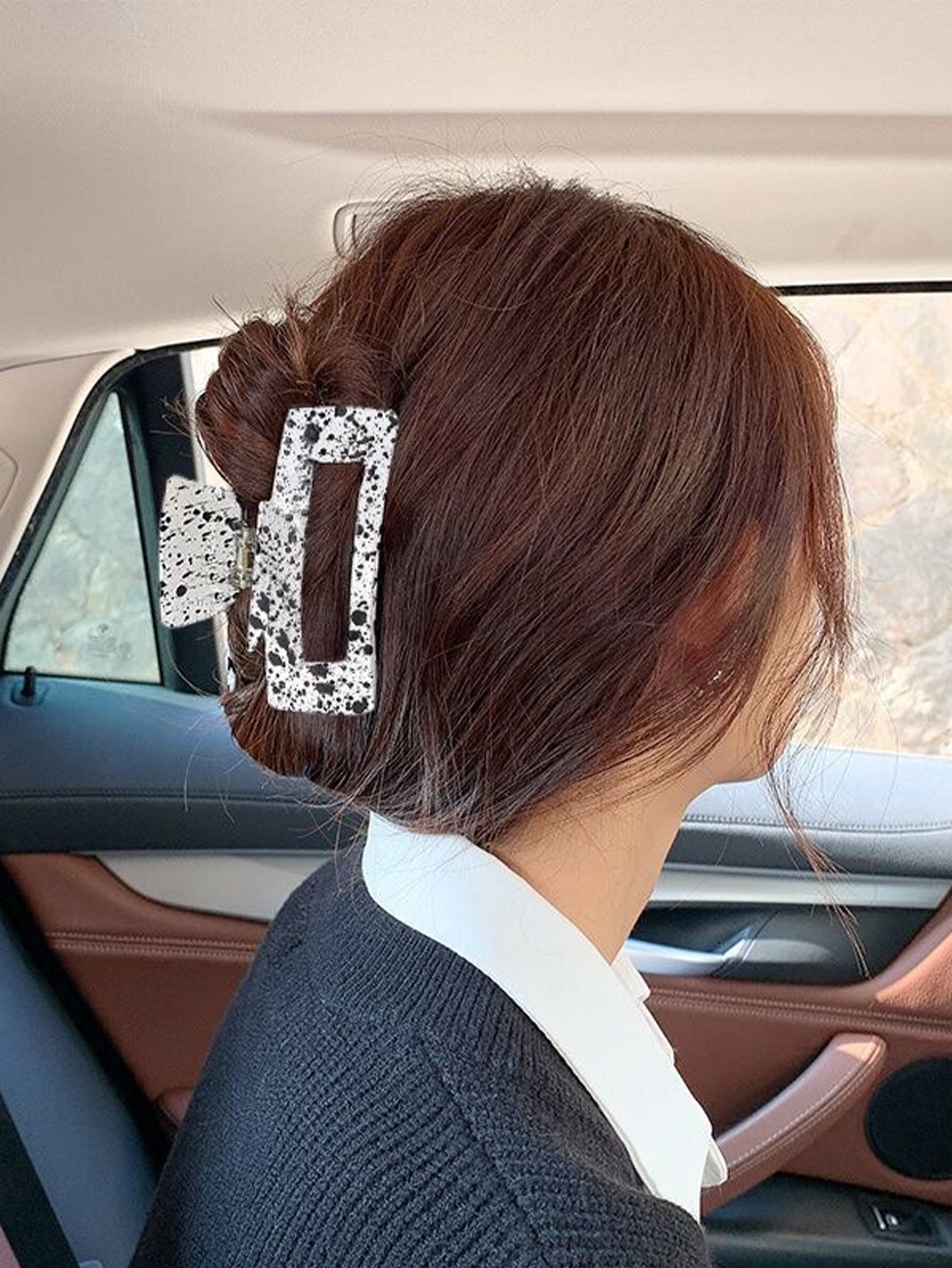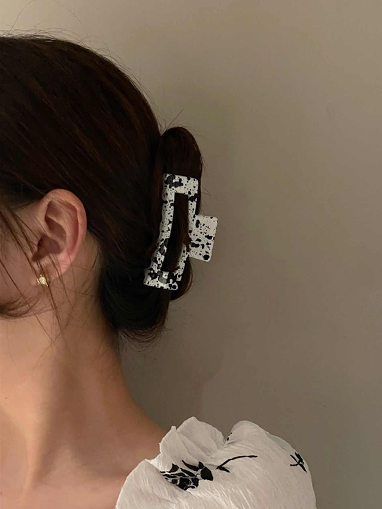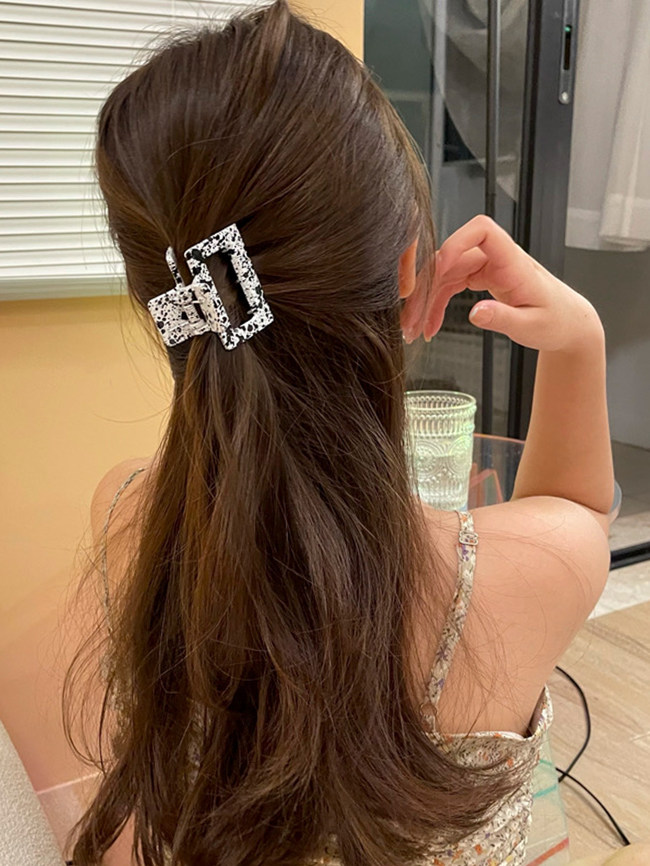 한국 블로거 흑백 스플래시 잉크 패턴 다크 브라운 흰색 레오파드 무늬 스퀘어 아세테이트 헤어 그립 상어 클립 여성 머리핀 국경 간 공급스토어 가기