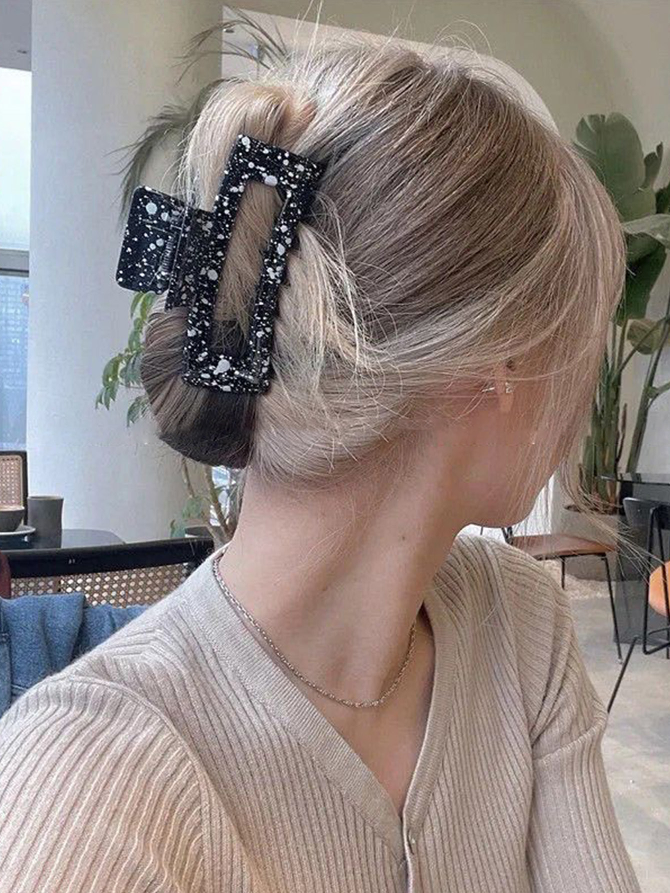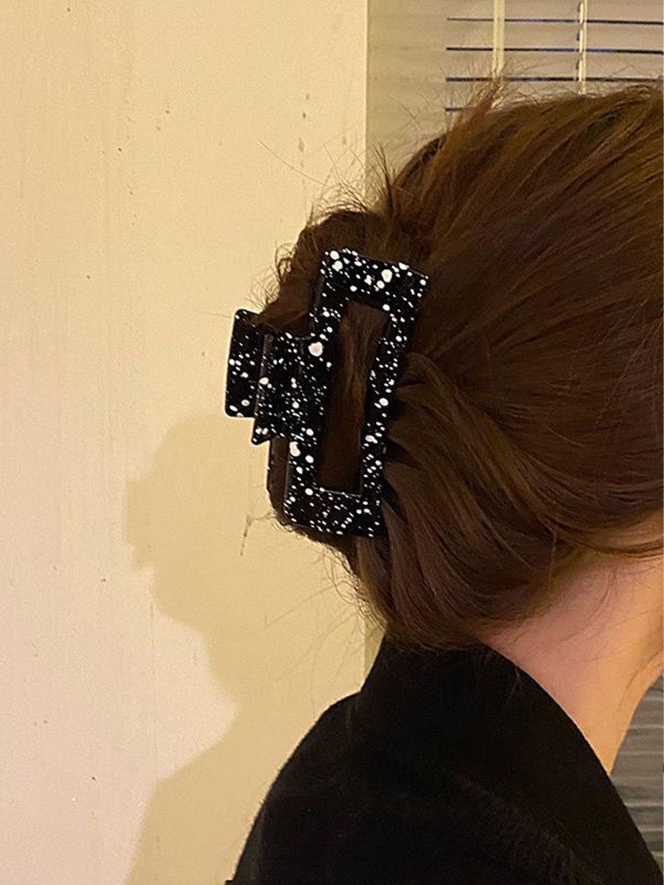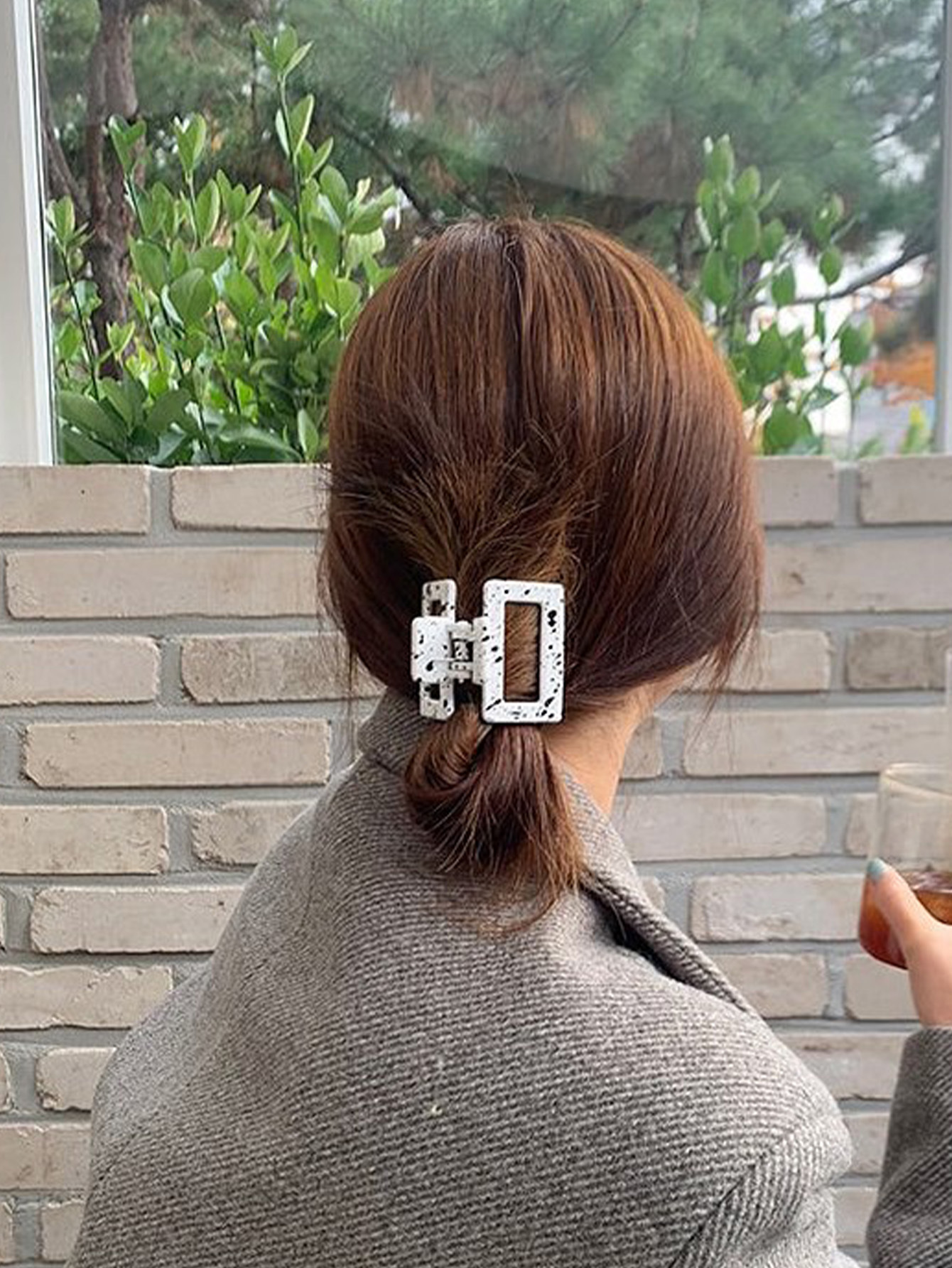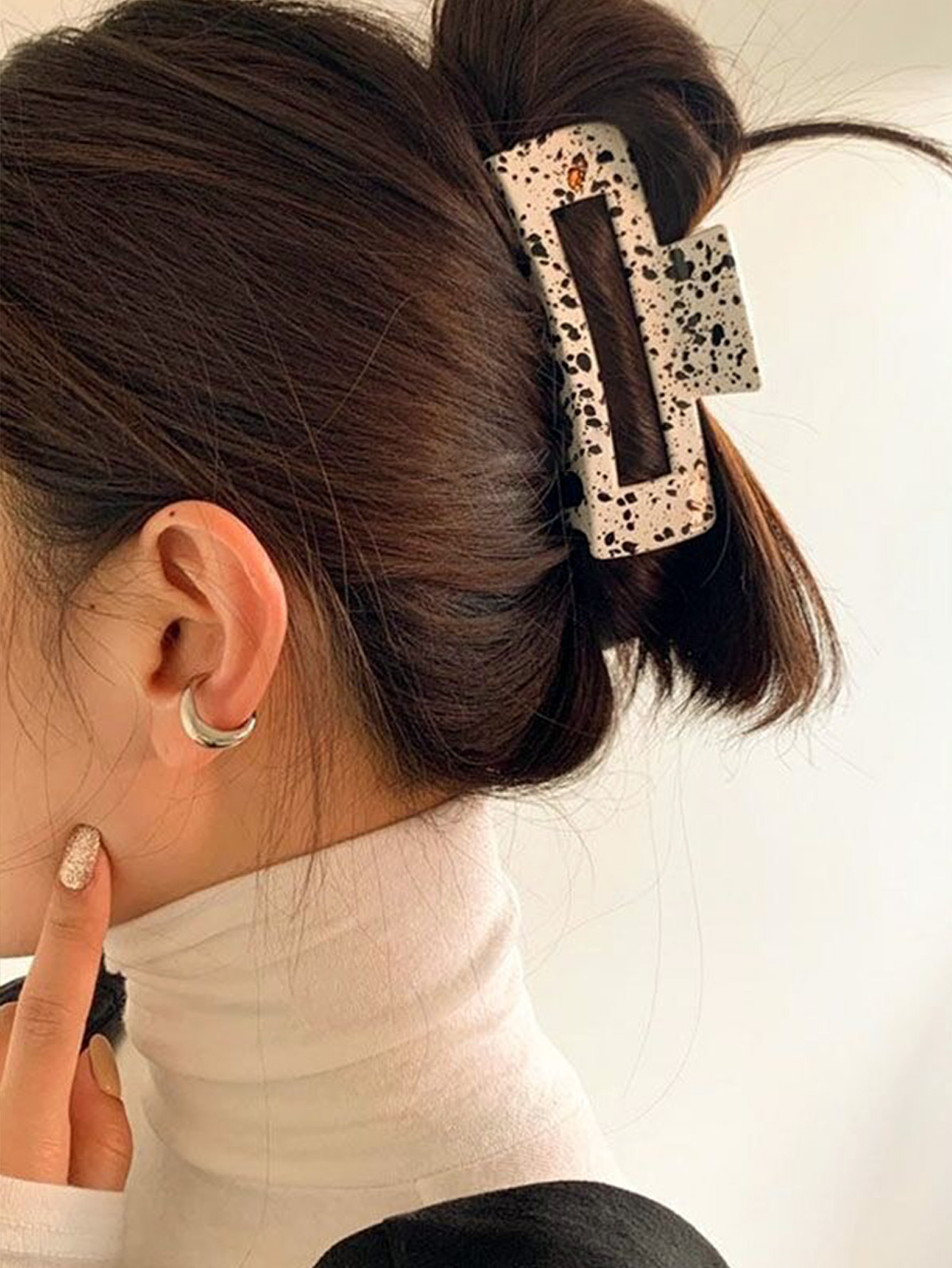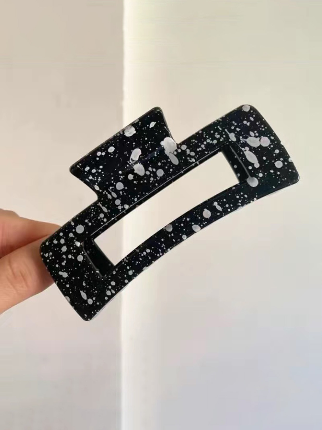 한국 블로거 흑백 스플래시 잉크 패턴 다크 브라운 흰색 레오파드 무늬 스퀘어 아세테이트 헤어 그립 상어 클립 여성 머리핀 국경 간 공급스토어 가기