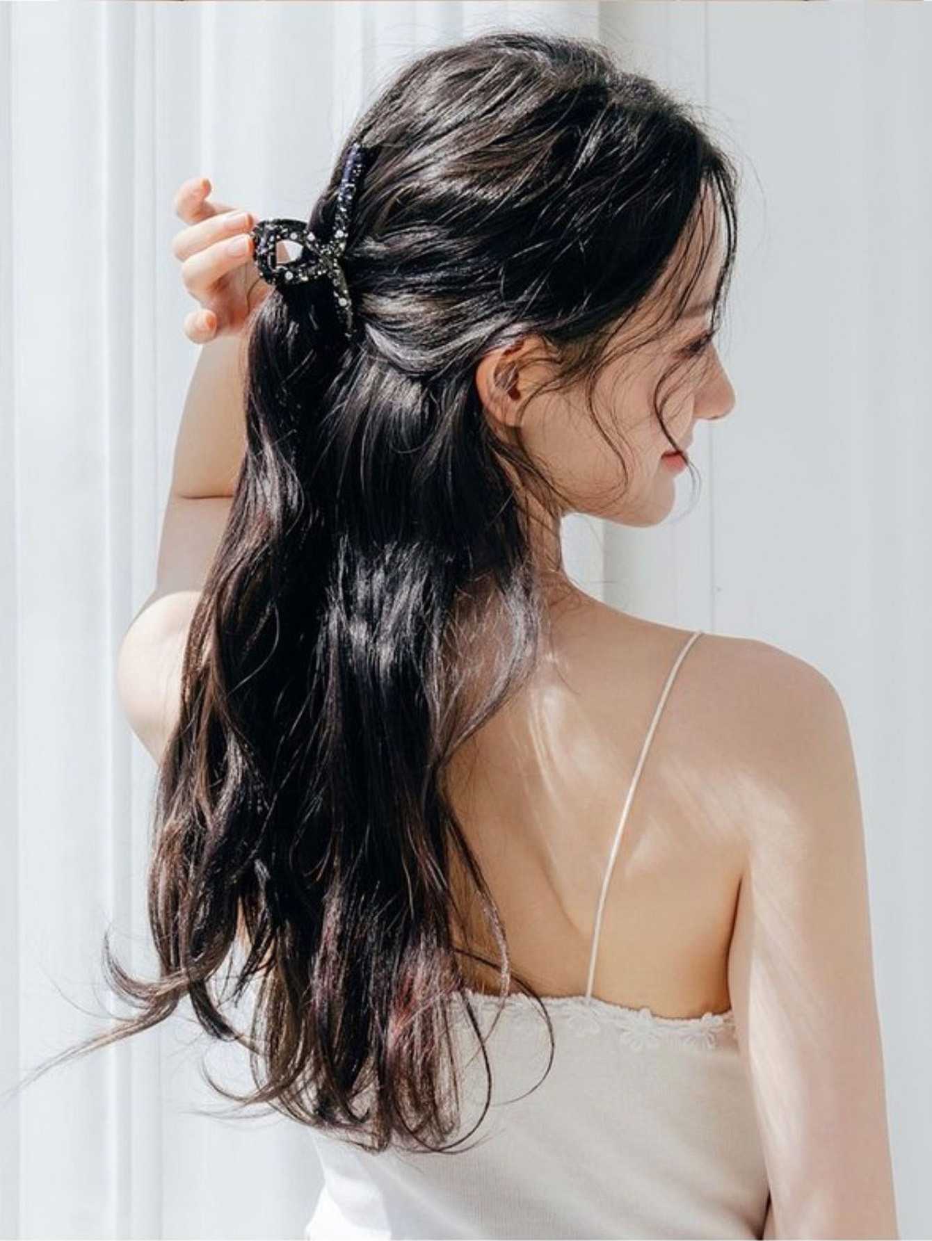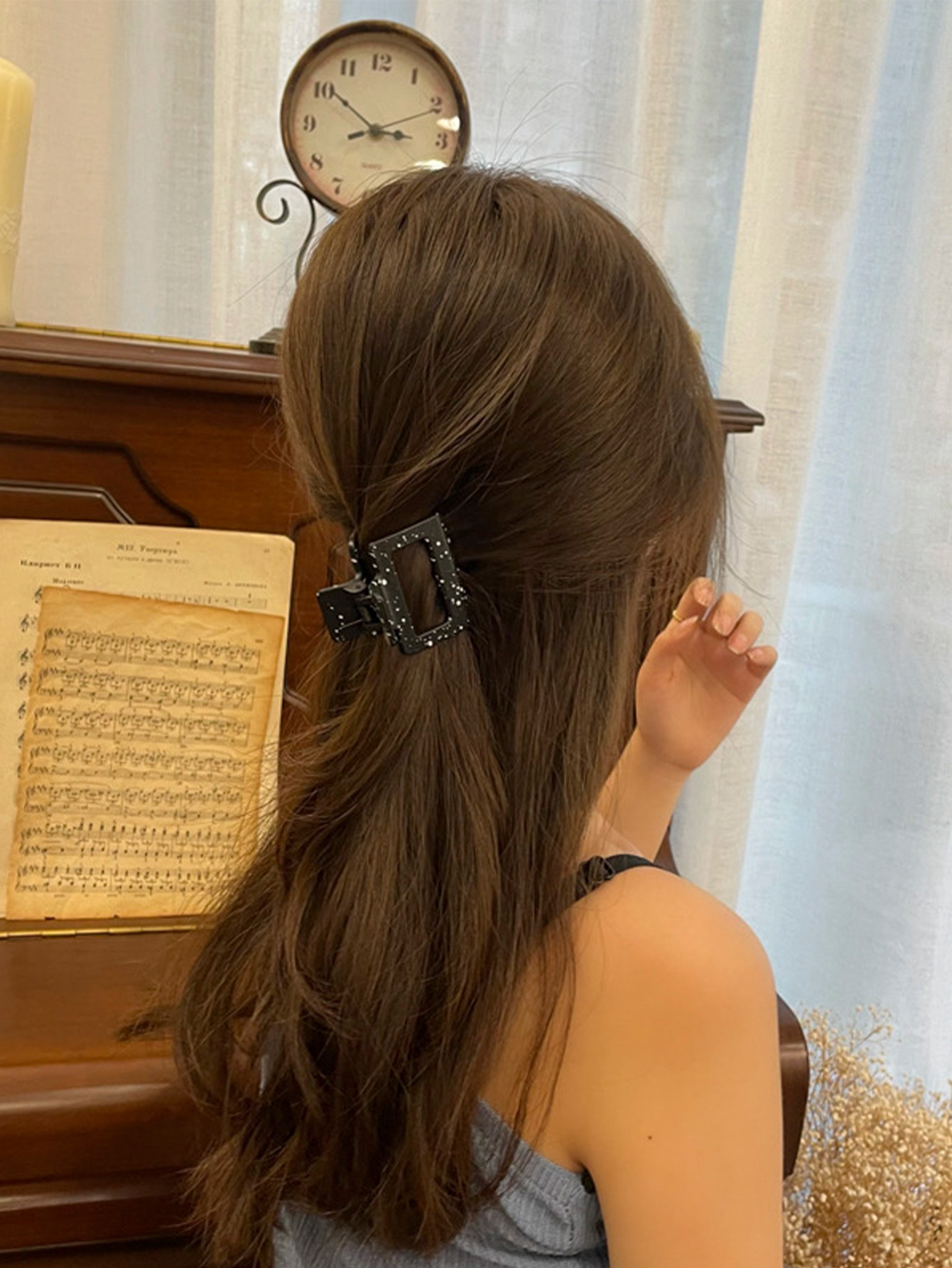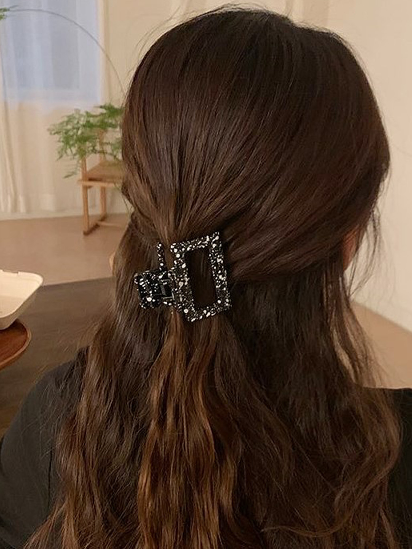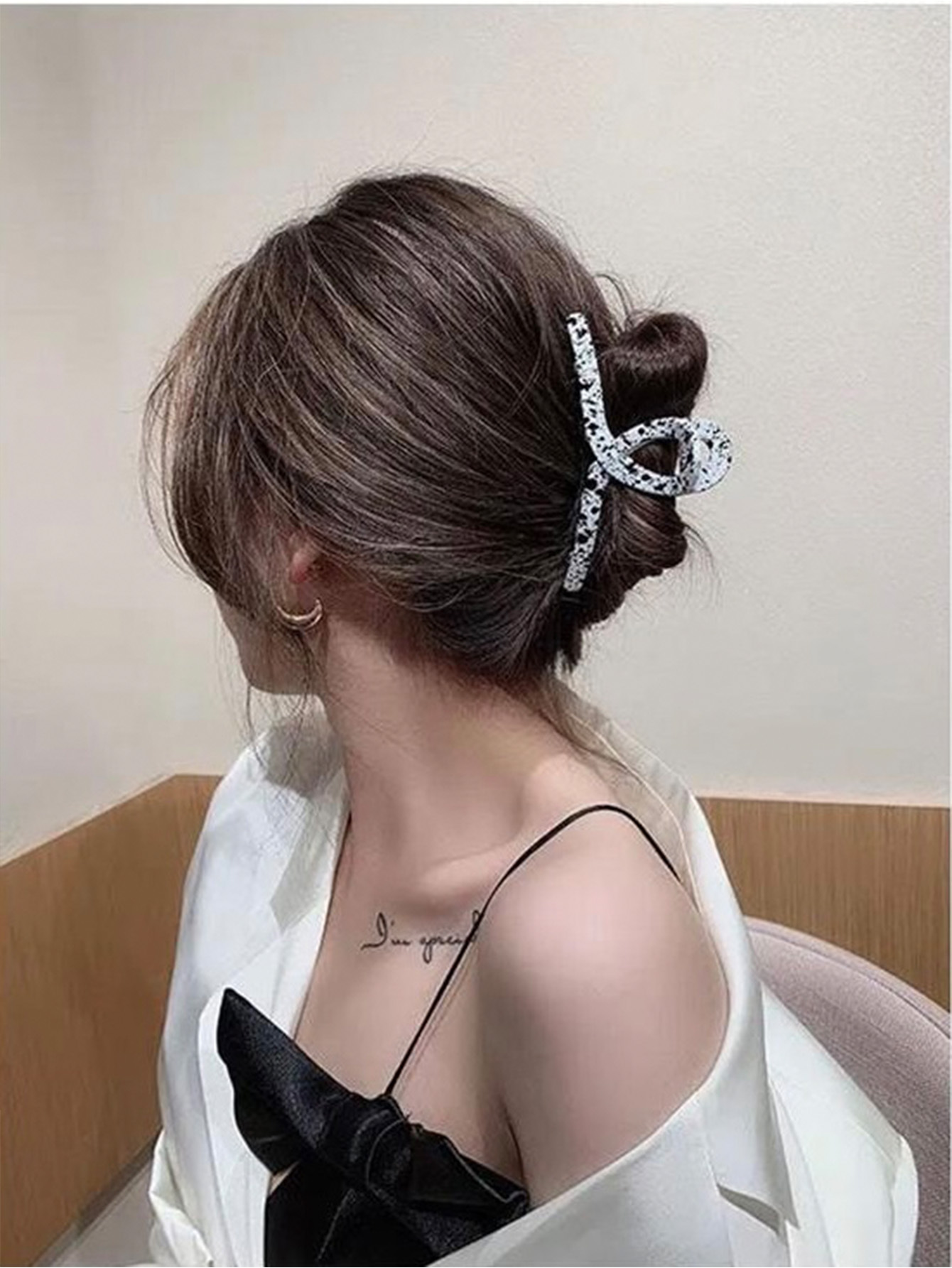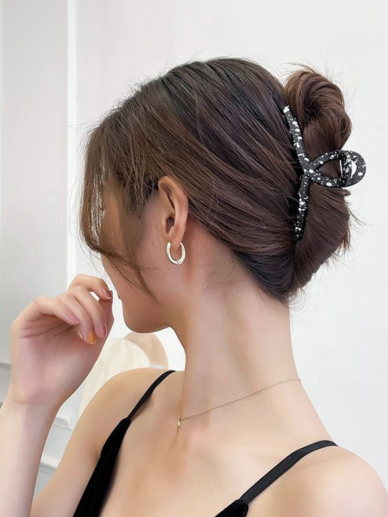 한국 블로거 흑백 스플래시 잉크 패턴 다크 브라운 흰색 레오파드 무늬 스퀘어 아세테이트 헤어 그립 상어 클립 여성 머리핀 국경 간 공급스토어 가기