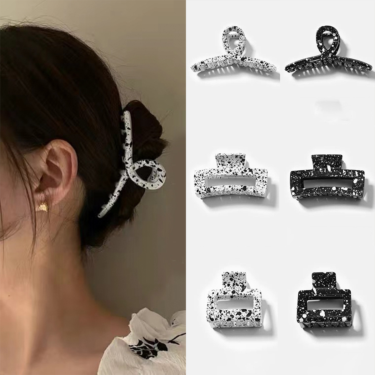 한국 블로거 흑백 스플래시 잉크 패턴 다크 브라운 흰색 레오파드 무늬 스퀘어 아세테이트 헤어 그립 상어 클립 여성 머리핀 국경 간 공급