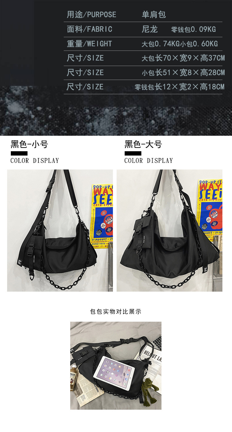 남녀 대용량 어깨 가방 홍콩 스타일 캐주얼 맞춤형 토트 백 툴링 블랙 유니섹스 남성 크로스 바디 백 대학생스토어 가기