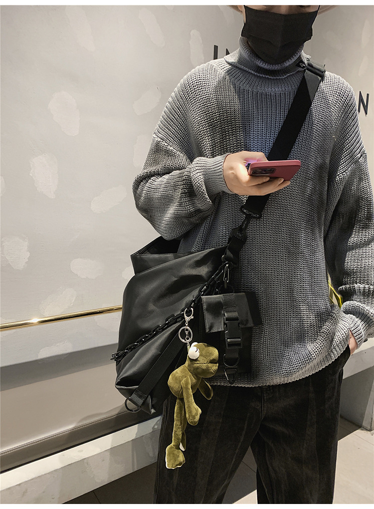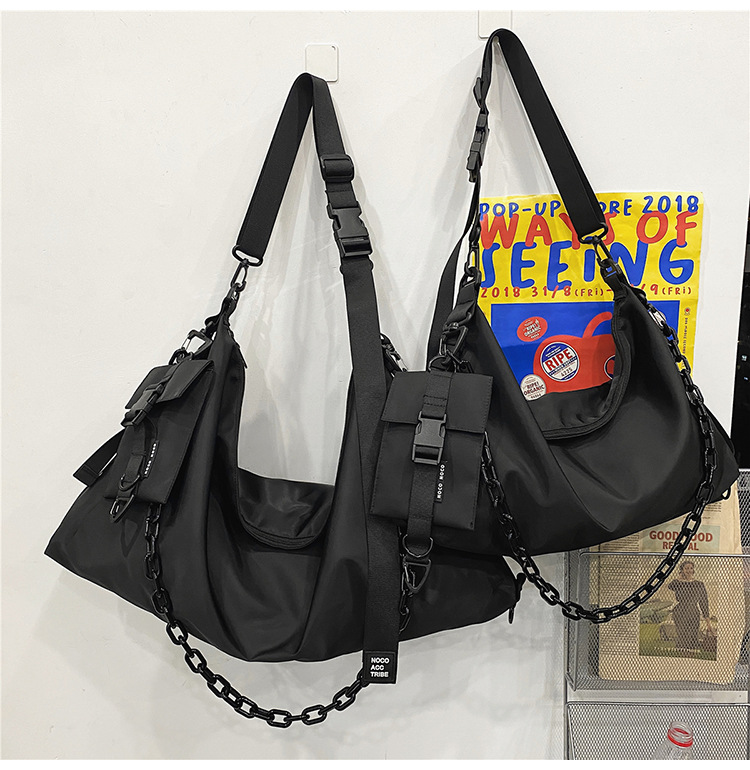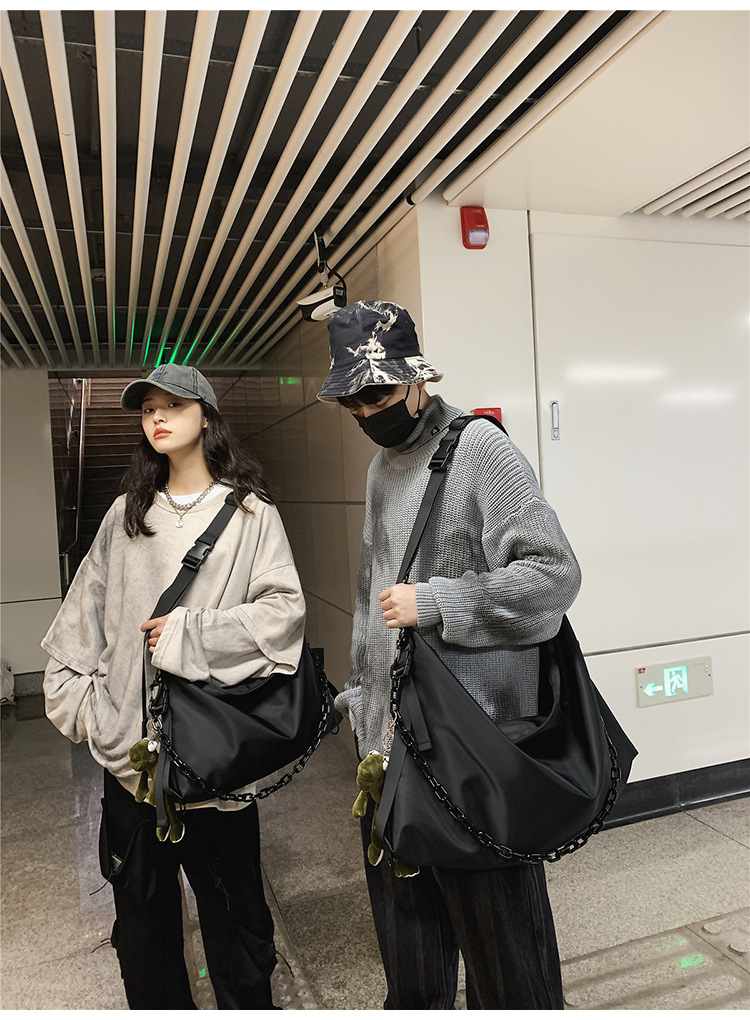 남녀 대용량 어깨 가방 홍콩 스타일 캐주얼 맞춤형 토트 백 툴링 블랙 유니섹스 남성 크로스 바디 백 대학생
