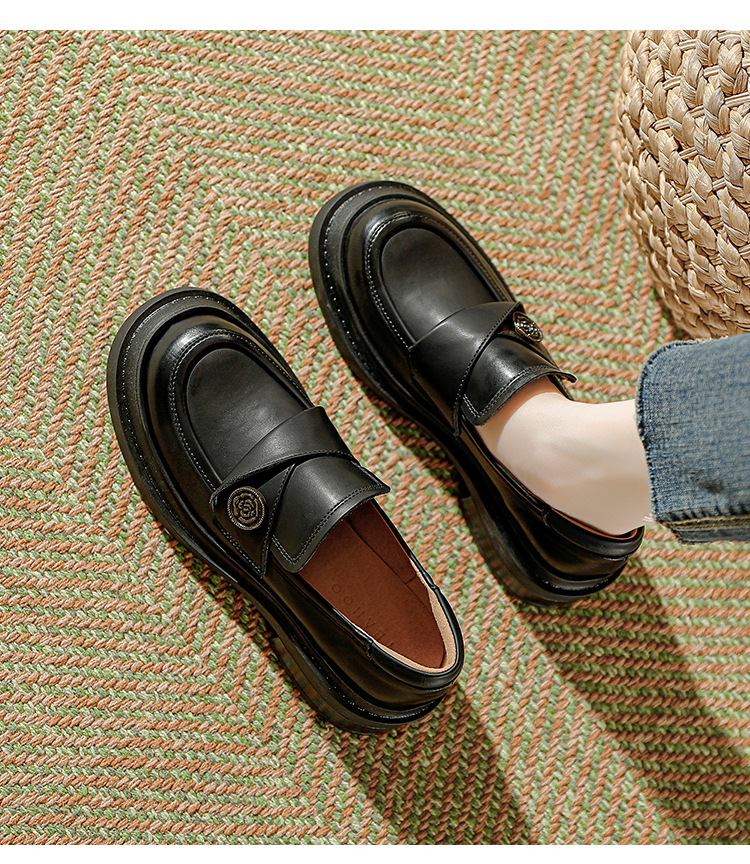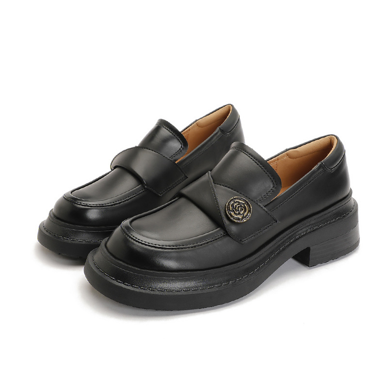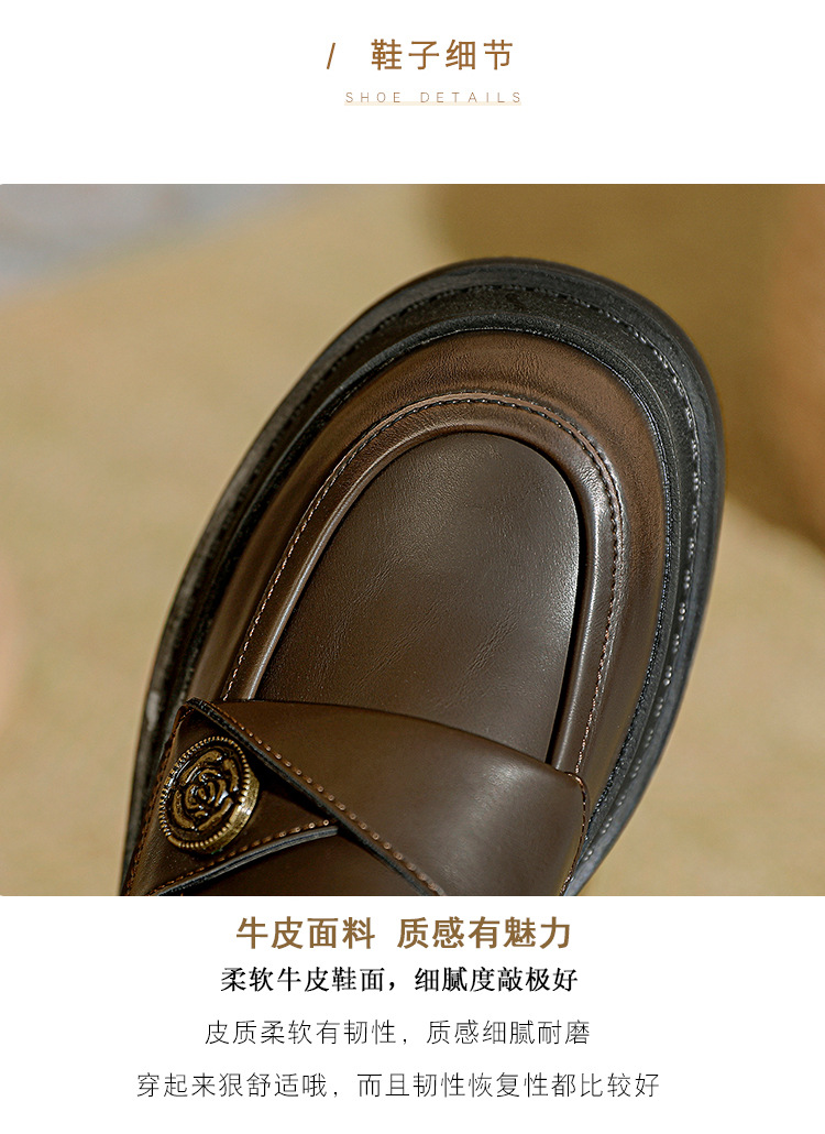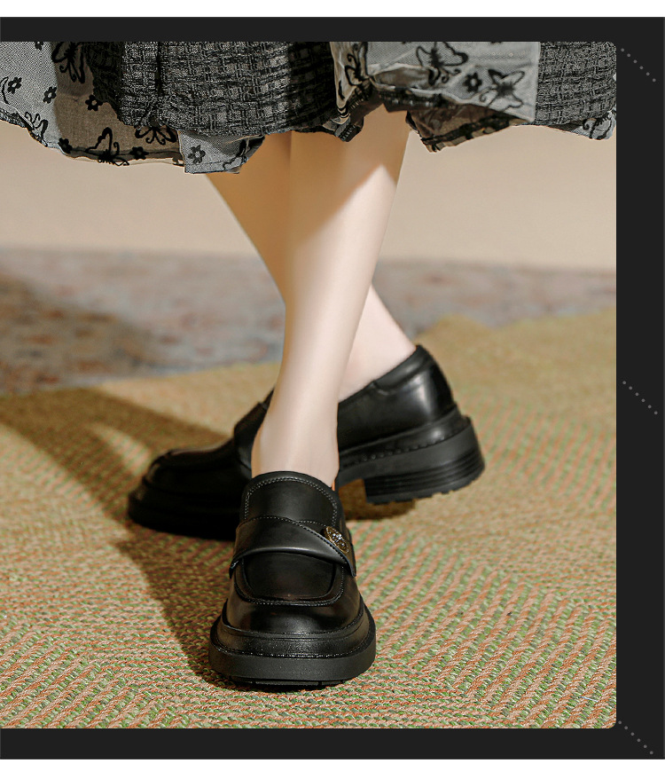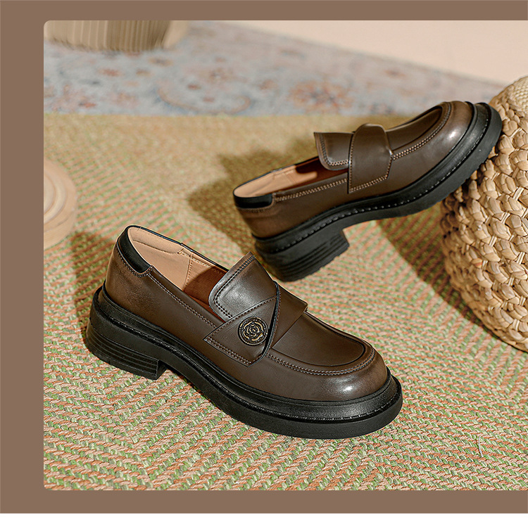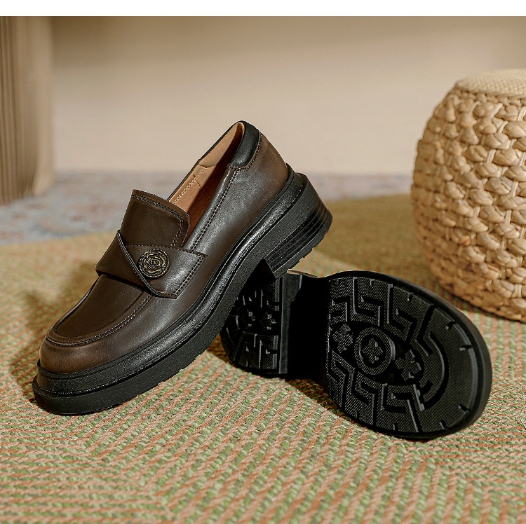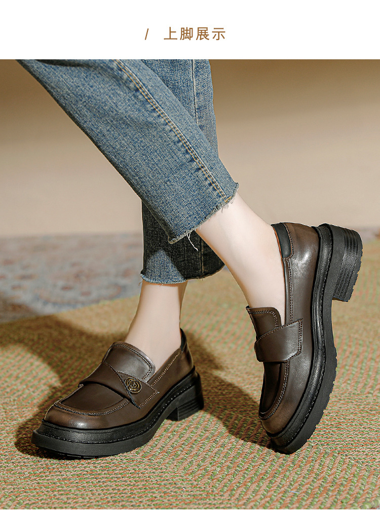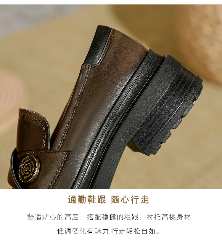 Su Yinyin 같은 스타일의 가죽 신발 2023 새로운 프랑스 로우 컷 싱글 레이어 신발 여성용 두꺼운 밑창 청키 힐 가죽 로퍼스토어 가기