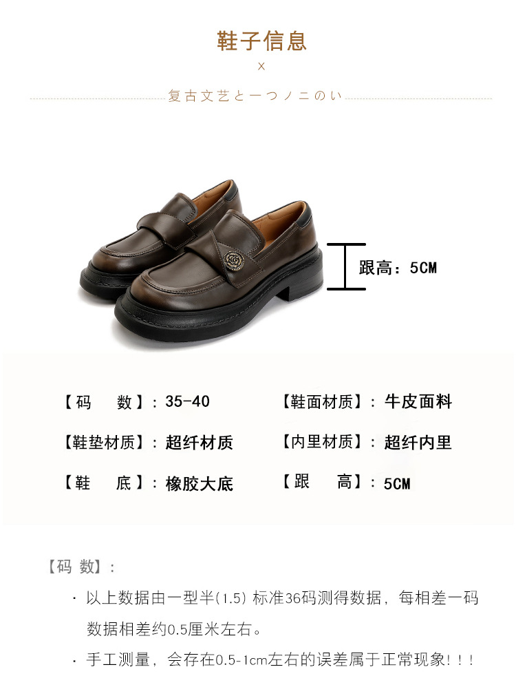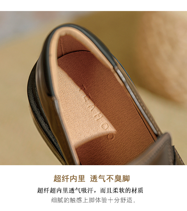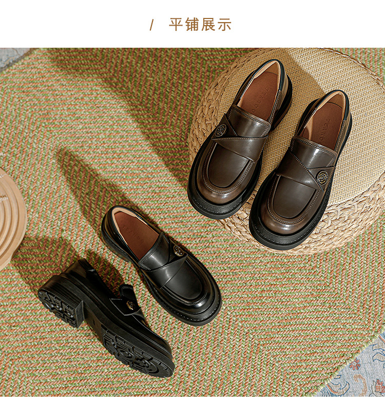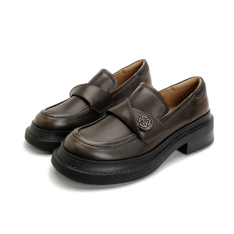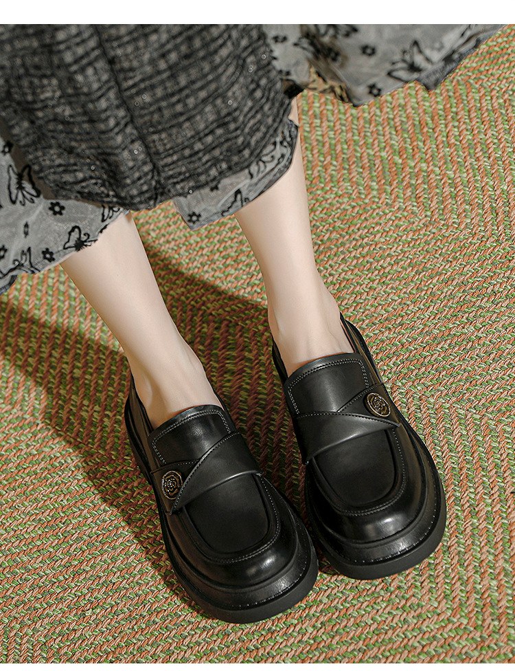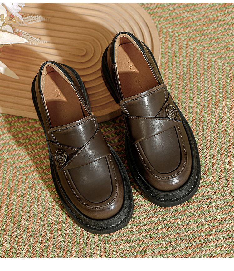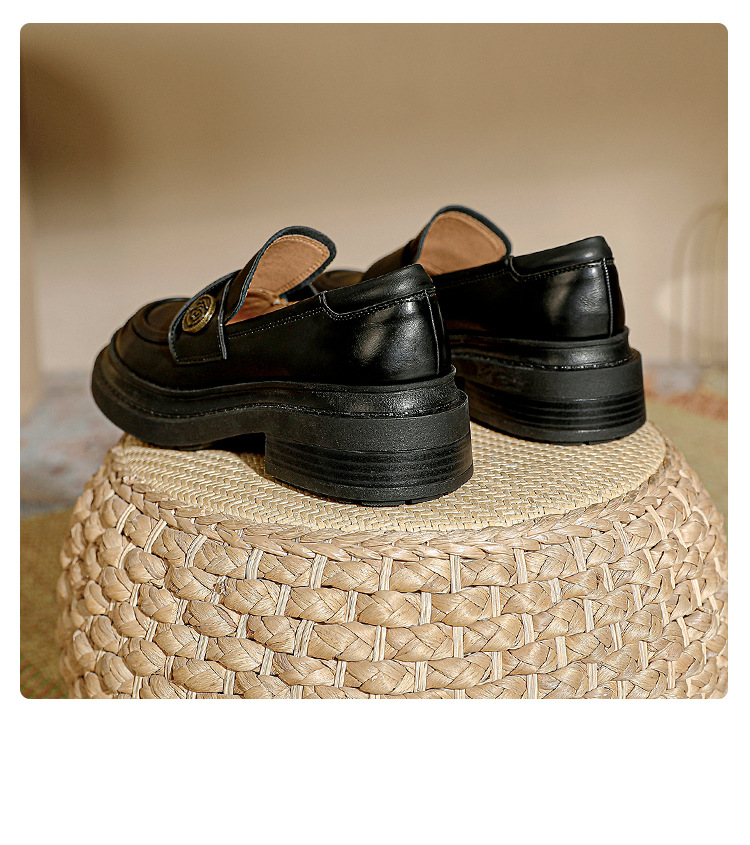 Su Yinyin 같은 스타일의 가죽 신발 2023 새로운 프랑스 로우 컷 싱글 레이어 신발 여성용 두꺼운 밑창 청키 힐 가죽 로퍼스토어 가기