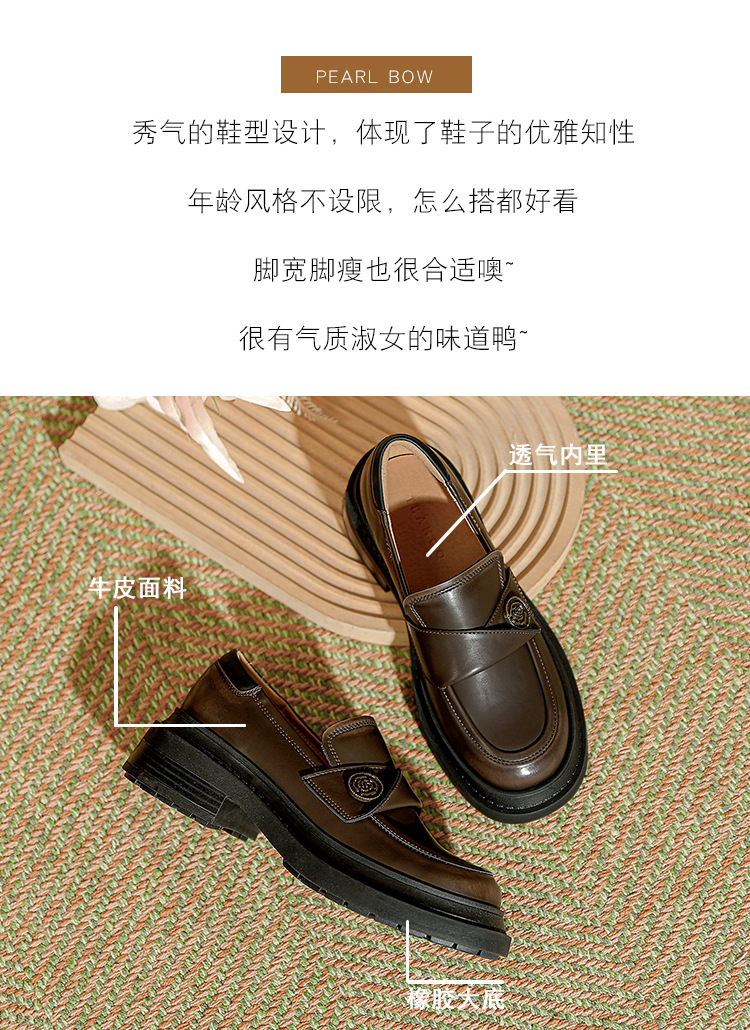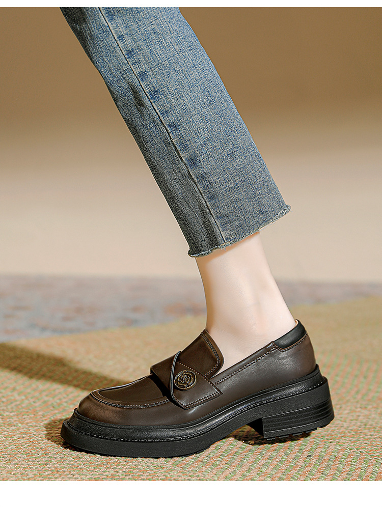 Su Yinyin 같은 스타일의 가죽 신발 2023 새로운 프랑스 로우 컷 싱글 레이어 신발 여성용 두꺼운 밑창 청키 힐 가죽 로퍼