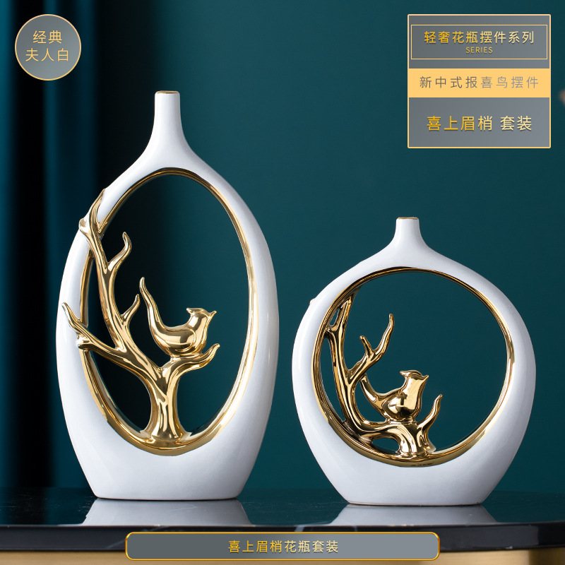 가벼운 고급 세라믹 장식 꽃병 바탕 화면 거실 와인 캐비닛 TV 중국 창조적 인 간단한 현대 동물 새 장식