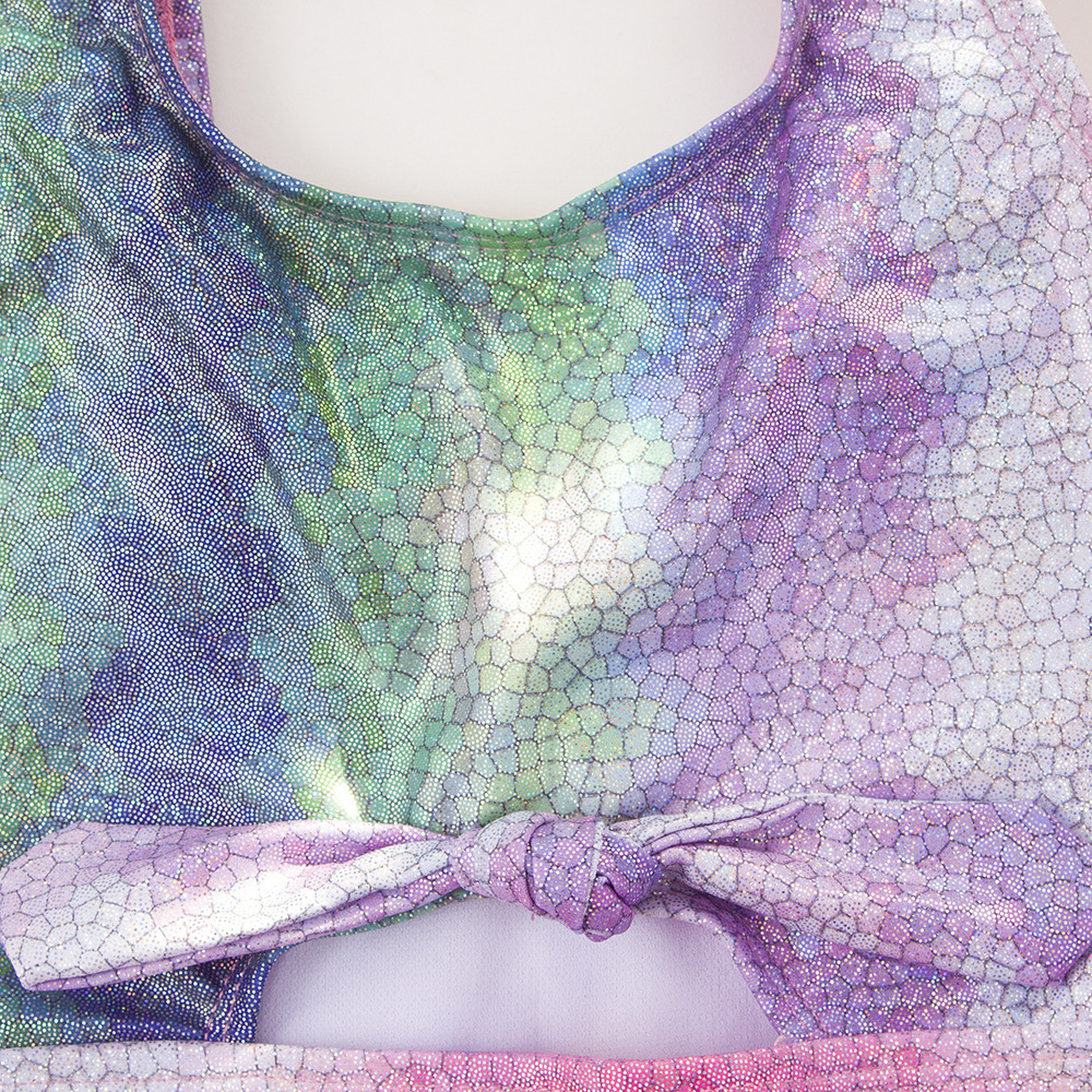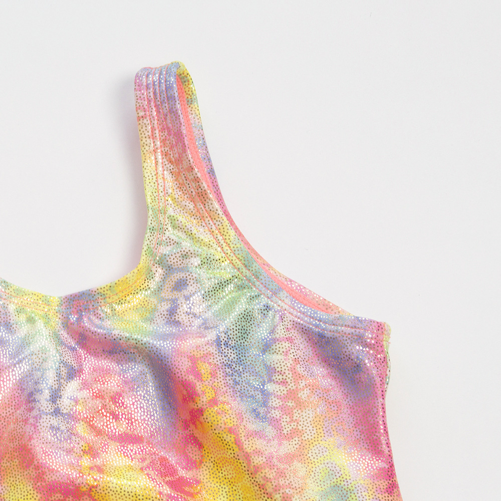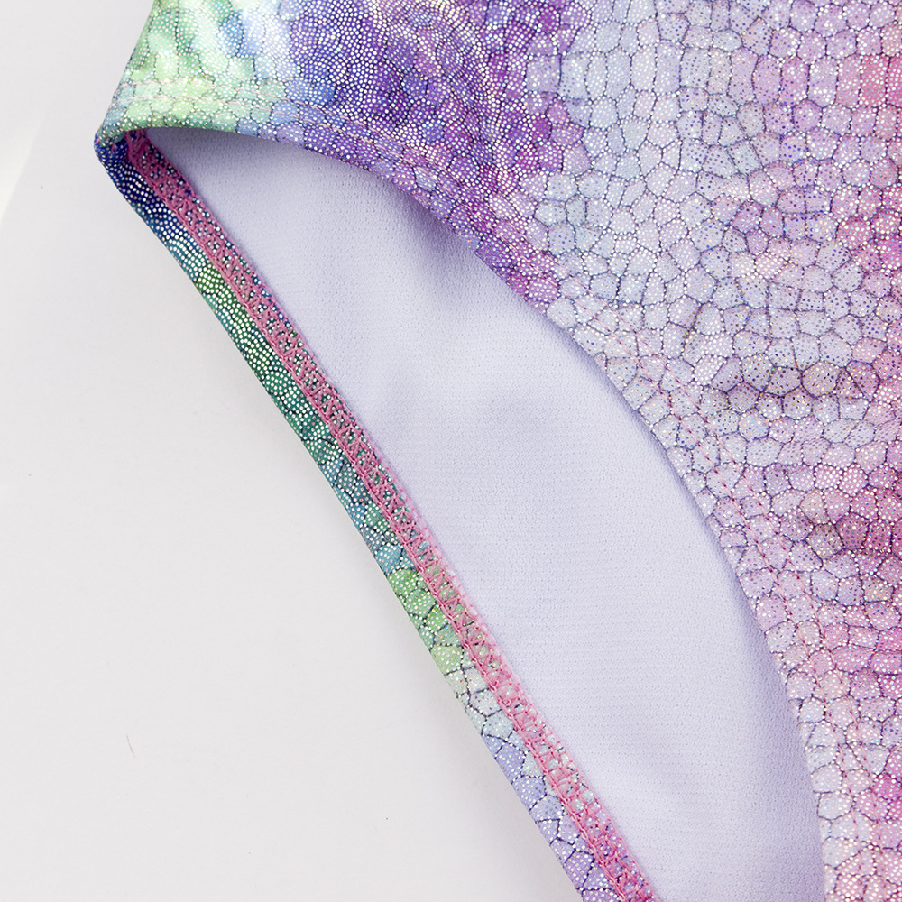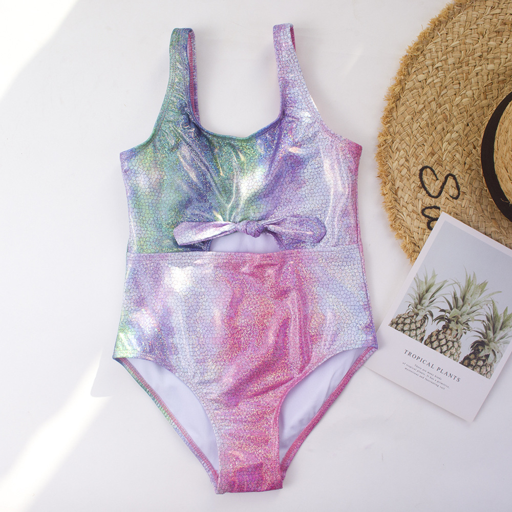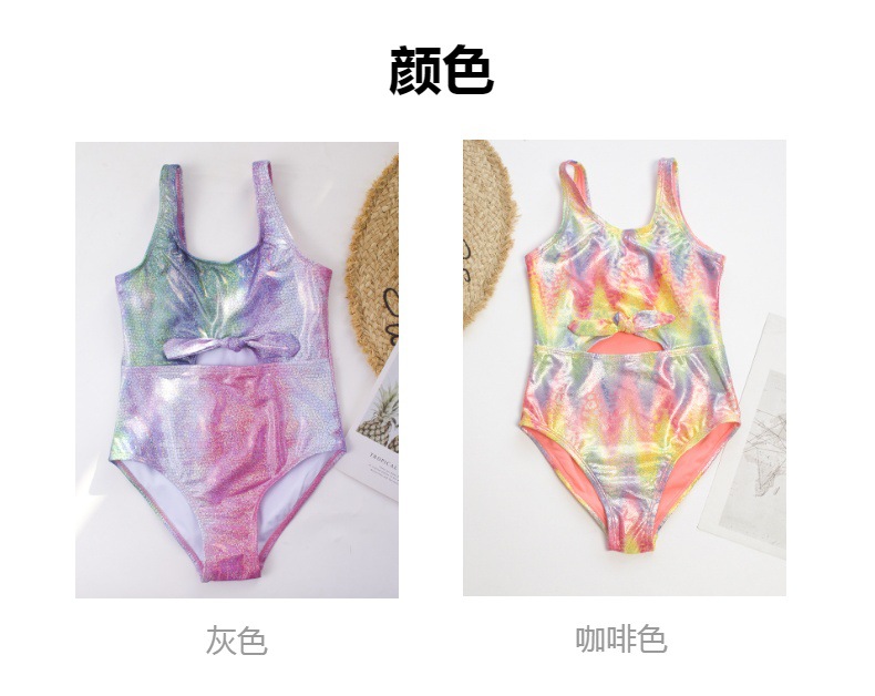유럽과 미국 소녀의 원피스 수영복 그라디언트 줄무늬 무지개 청동 스티칭 어린이 수영복 아마존 새 405
