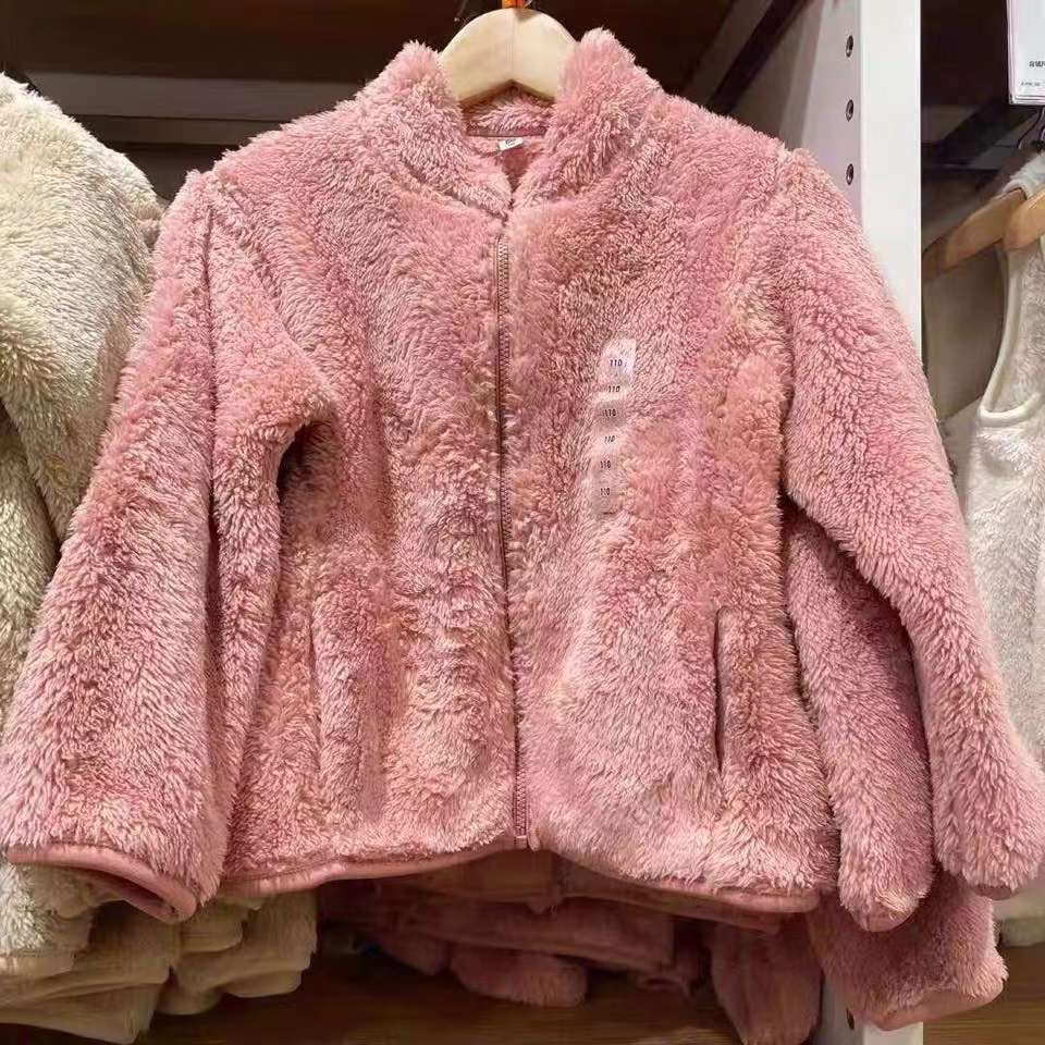 일본 아동복 남아 여아용 롱폴리스 플리스 지퍼 재킷 플러시 코트 겨울용 449887