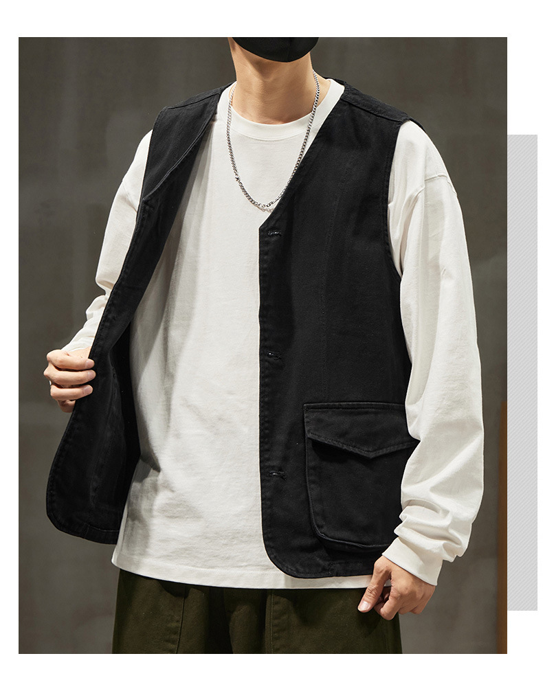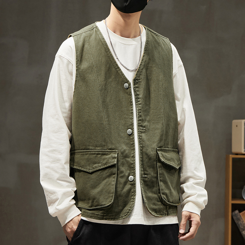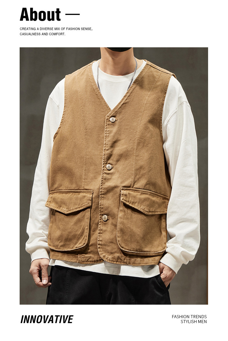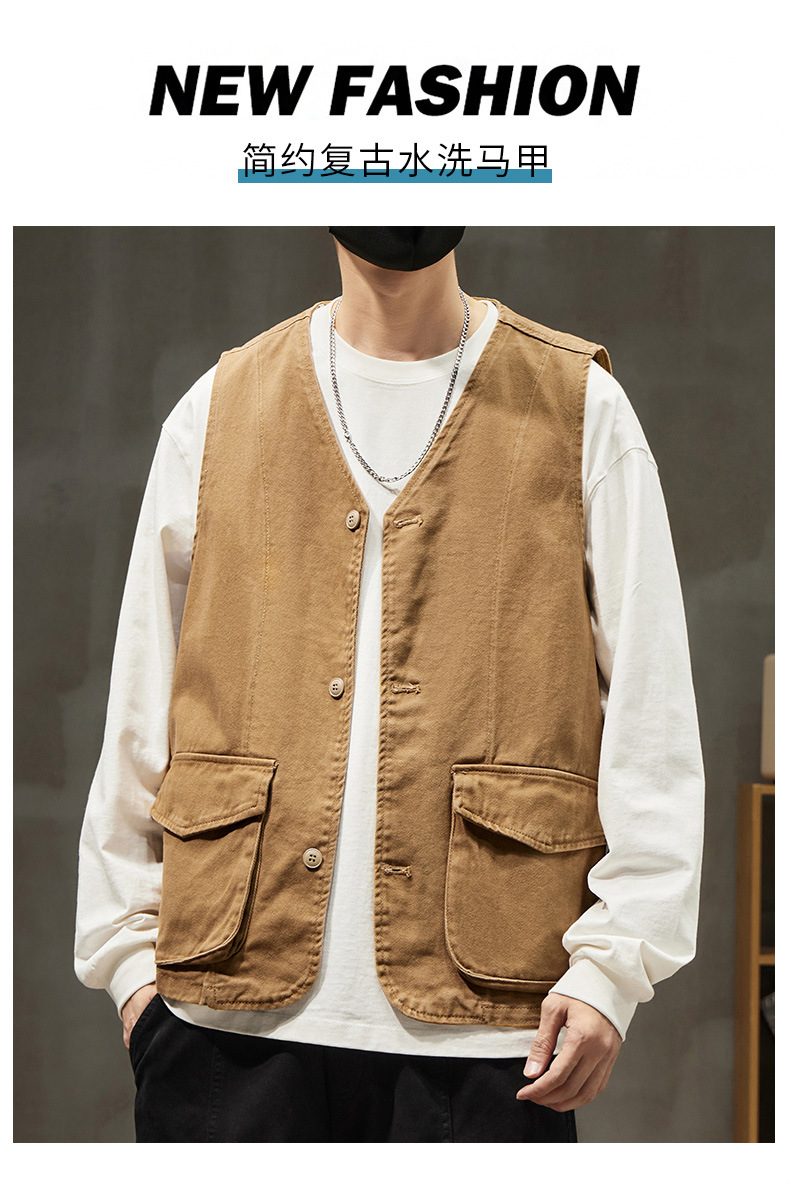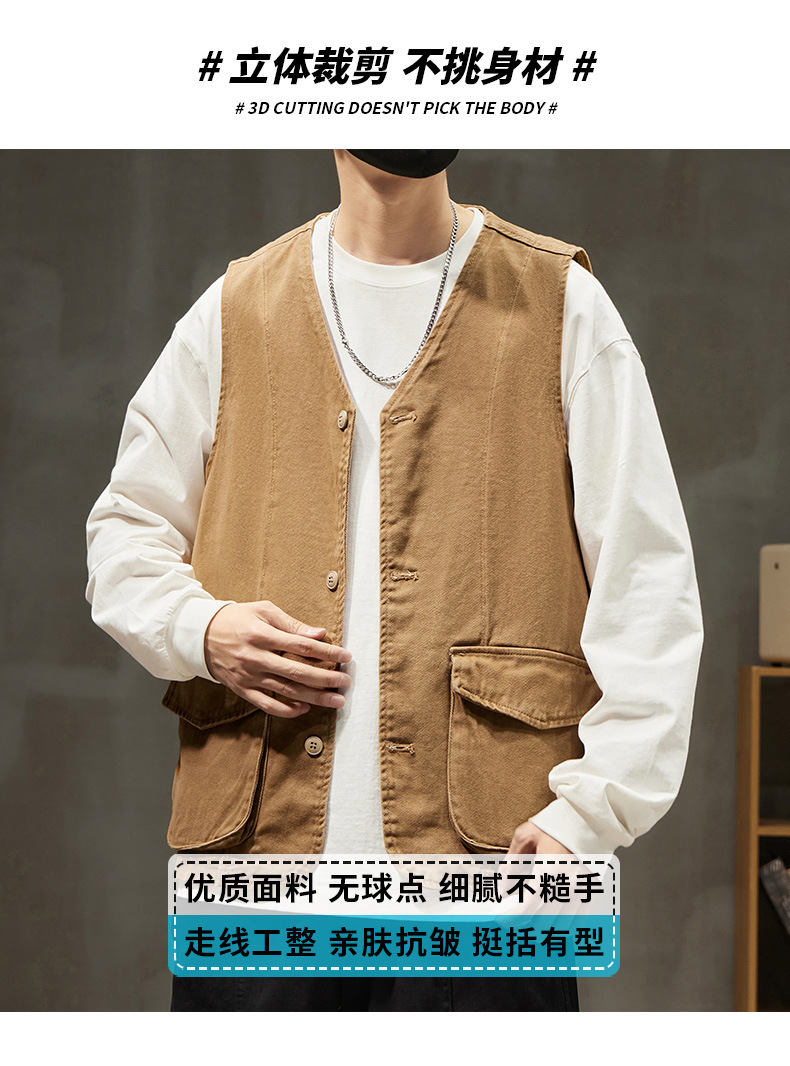 가을 하이 스트리트 아메리칸 스타일 올 매치 레트로 일본 데님 재킷 남성 패션 브랜드 맞춤형 캐주얼 조끼 남성스토어 가기