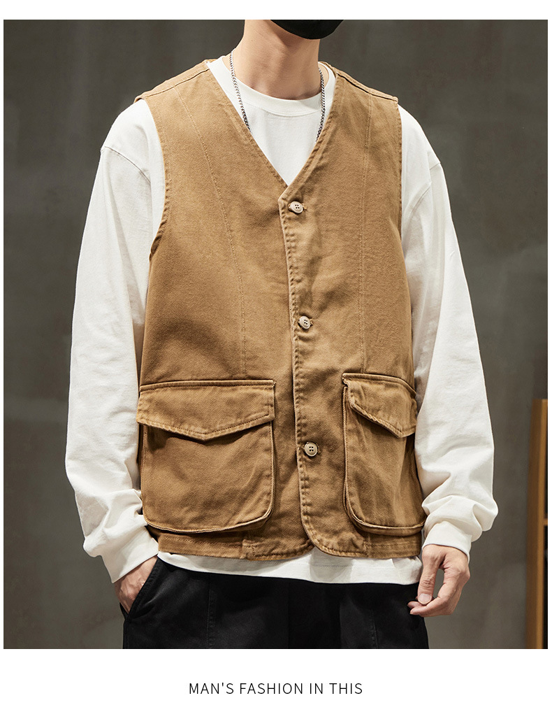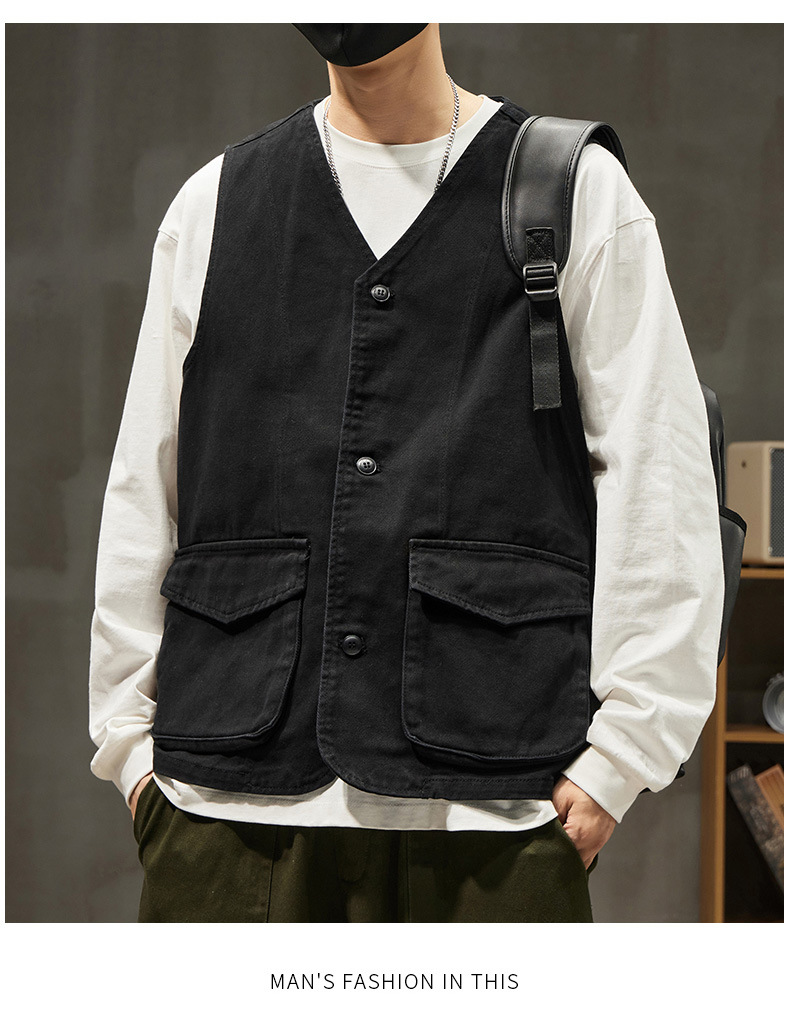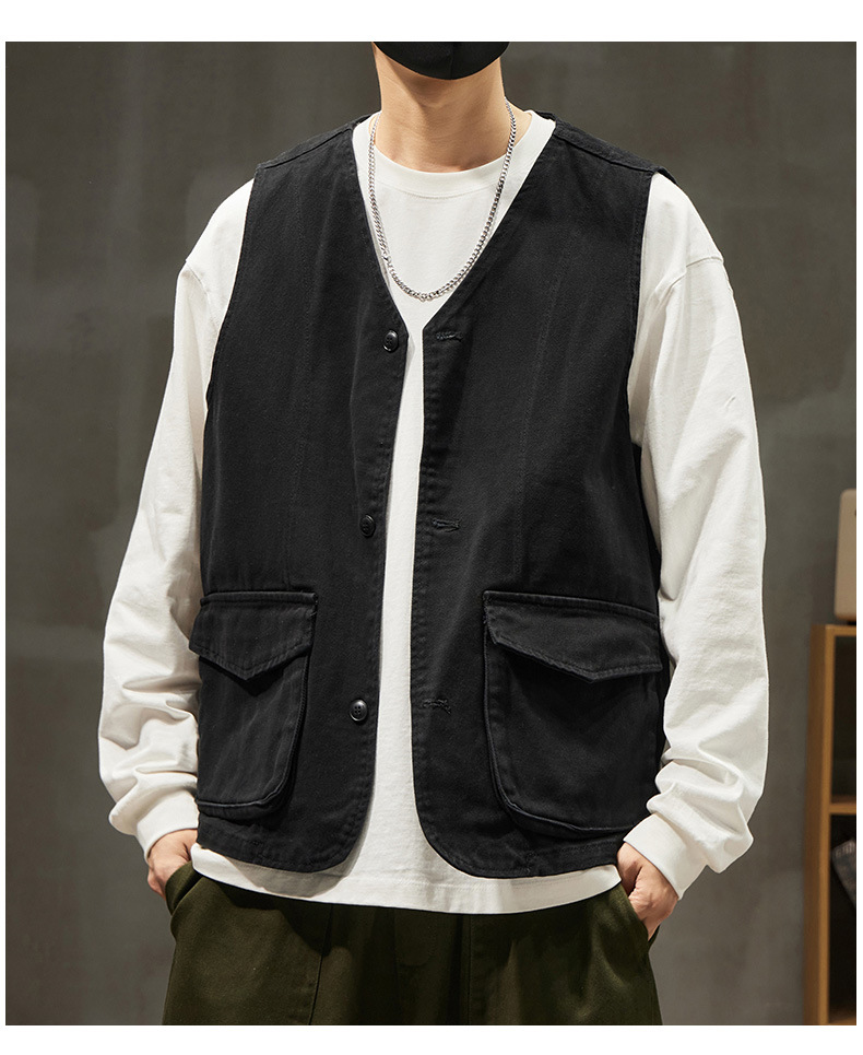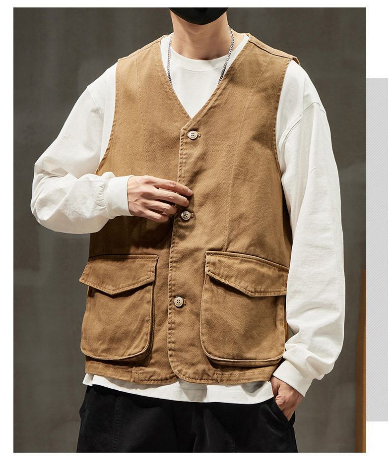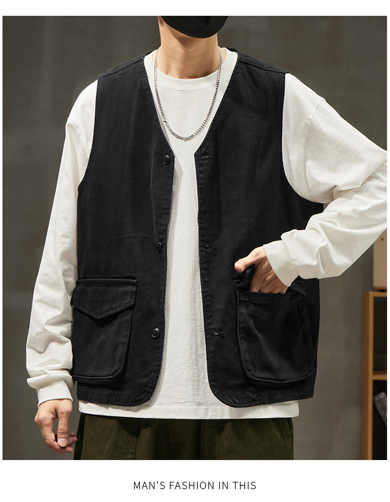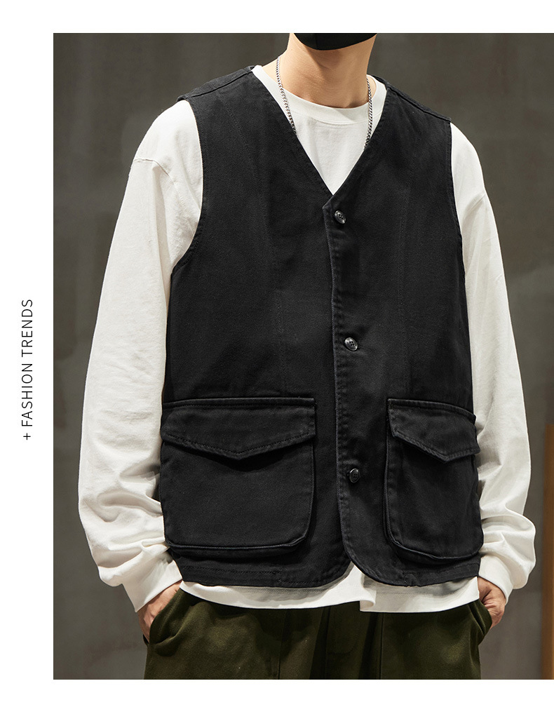 가을 하이 스트리트 아메리칸 스타일 올 매치 레트로 일본 데님 재킷 남성 패션 브랜드 맞춤형 캐주얼 조끼 남성스토어 가기
