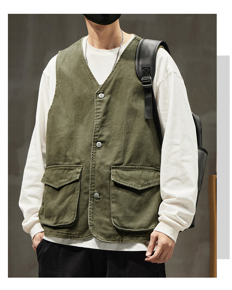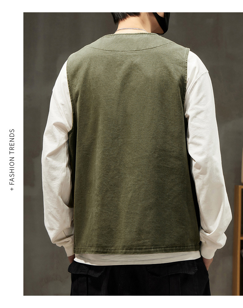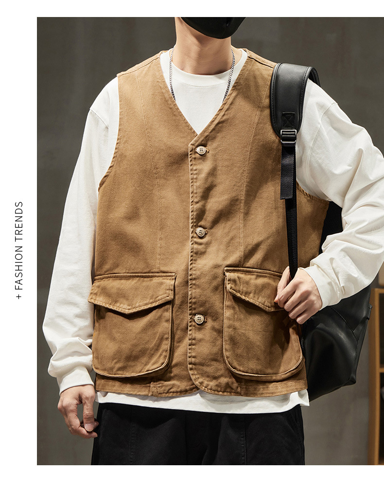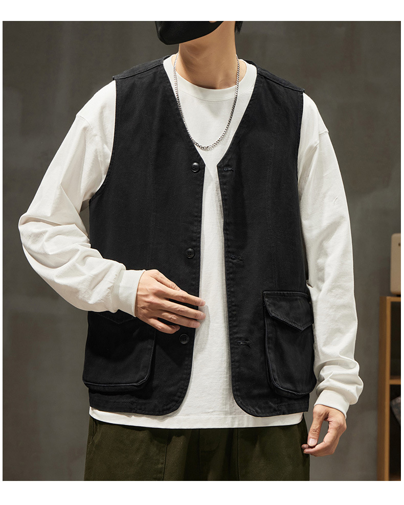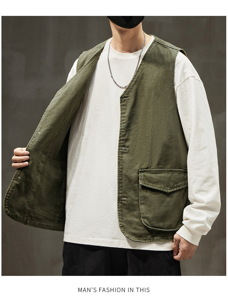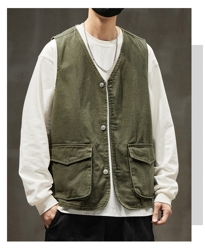 가을 하이 스트리트 아메리칸 스타일 올 매치 레트로 일본 데님 재킷 남성 패션 브랜드 맞춤형 캐주얼 조끼 남성스토어 가기