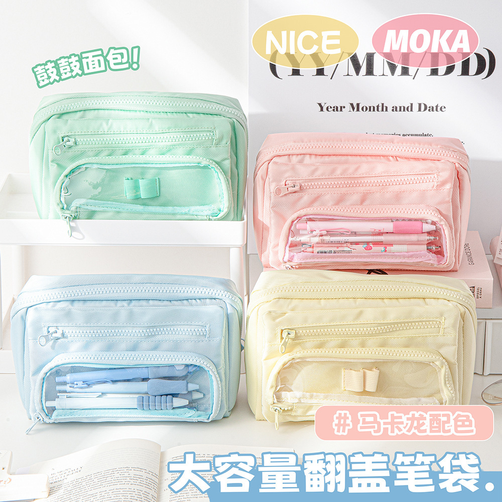 간단한 연필 케이스 대용량 문구 상자 높은 모양의 마카롱 저장 구획 저장 가방 상품 도매스토어 가기