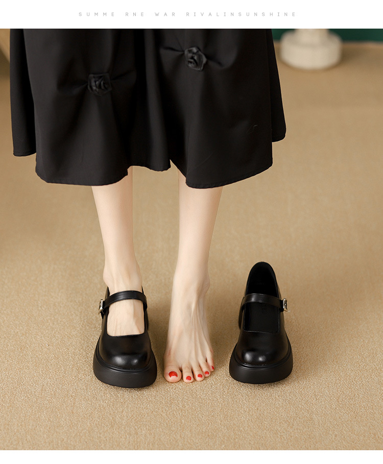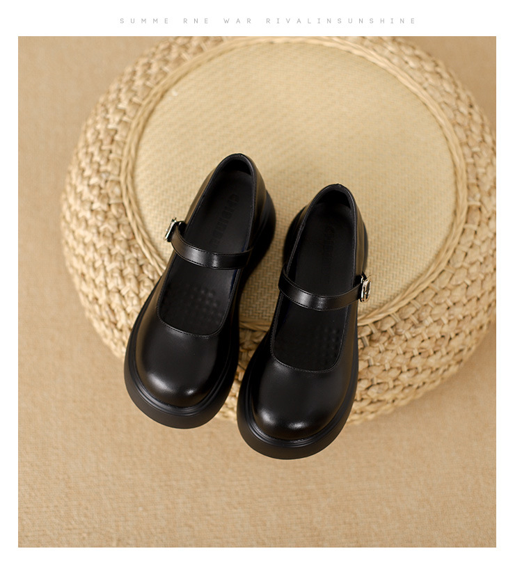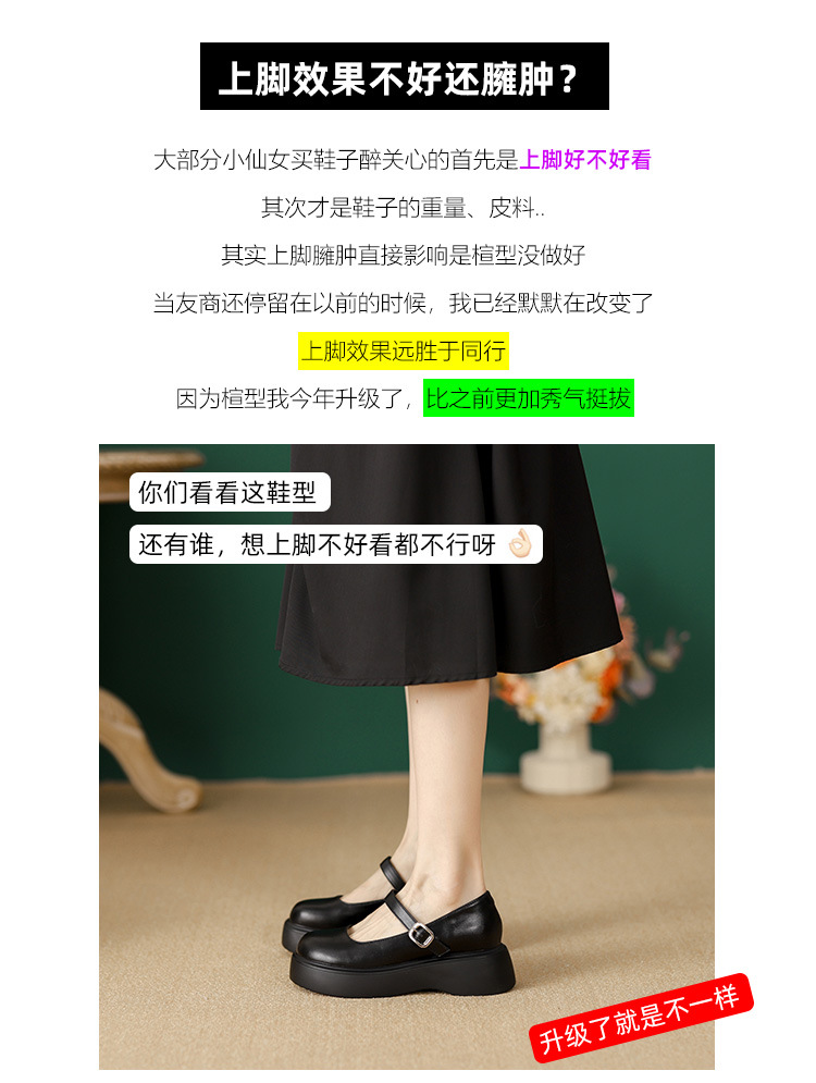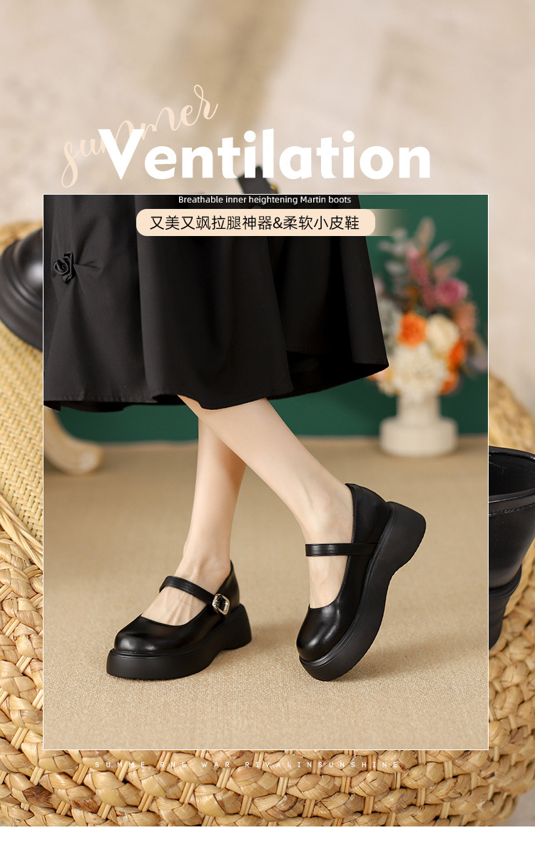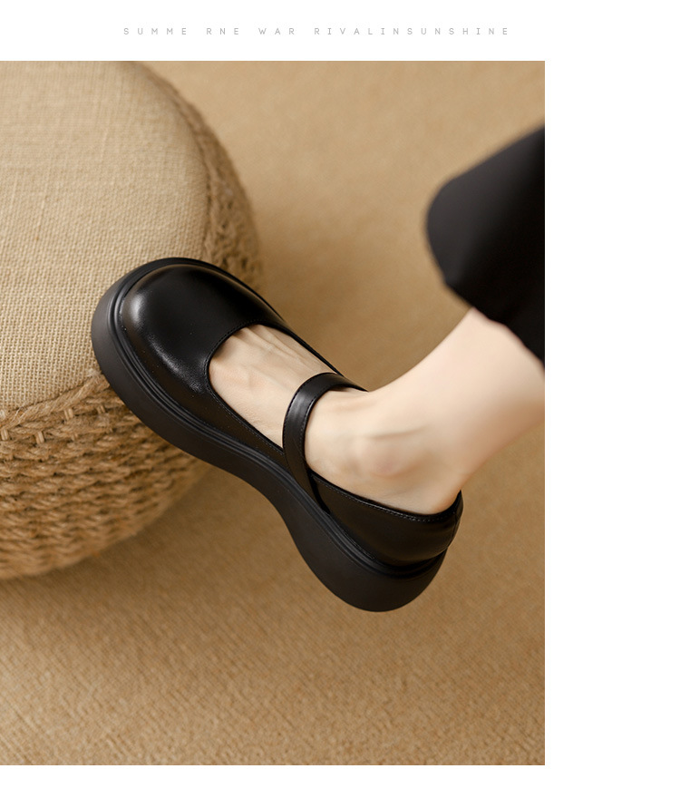 여성의 숨겨진 힐 가죽 신발 2023 여름 새로운 스타일의 작은 두꺼운 밑창 로퍼 로우 컷 청키 힐 달콤한 시원한 메리 제인 신발스토어 가기
