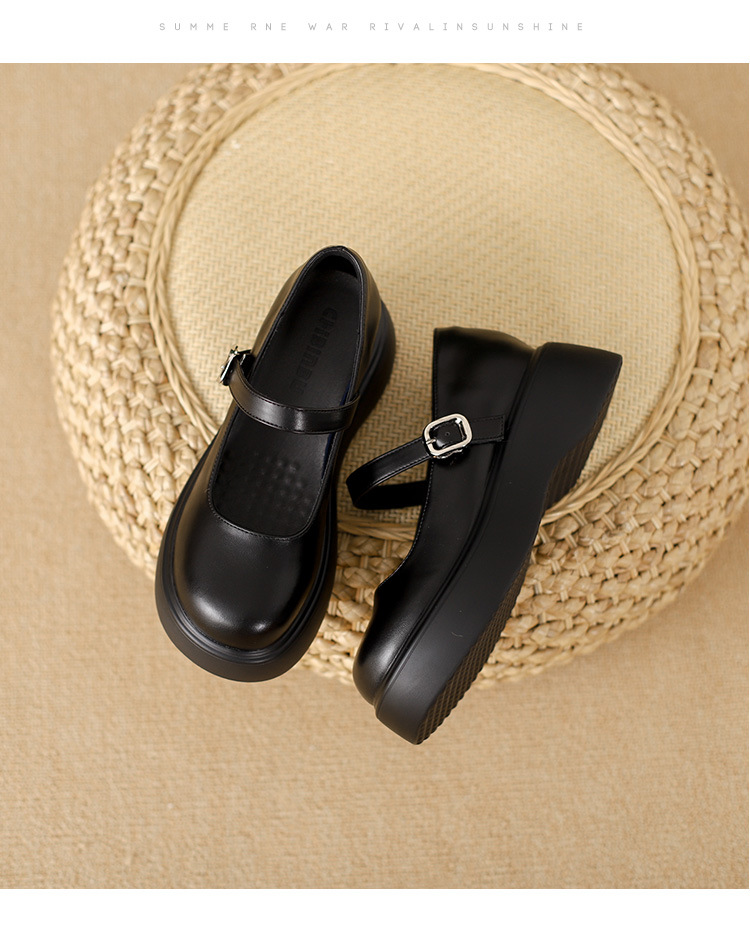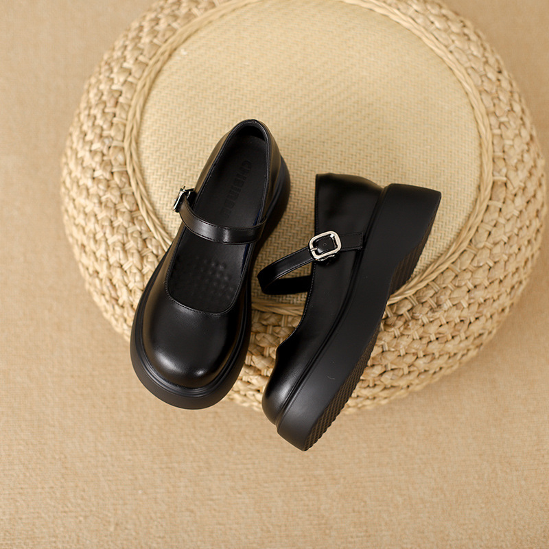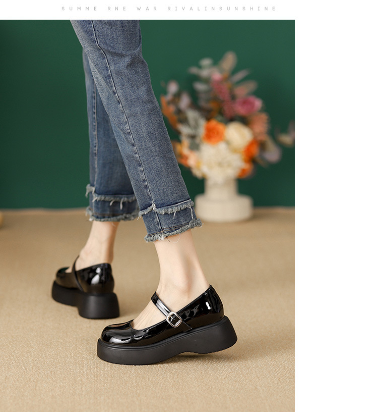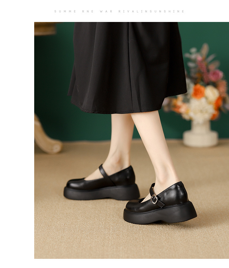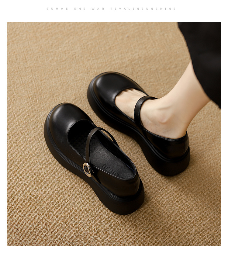 여성의 숨겨진 힐 가죽 신발 2023 여름 새로운 스타일의 작은 두꺼운 밑창 로퍼 로우 컷 청키 힐 달콤한 시원한 메리 제인 신발스토어 가기