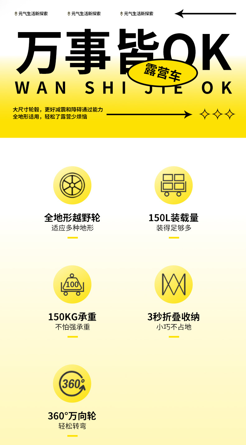 8 인치 캠핑 카 푸시 업 캠프 자동차 야외 접이식 트롤리 휴대용 피크닉 자동차 트레일러 트롤리스토어 가기
