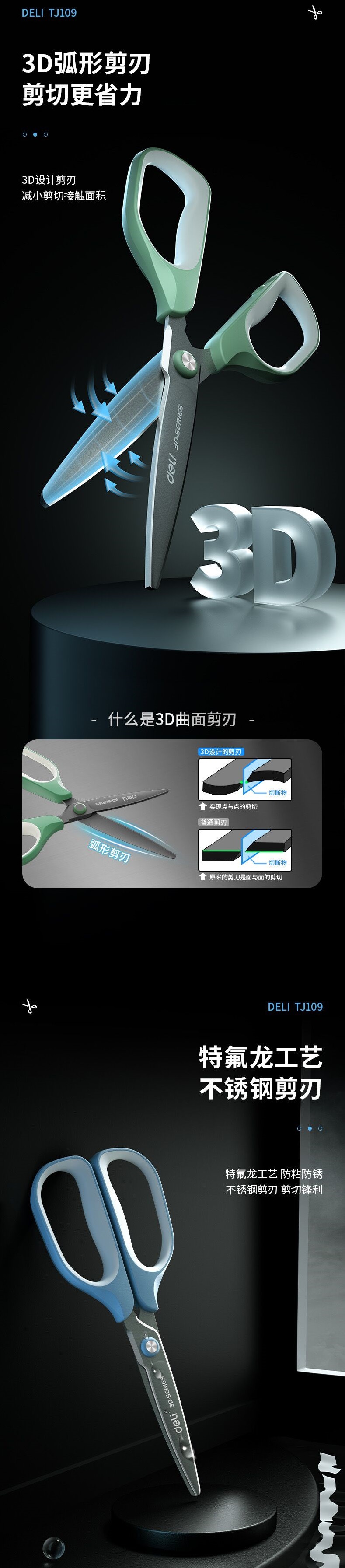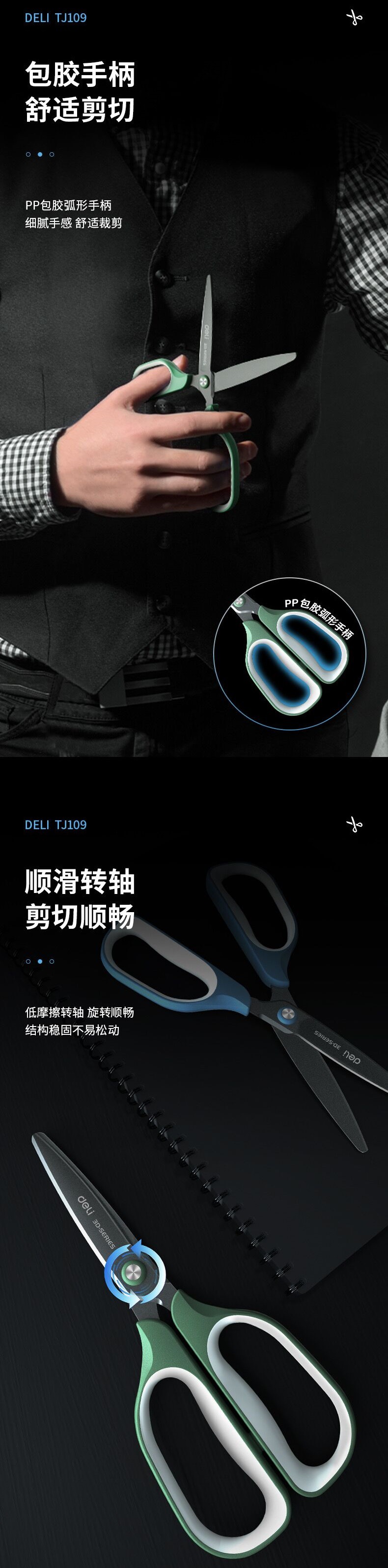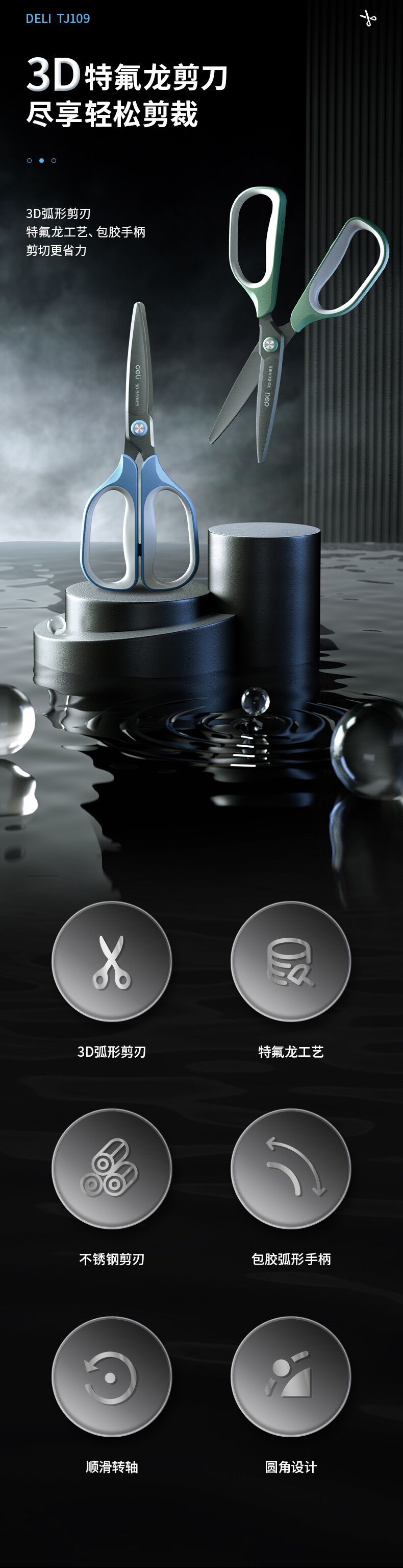 델리 TJ109 테플론 소재 스틱 스테인레스 스틸 가위 175mm 길이 사무실 주방 가위