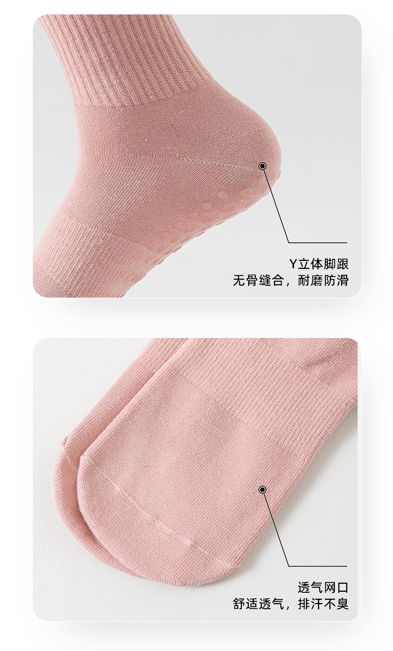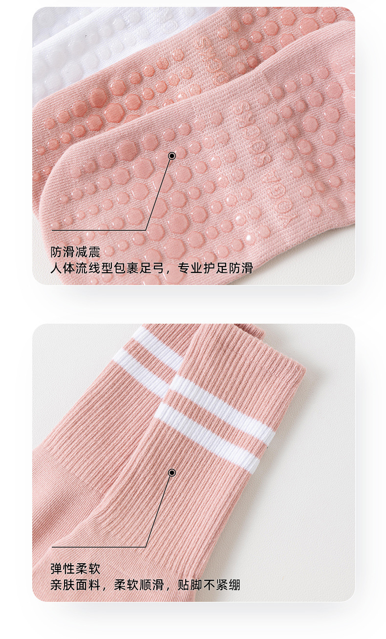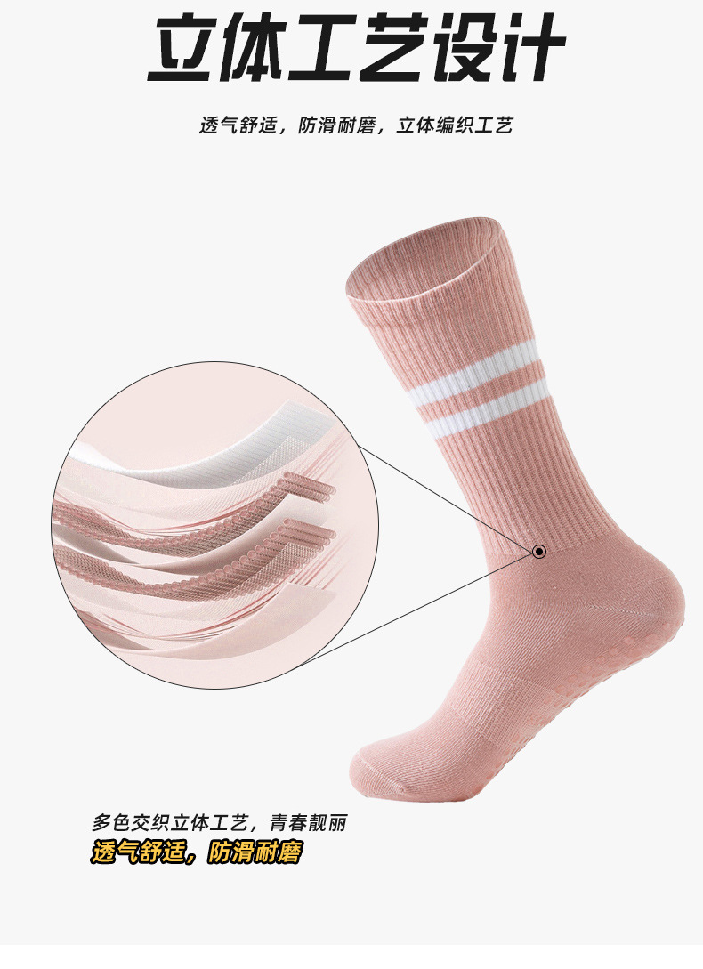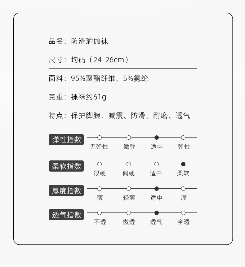 本公司瑜伽袜采用168N机器织造,更厚实、弹力更舒适,不勒脚,袜筒加高,更适合搭配瑜伽裤、鲨鱼裤、芭比裤。