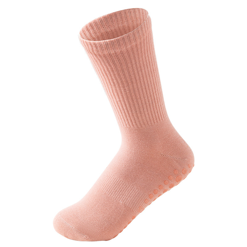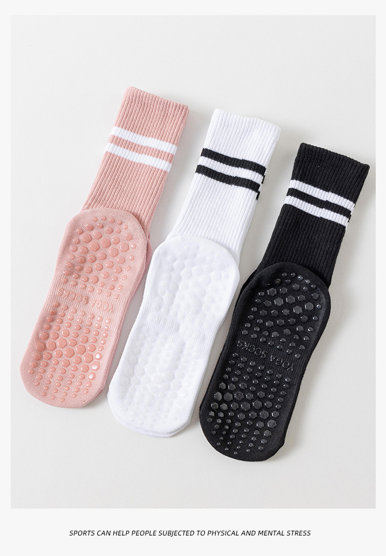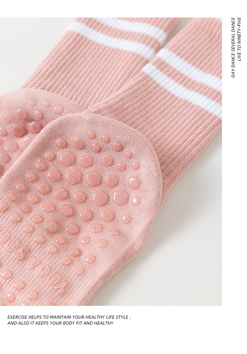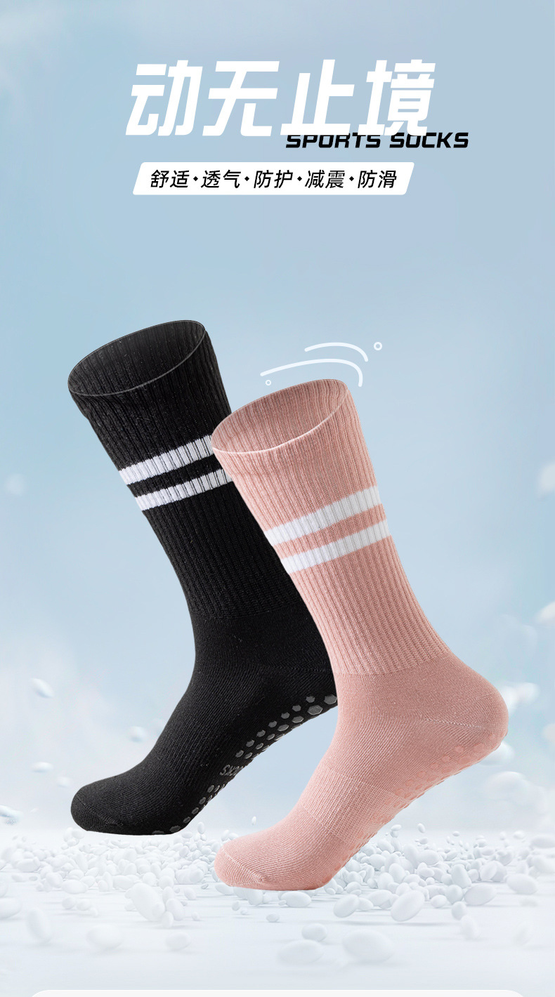本公司瑜伽袜采用168N机器织造,更厚实、弹力更舒适,不勒脚,袜筒加高,更适合搭配瑜伽裤、鲨鱼裤、芭比裤。
