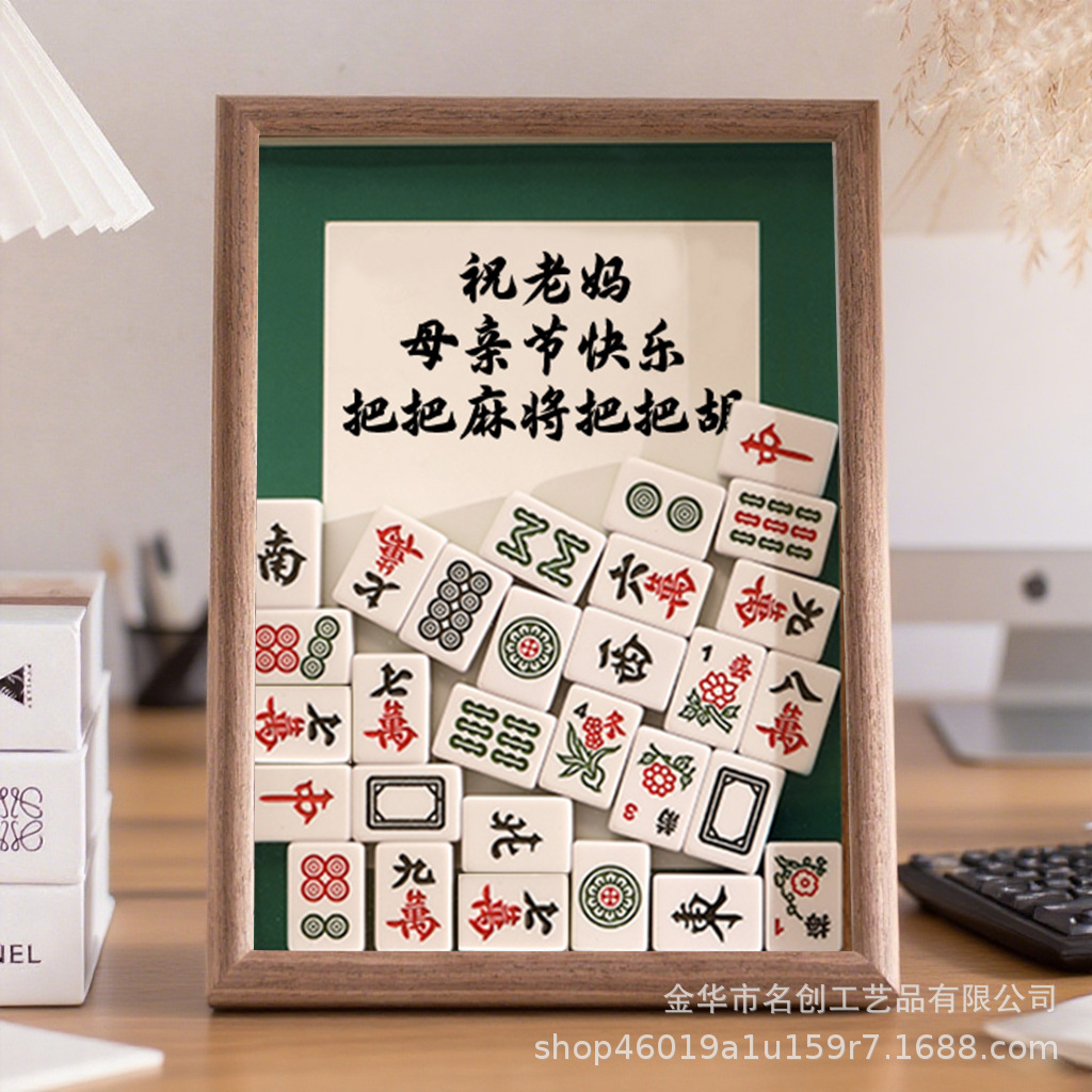 마작 액자 장식품 엄마가 카드를 놓는 모습 DIY 수제 원목 액자 어머니날 아버지날 생일 선물 맞춤 제작스토어 가기