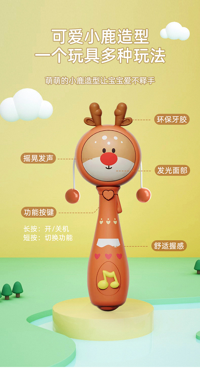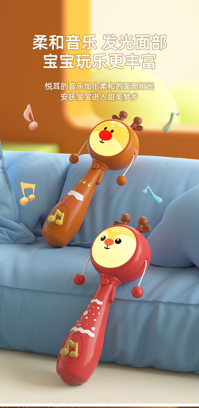 아기 딸랑이 핸드셋 딸랑이 장난감 어린이 만화 크리스마스 엘크 음악 빛 음악 껌스토어 가기
