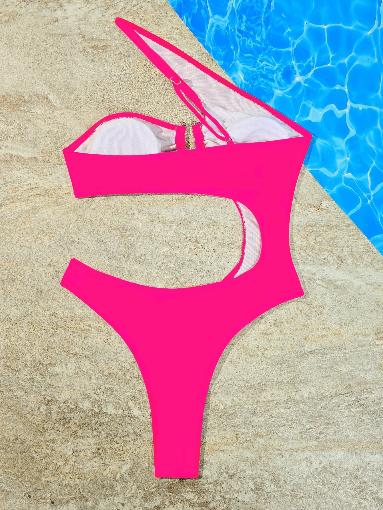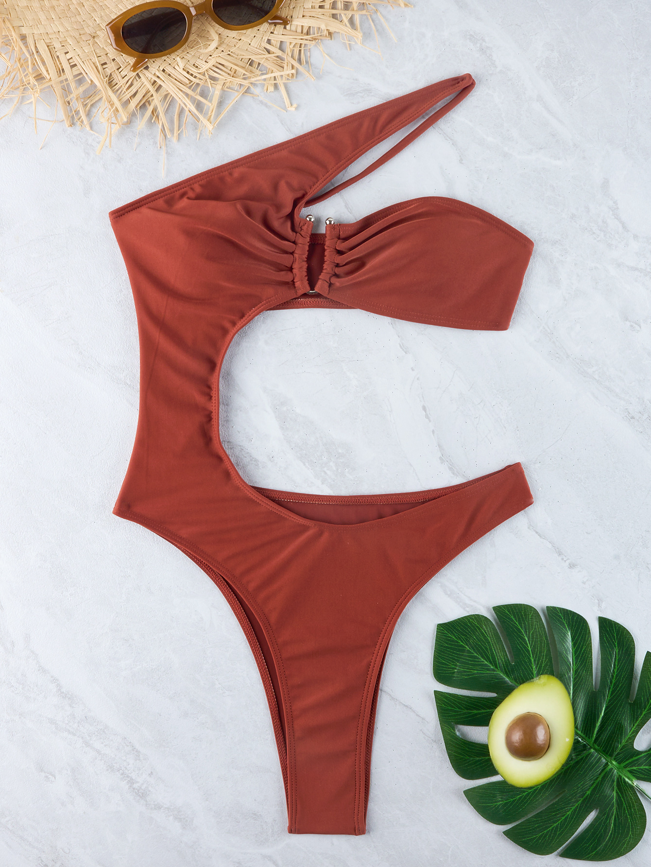 2026 유럽 및 미국 여성용 원피스 수영복, 단색 섹시 원숄더 컷아웃 호울우다오 수영복, 해외 수출 수영복