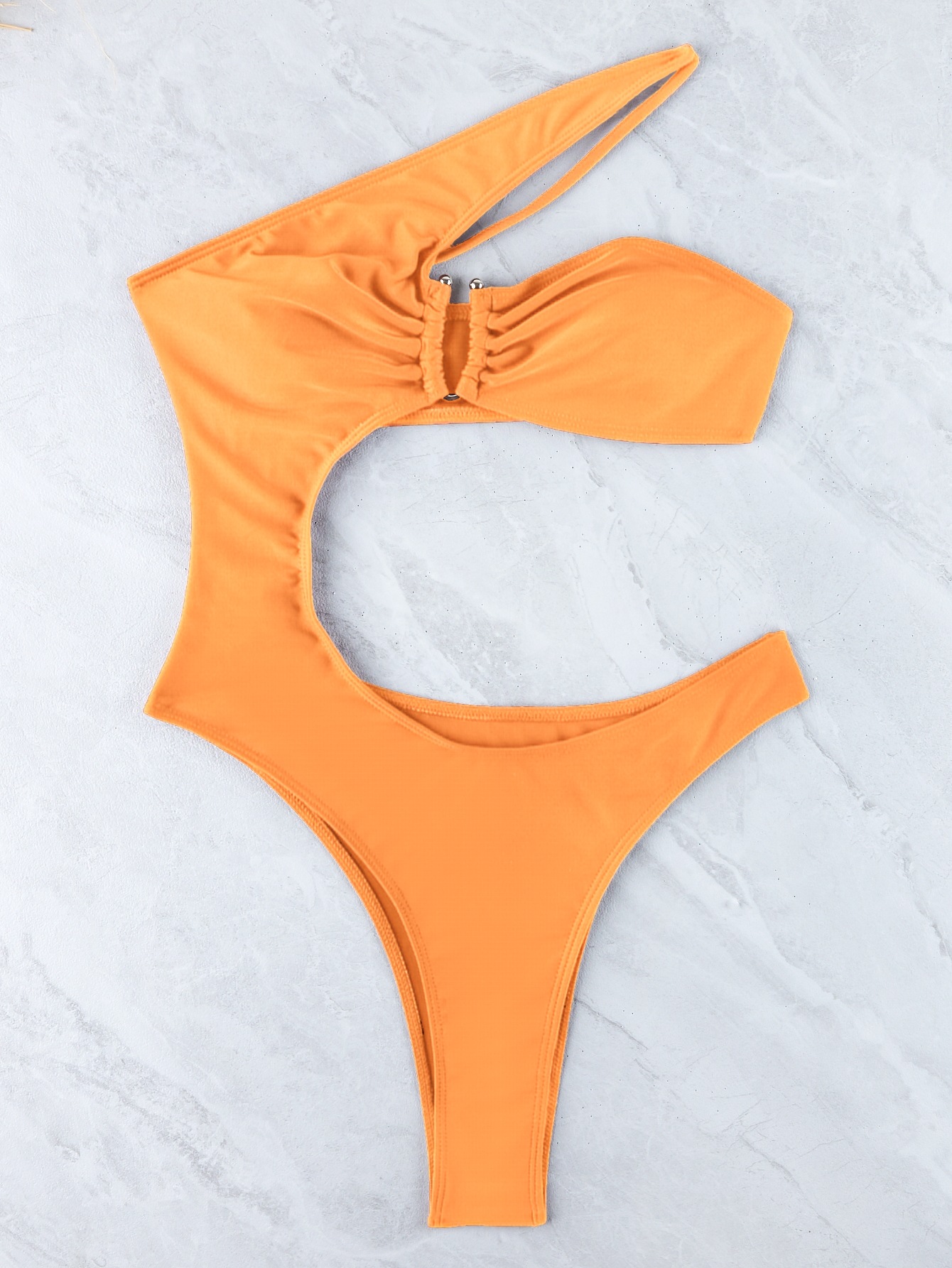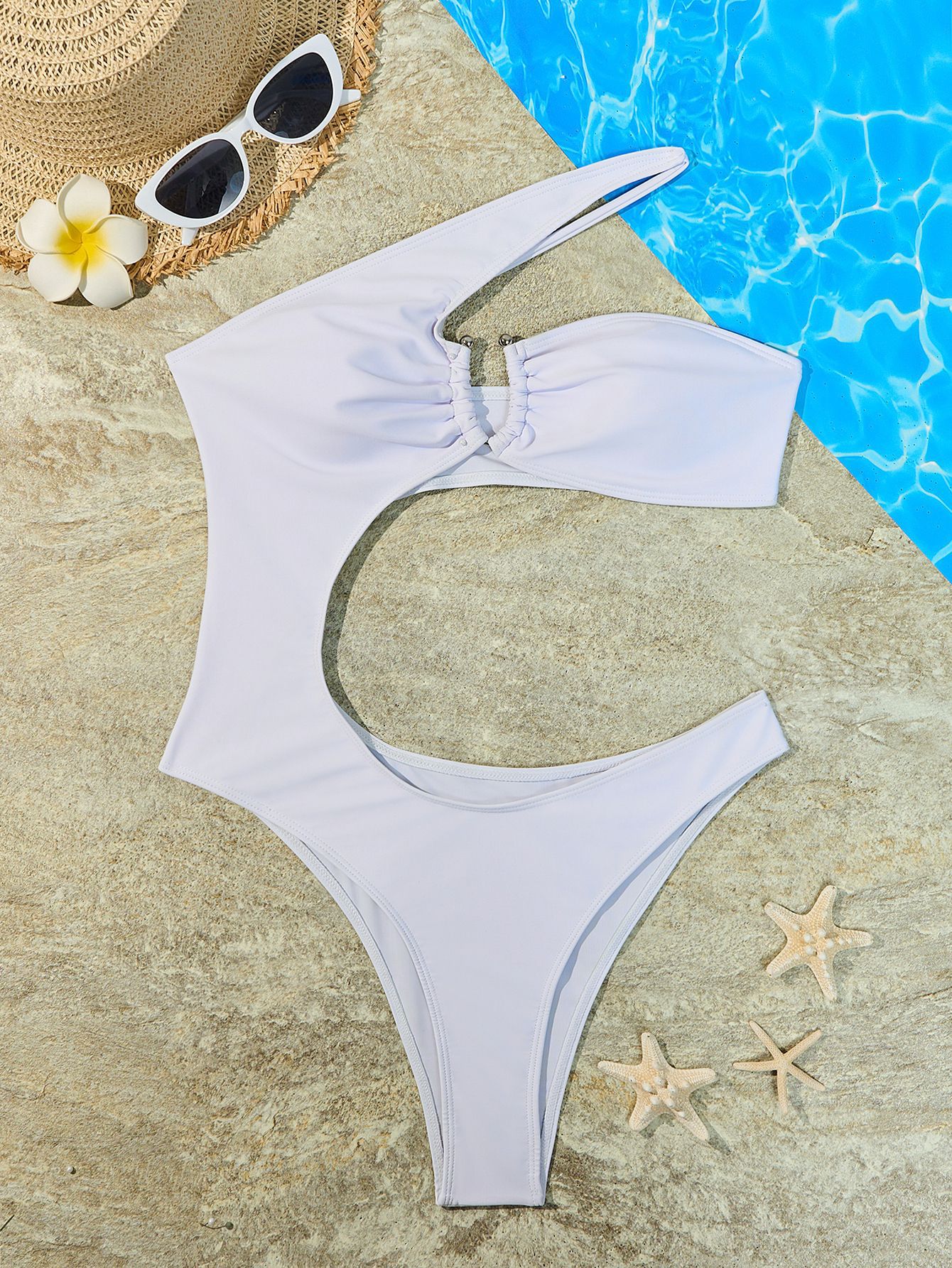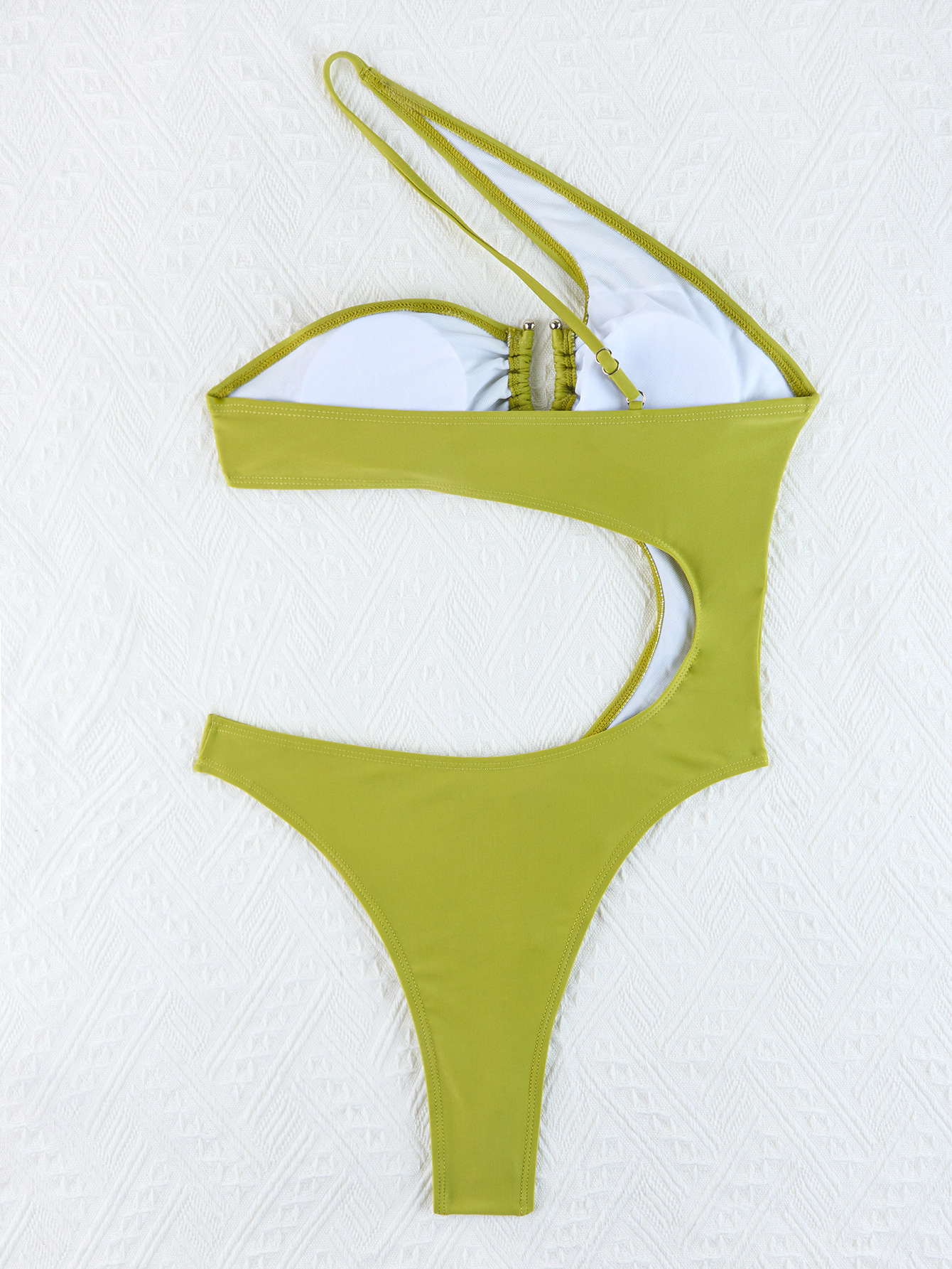 2026 유럽 및 미국 여성용 원피스 수영복, 단색 섹시 원숄더 컷아웃 호울우다오 수영복, 해외 수출 수영복스토어 가기
