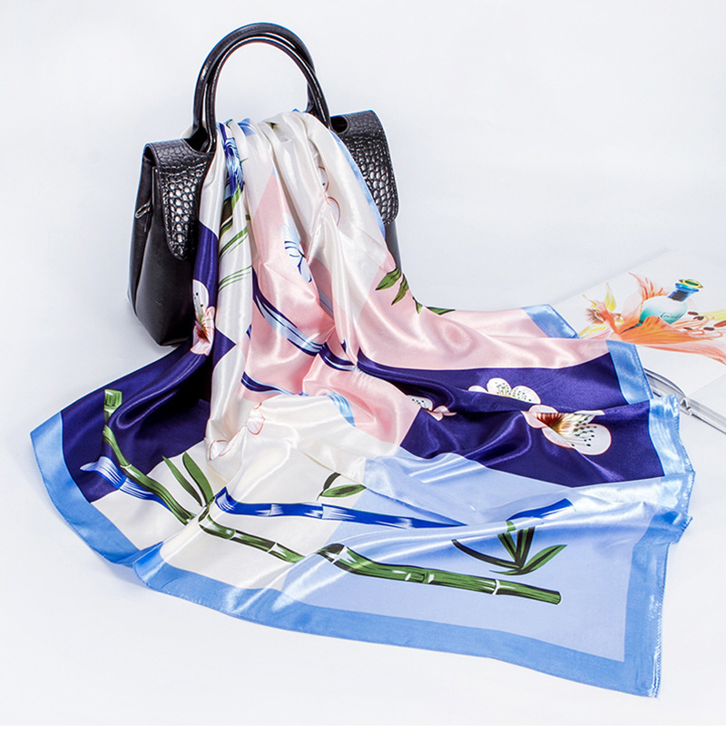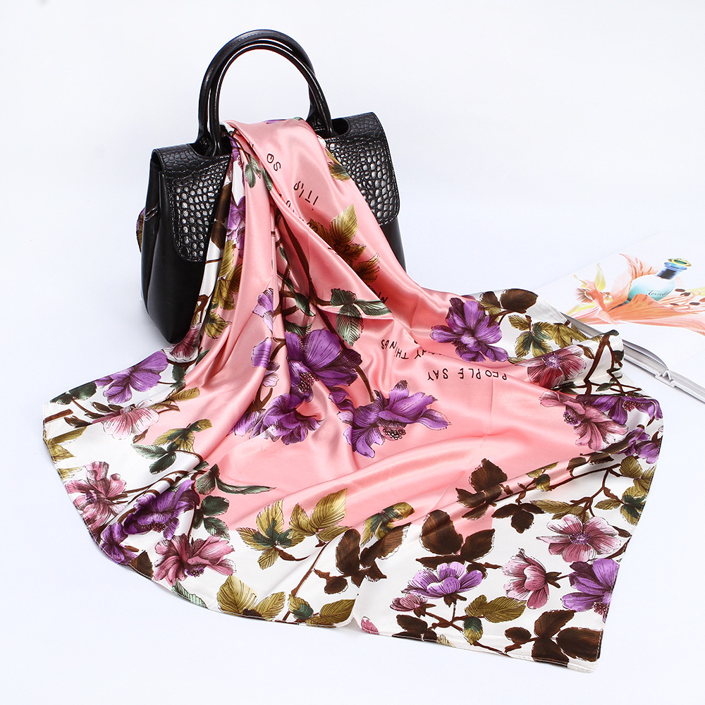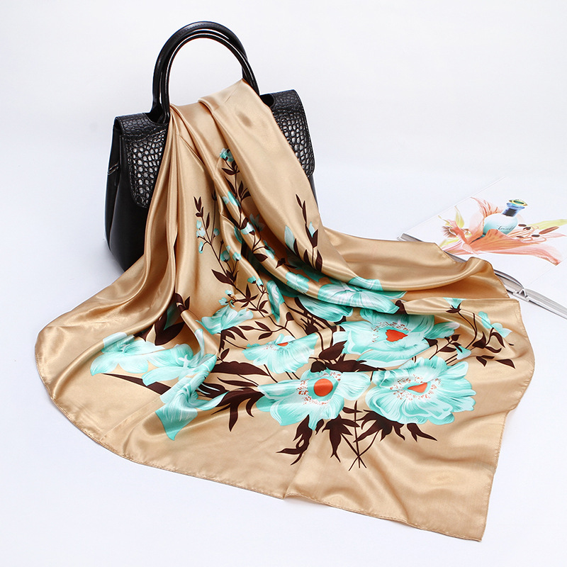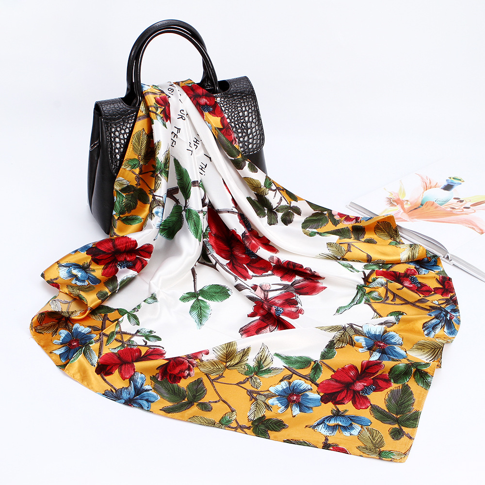 실크 스카프 90cm 머리 스카프 레이디 실크 스카프 새틴 꽃 무늬 목도리 여신 축제 선물 스카프 도매스토어 가기