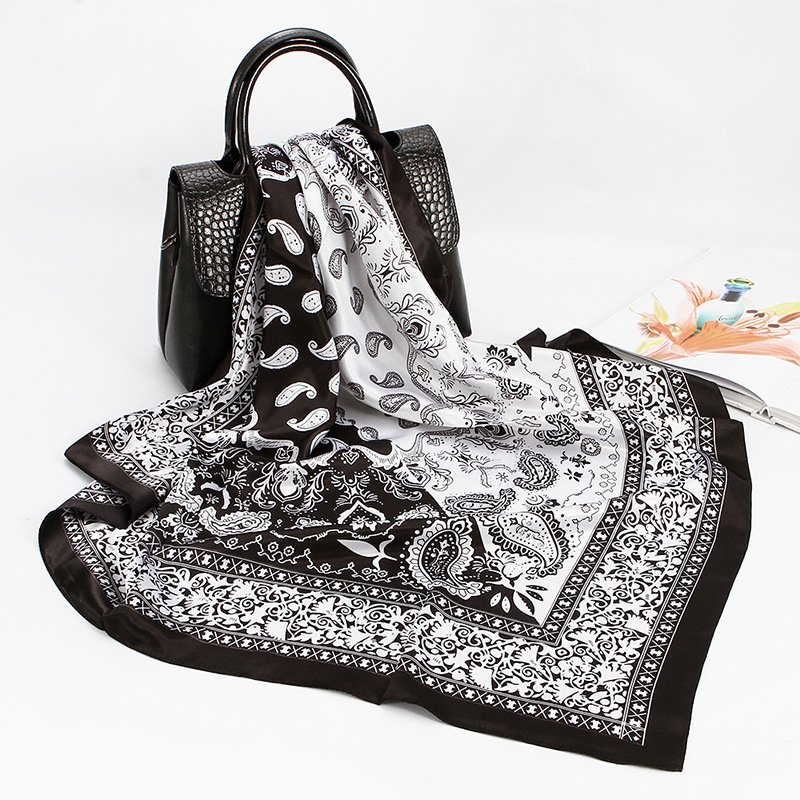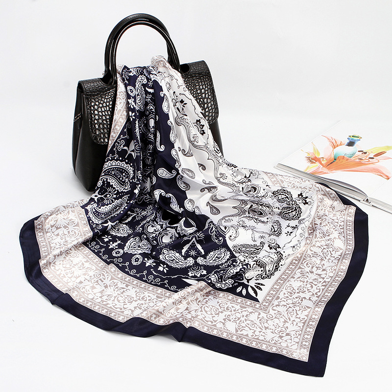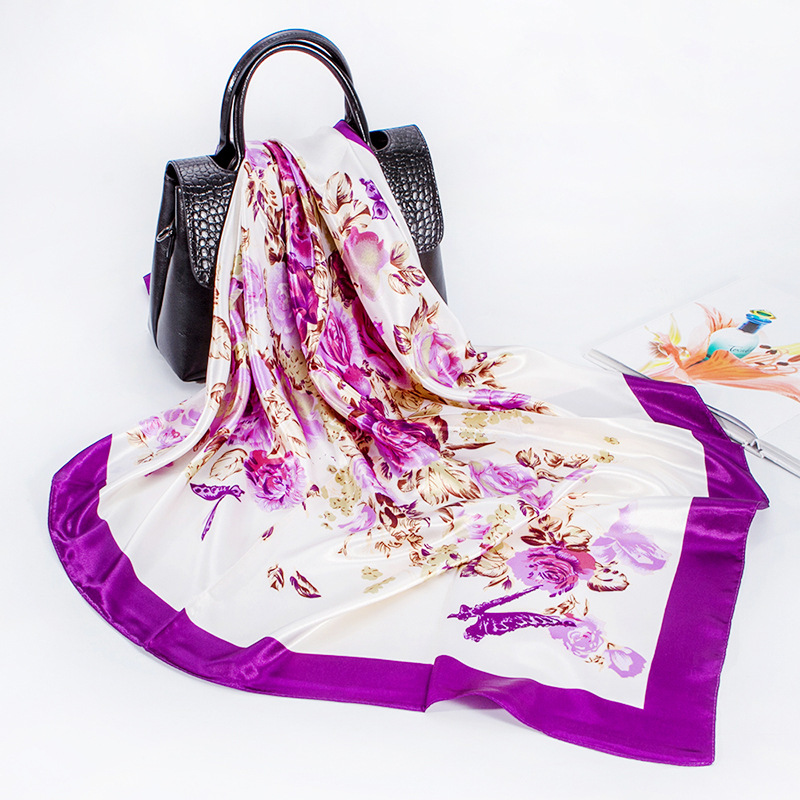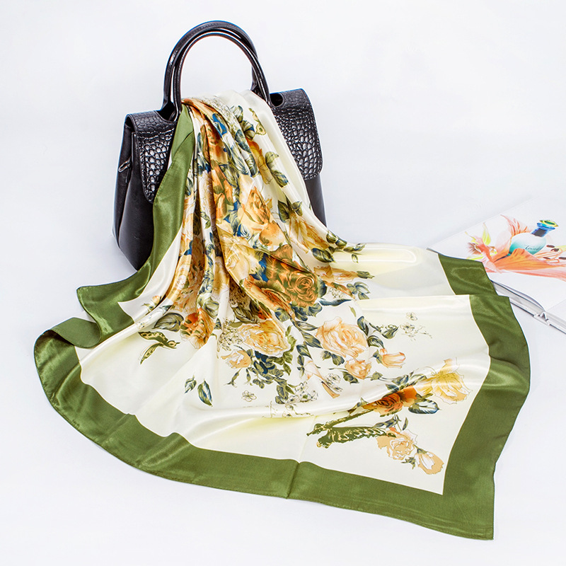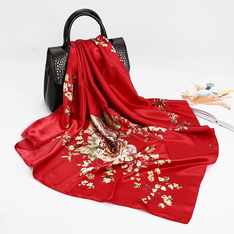 실크 스카프 90cm 머리 스카프 레이디 실크 스카프 새틴 꽃 무늬 목도리 여신 축제 선물 스카프 도매스토어 가기