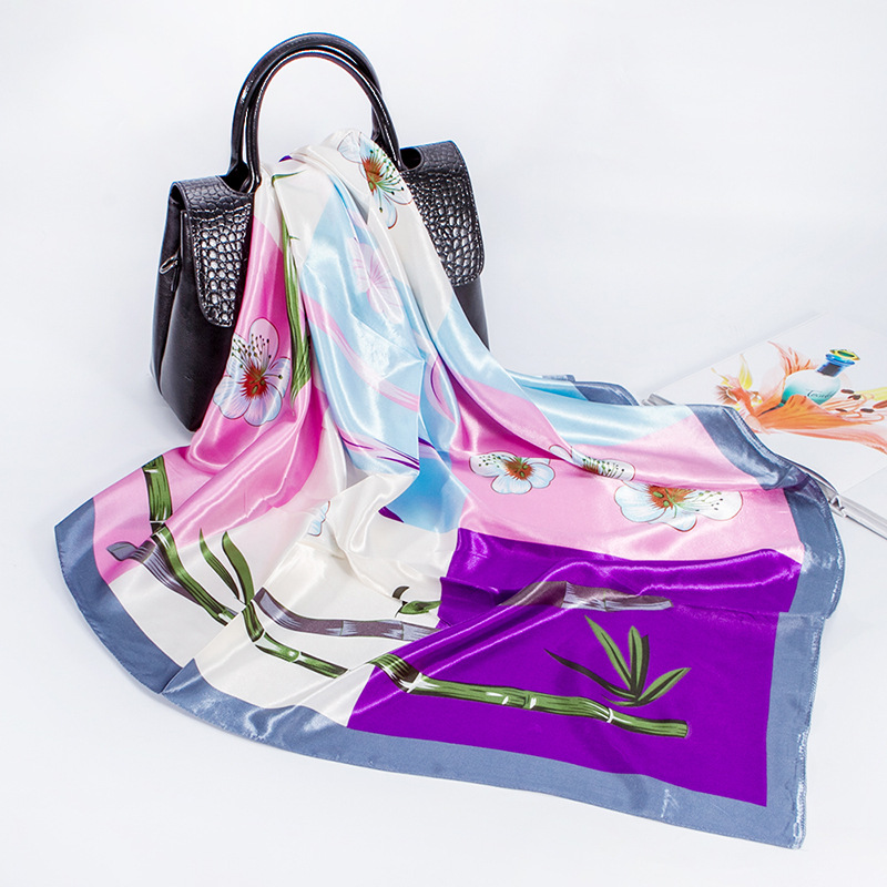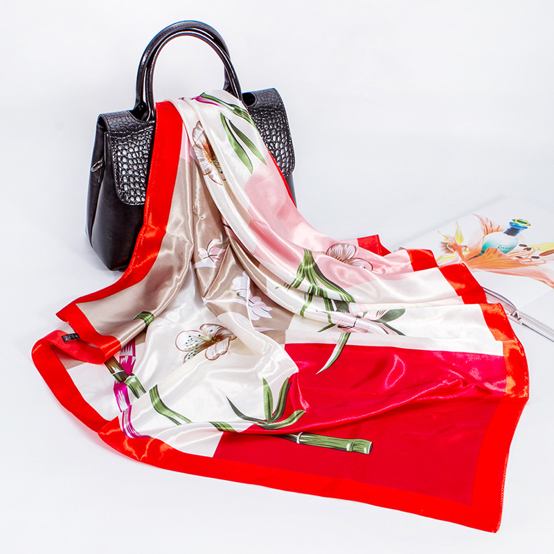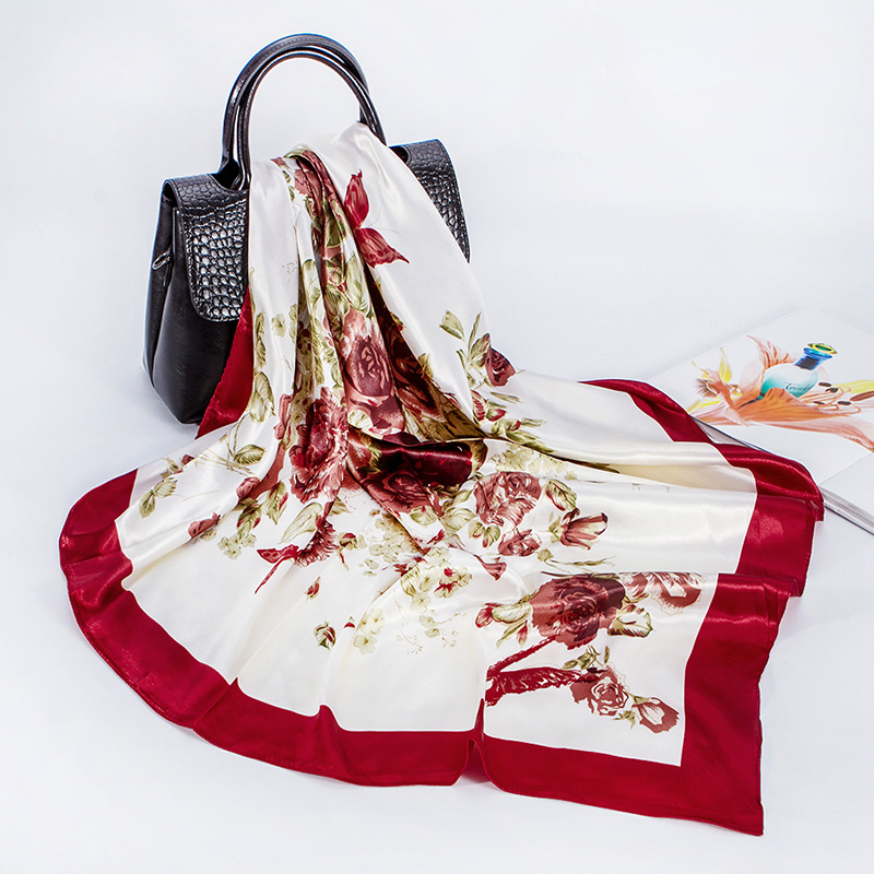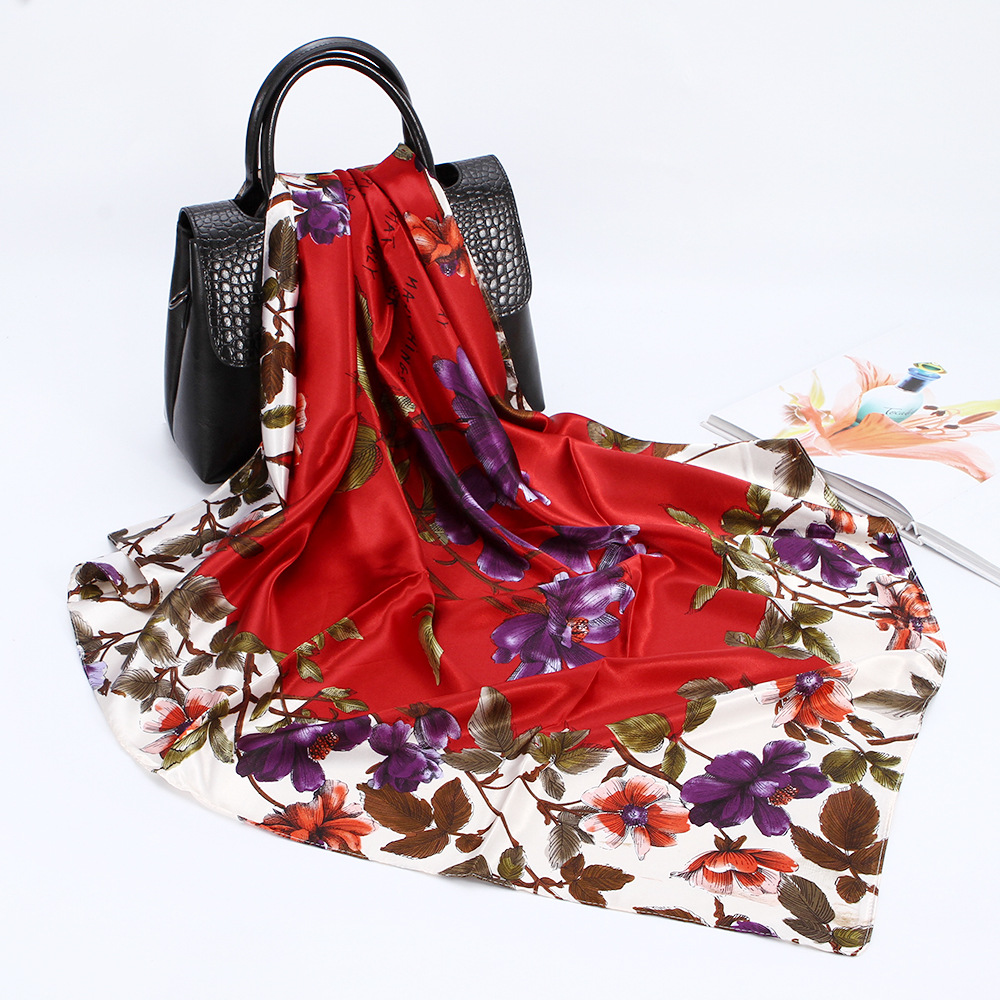 실크 스카프 90cm 머리 스카프 레이디 실크 스카프 새틴 꽃 무늬 목도리 여신 축제 선물 스카프 도매