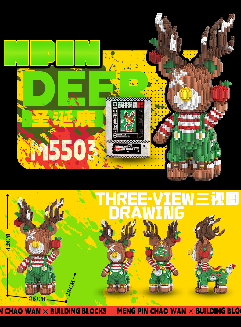 귀여운 유행 42cm 크리스마스 엘크 교육 빌딩 블록 장난감 소년과 소녀 생일 선물 거실 장식품스토어 가기